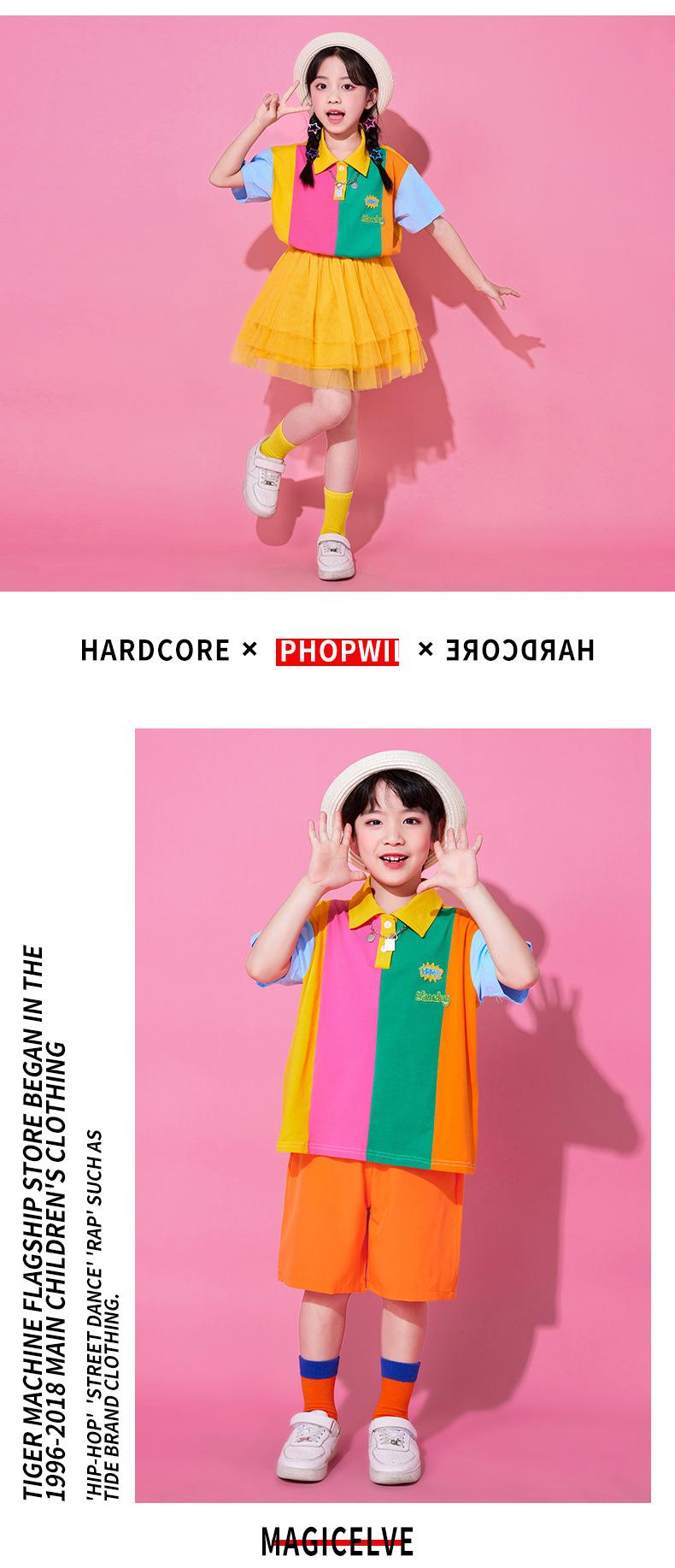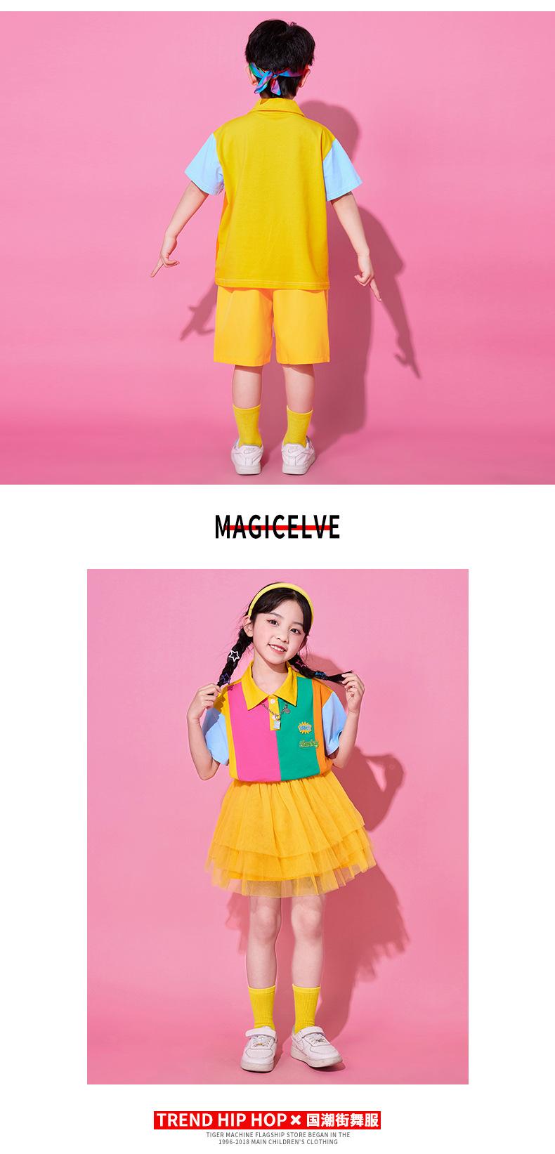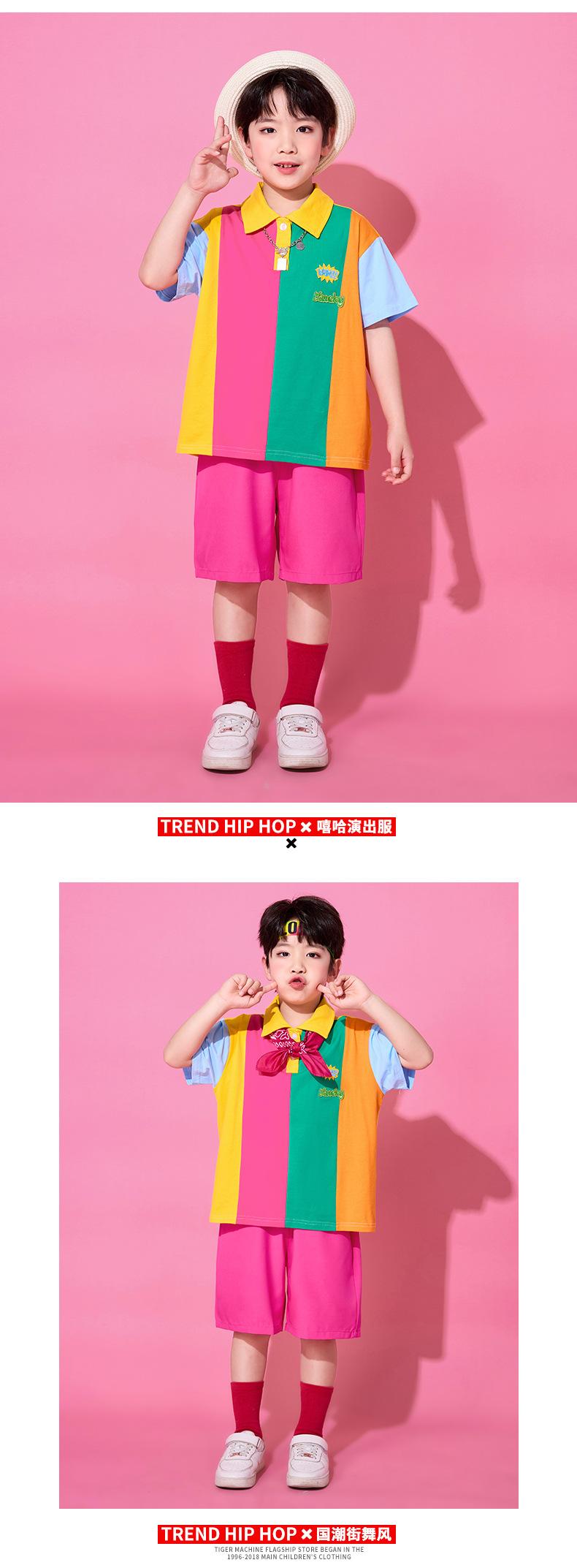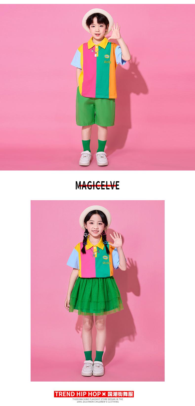 Yellow lapel color block short sleeves, Orange shorts, Yellow shorts, Rose red shorts, Pure green shorts, Gree...