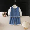 Otoño Nuevo Grado A Ropa Infantil Conjunto para Bebé Niña Niño Ropa de Otoño Amigable con la Piel Mezclilla Sudadera Leggings Conjunto de Dos Piezas
