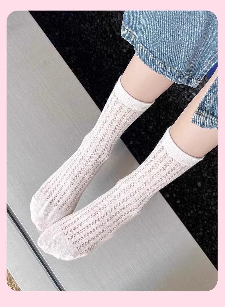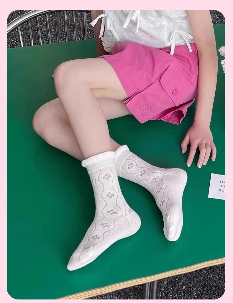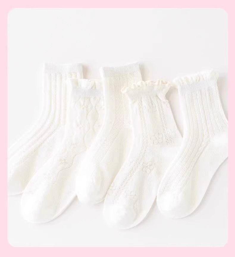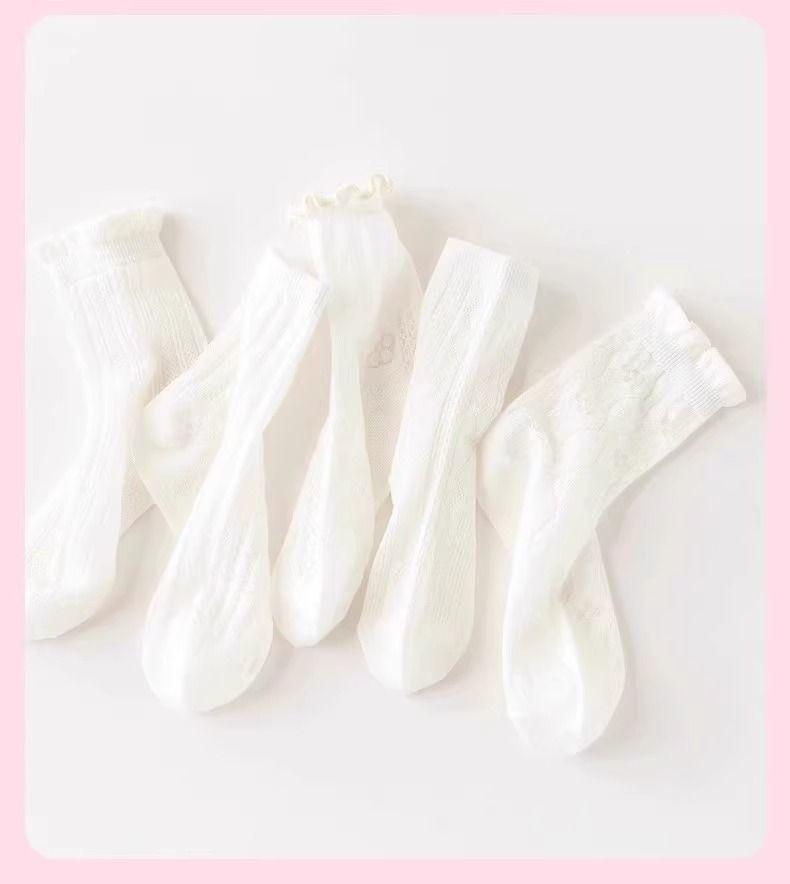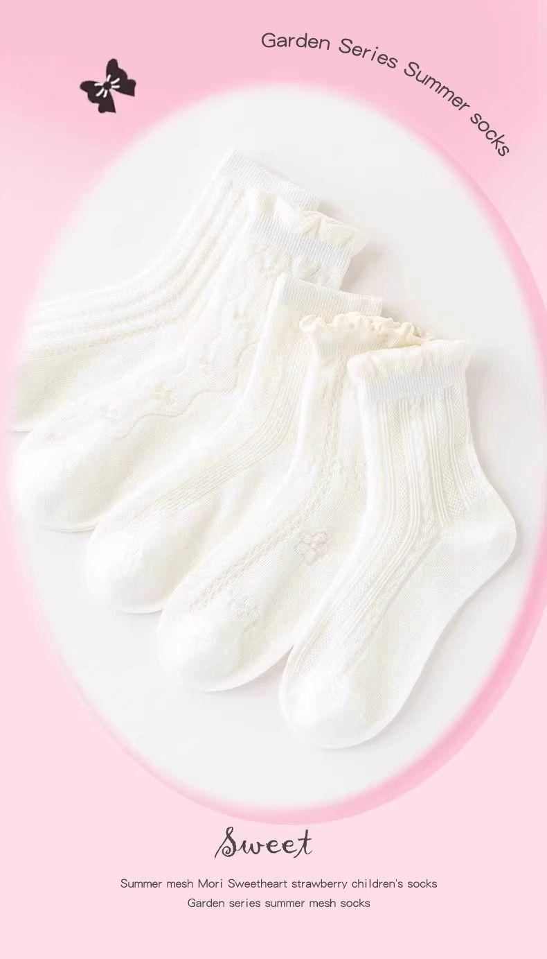 Calcetines de Verano para Niñas Algodón Niña Calcetines Cortos Finos Transpirables Bebé Blanco Malla Encaje Niños Media Pantorrilla Princesa