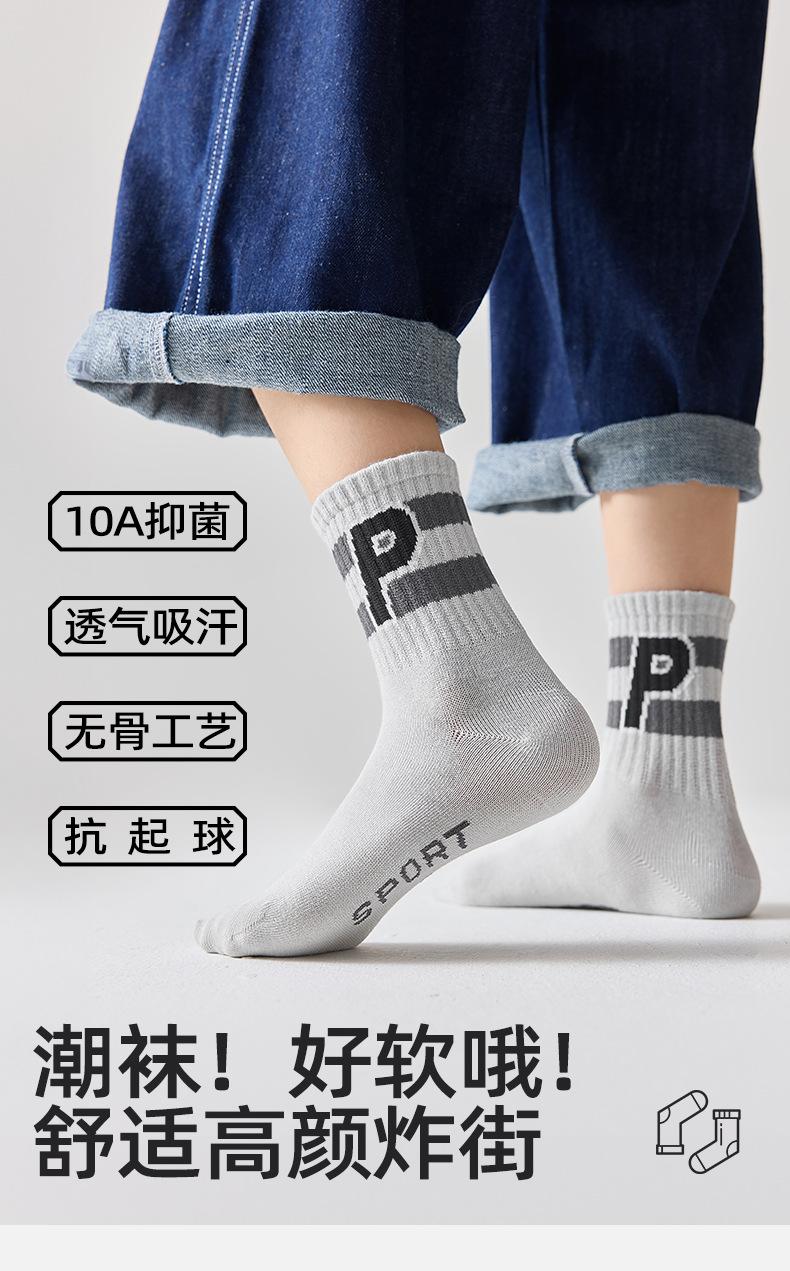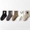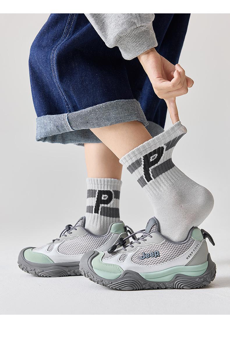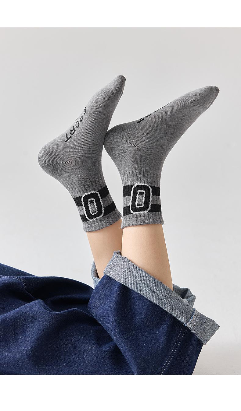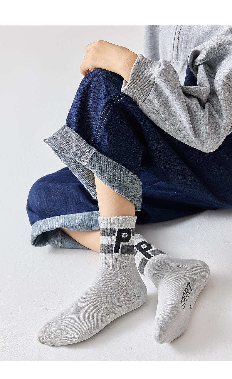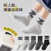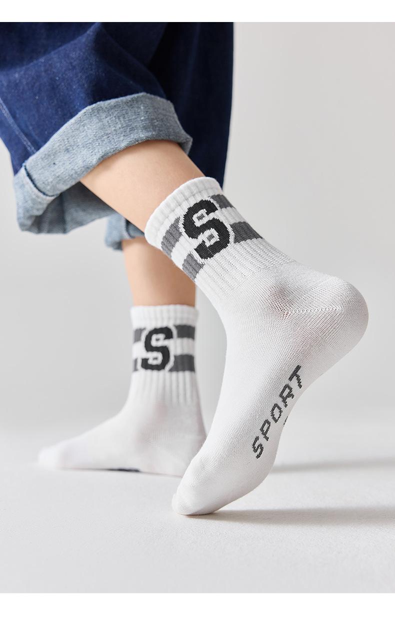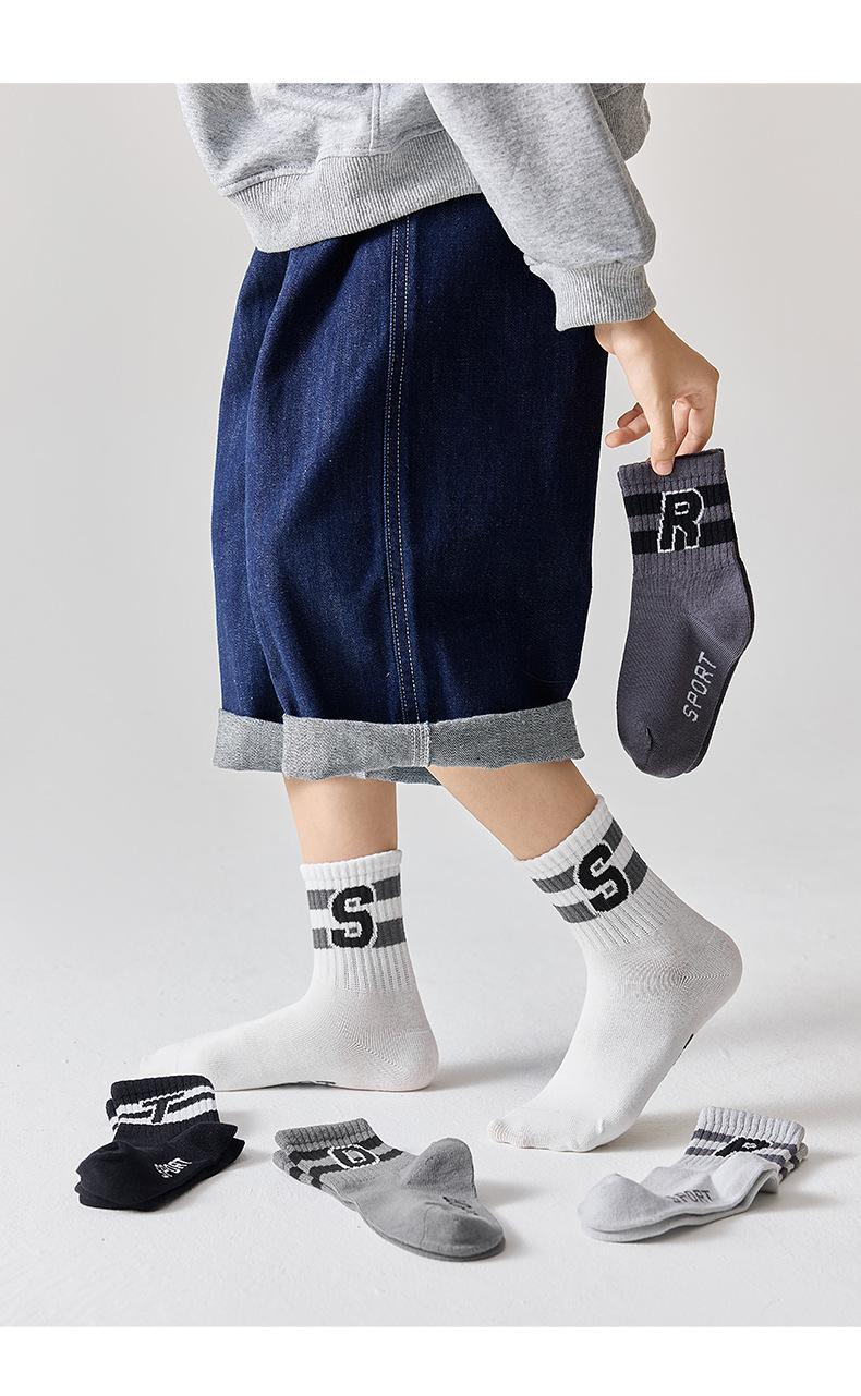 Calcetines deportivos para niño blanco y negro gris sin costuras modernos con letras calcetines de media caña para niños Clase A calcetines deportivos de algodón a rayas para niños medianos y grandes