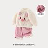 Conjunto para Niñas Jingqi Otoño 2025 Nuevo Sudadera de Forro Polar para Bebé Pantalones Infantiles Ropa para Niños Conjunto de Dos Piezas
