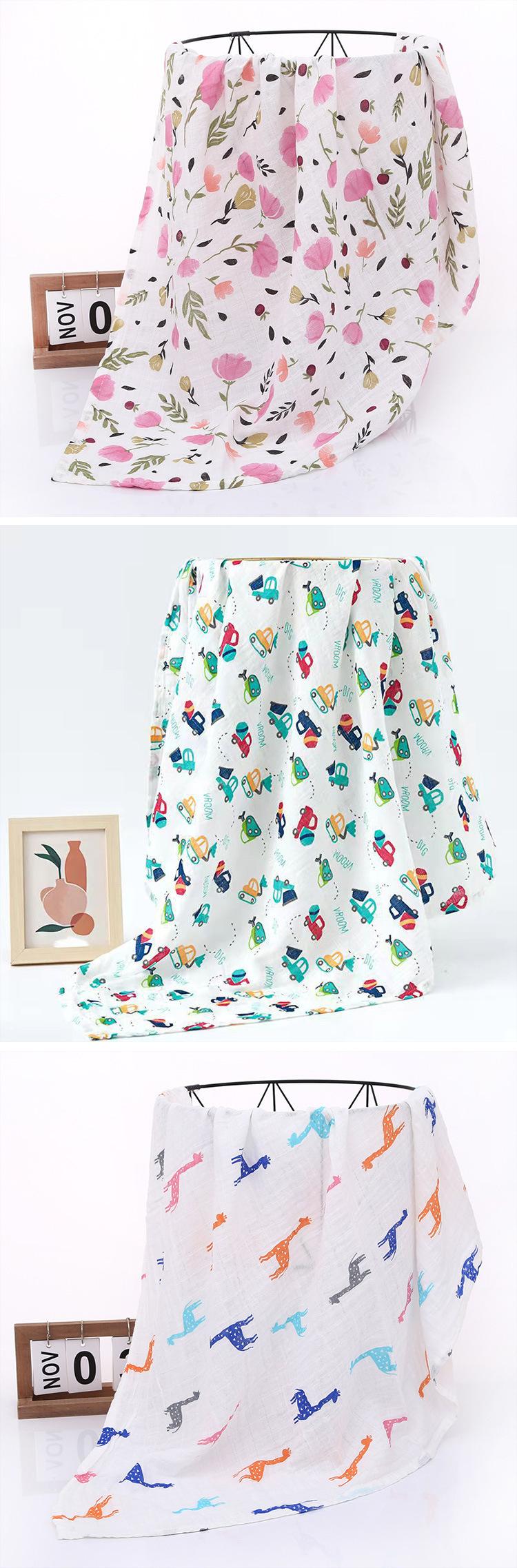 Toalla Envolvente de Gasa Doble para Bebé Recubierta Algodón Estampado Toalla Envolvente Manta Estampada para Sostener al Recién Nacido Toalla de Baño de Gasa