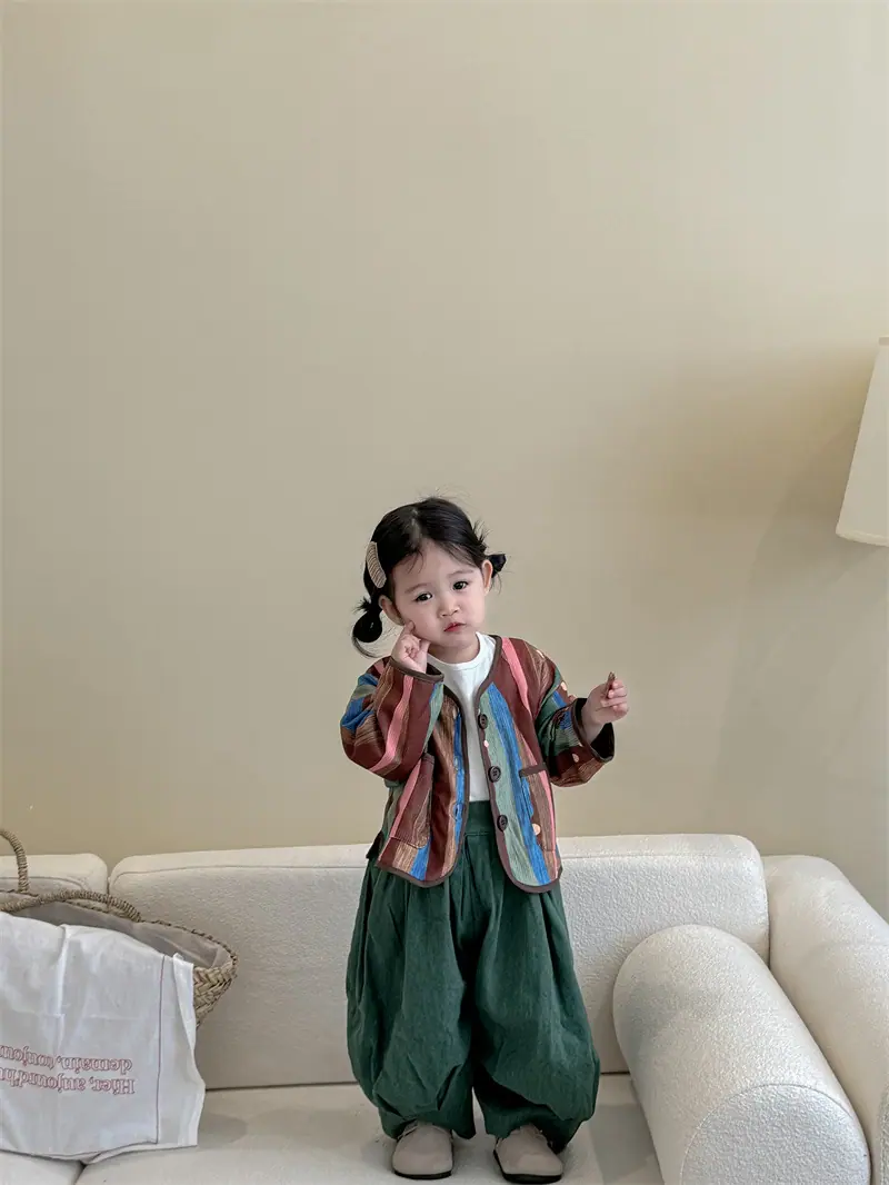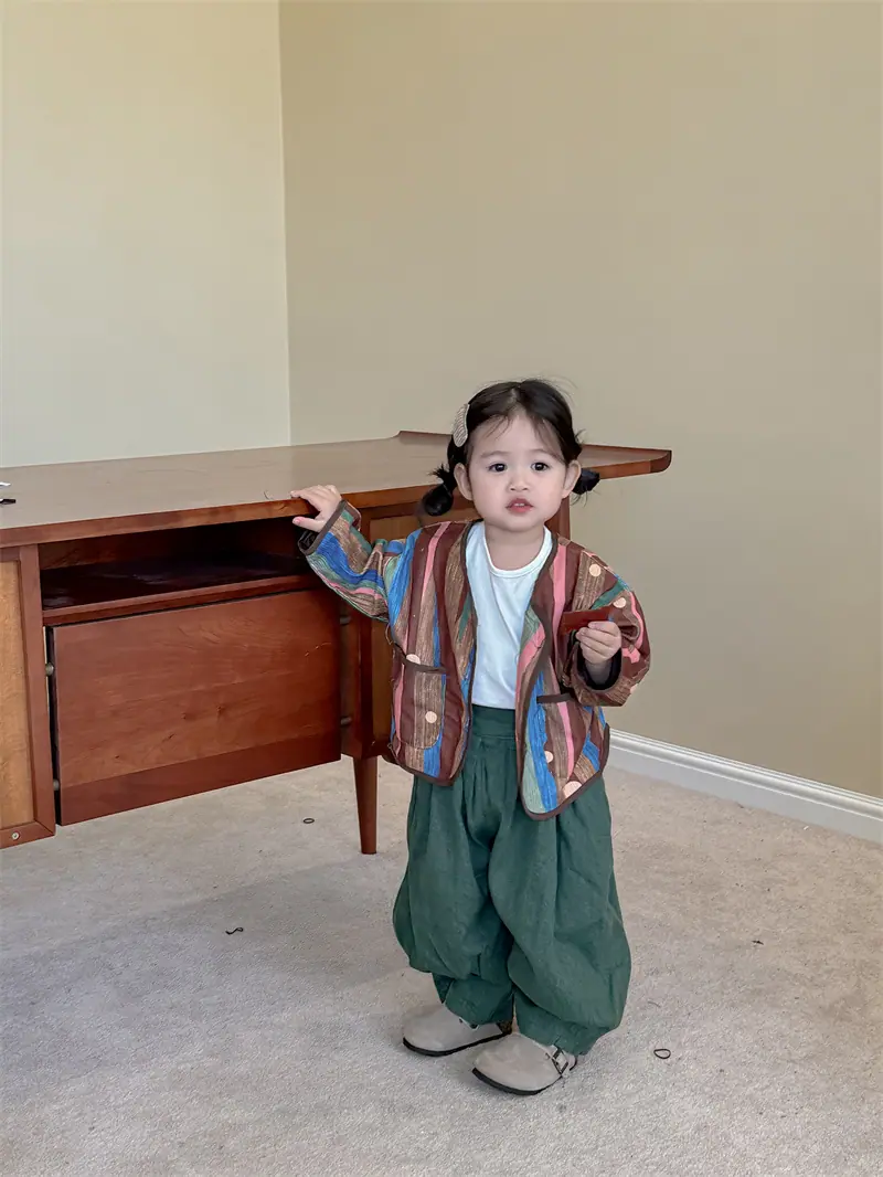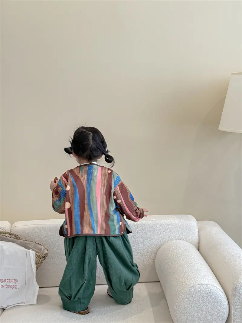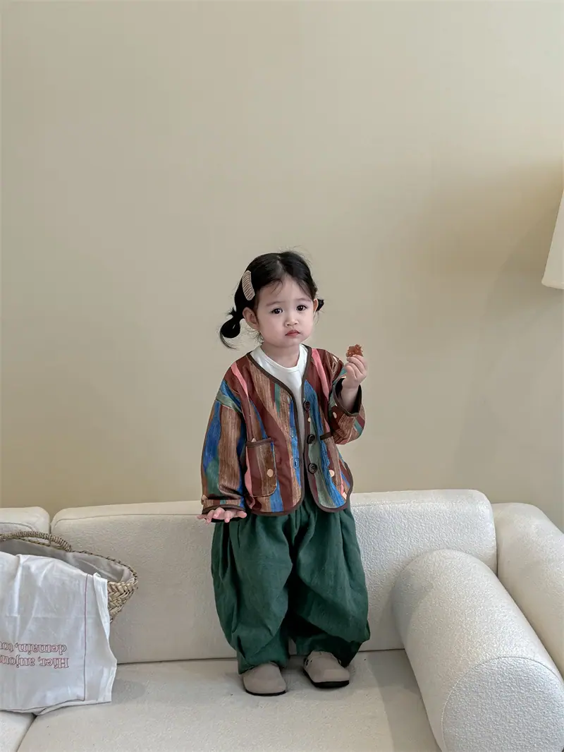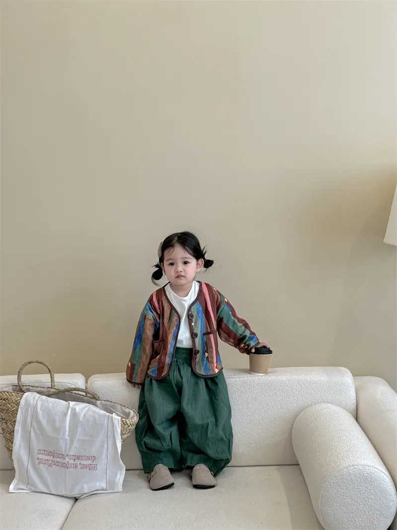 Gran Venta No Reembolsable y No Intercambiable [Pedido por Racionalidad] Chaqueta de Rayas Verticales para Niñas + Bloomer + Suéter Camiseta Básica
