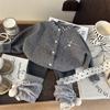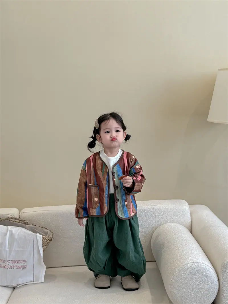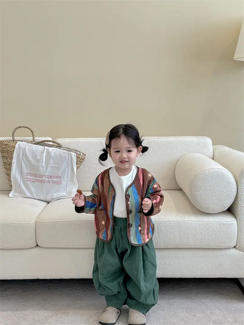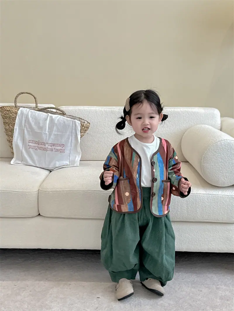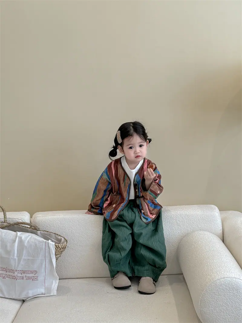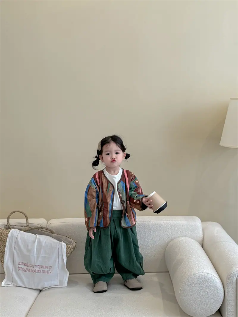 Gran Venta No Reembolsable y No Intercambiable [Pedido por Racionalidad] Chaqueta de Rayas Verticales para Niñas + Bloomer + Suéter Camiseta Básica
