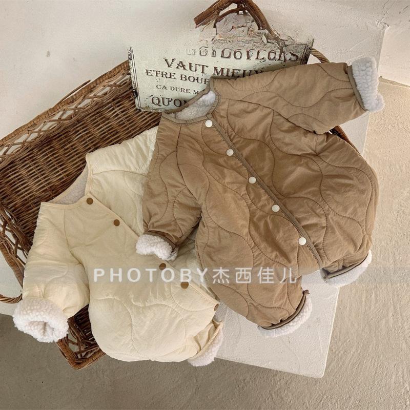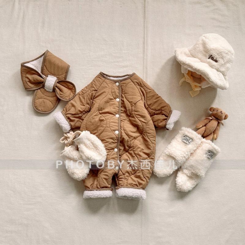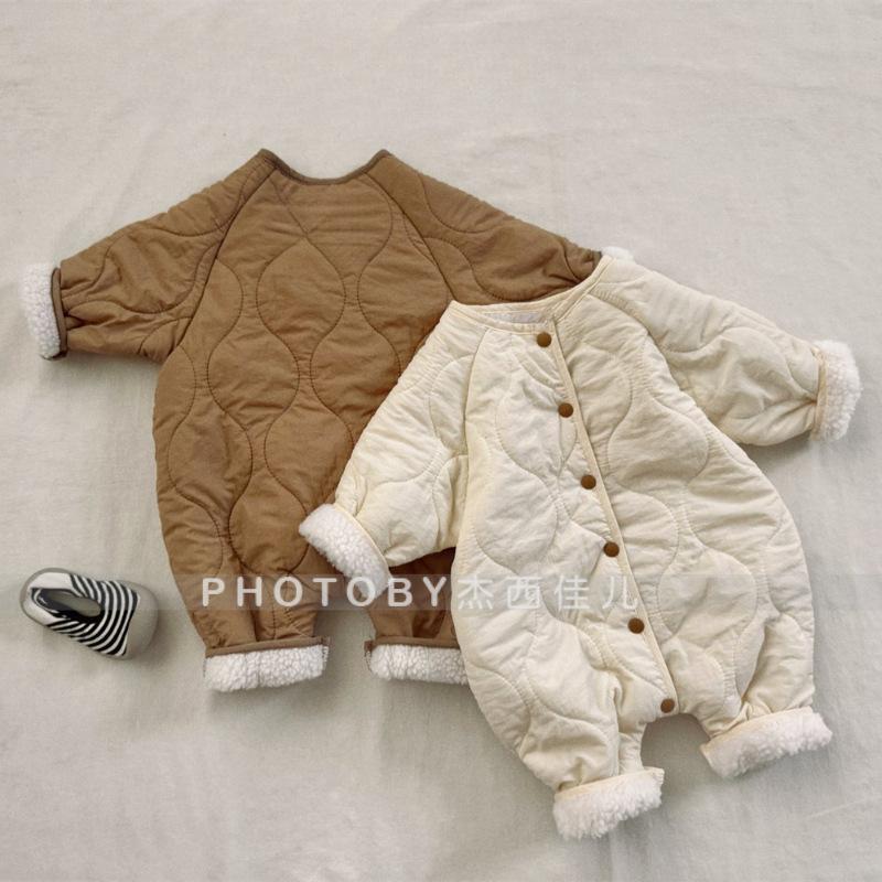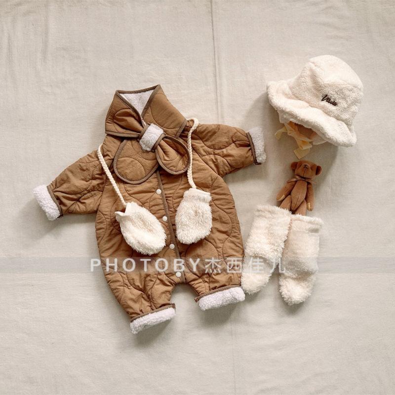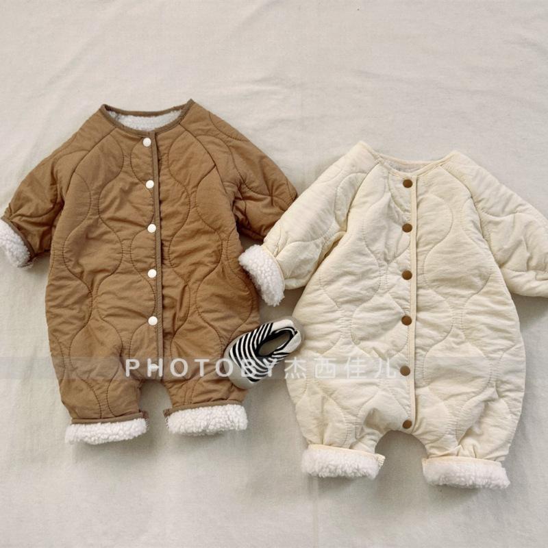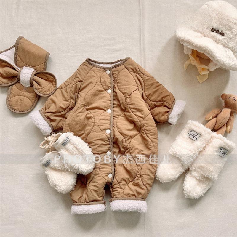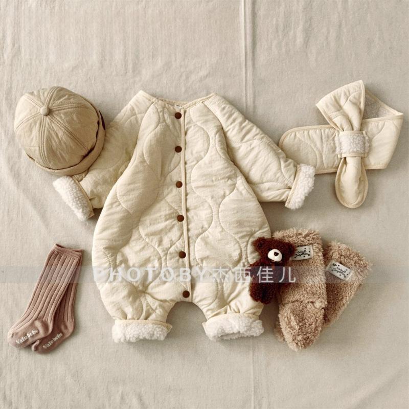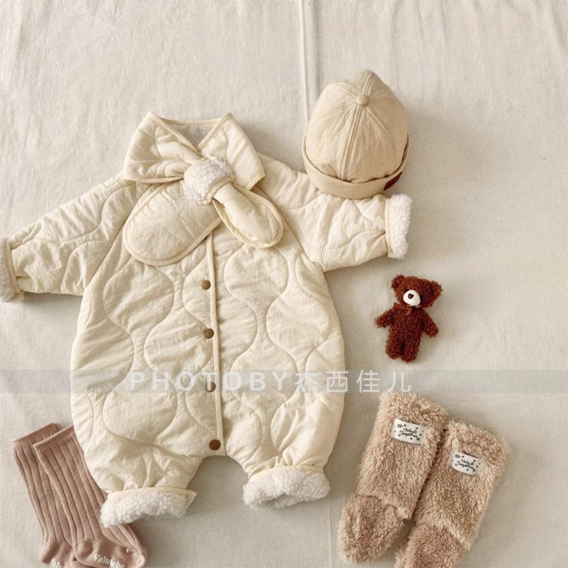Mameluco Acolchado de Algodón Grueso para Bebés y Niños Pequeños Estilo Invierno 2025 para Bebés Niños y Niñas Moda Simple con Bufanda Mameluco para Salir Estilo Coreano