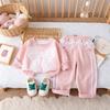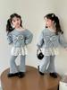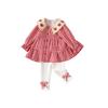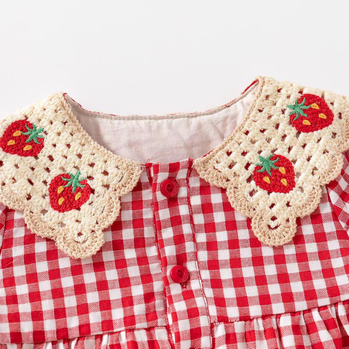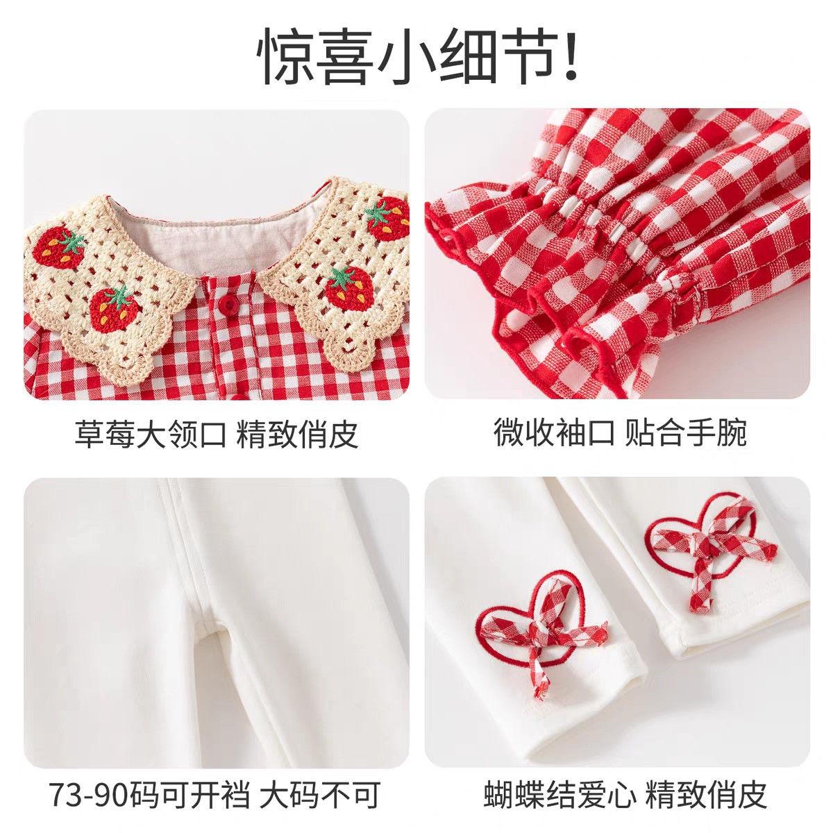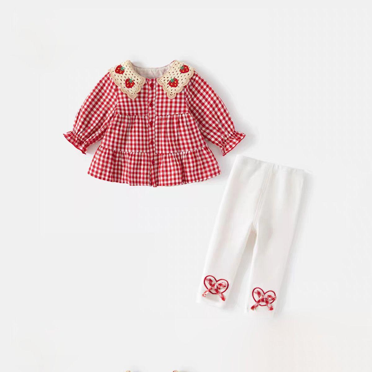 Conjunto de Primavera y Otoño para Niñas Moda Bebé Infantil Individual Marca Trendy Encaje Cuadros Camisa Fresa Leggings Lazo