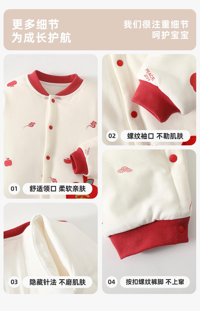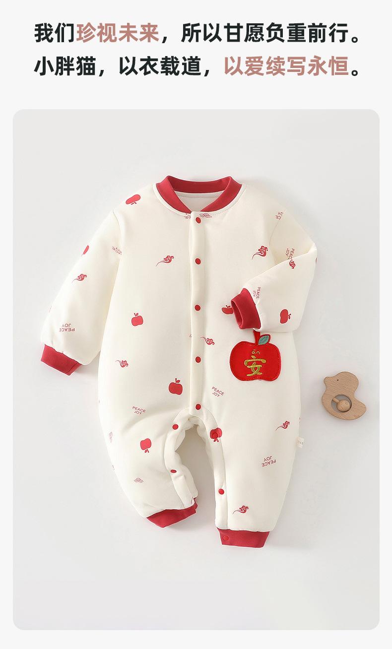 Ropa Gruesa para Bebé Recién Nacido Niños y Niñas Mameluco Rojo Regalo Cien Días Luna Llena Ropa de Año Nuevo Ropa de Invierno Lindo