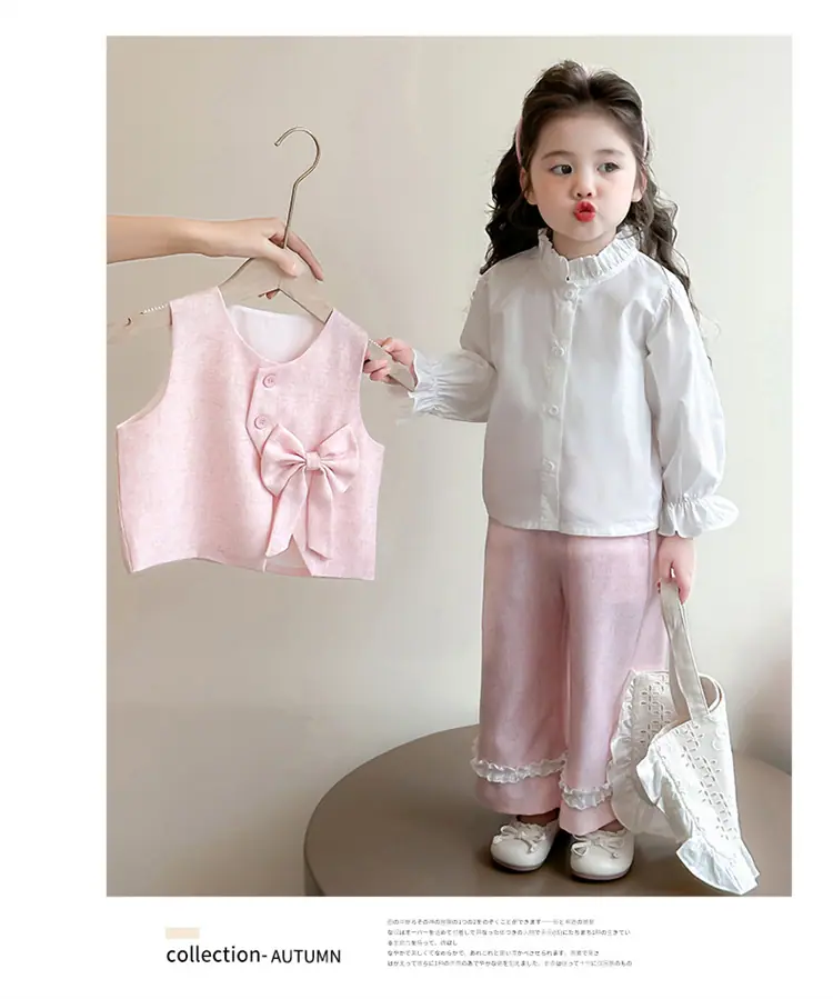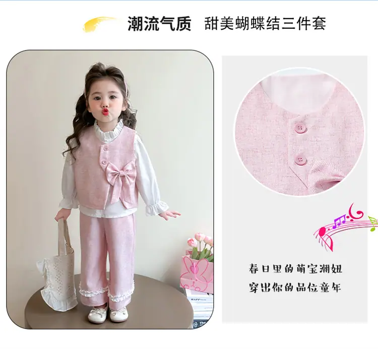 Traje de Primavera para Niñas 2024 Nuevo Estilo Estilo Occidental para Niñas Ropa Infantil de Primavera y Otoño Estilo Coreano Ropa Infantil Moda Conjunto de Tres Piezas para Bebé