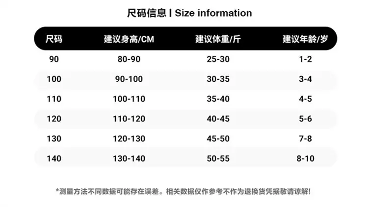 90cm, 100cm, 110cm, 120cm, 130cm, 140cm