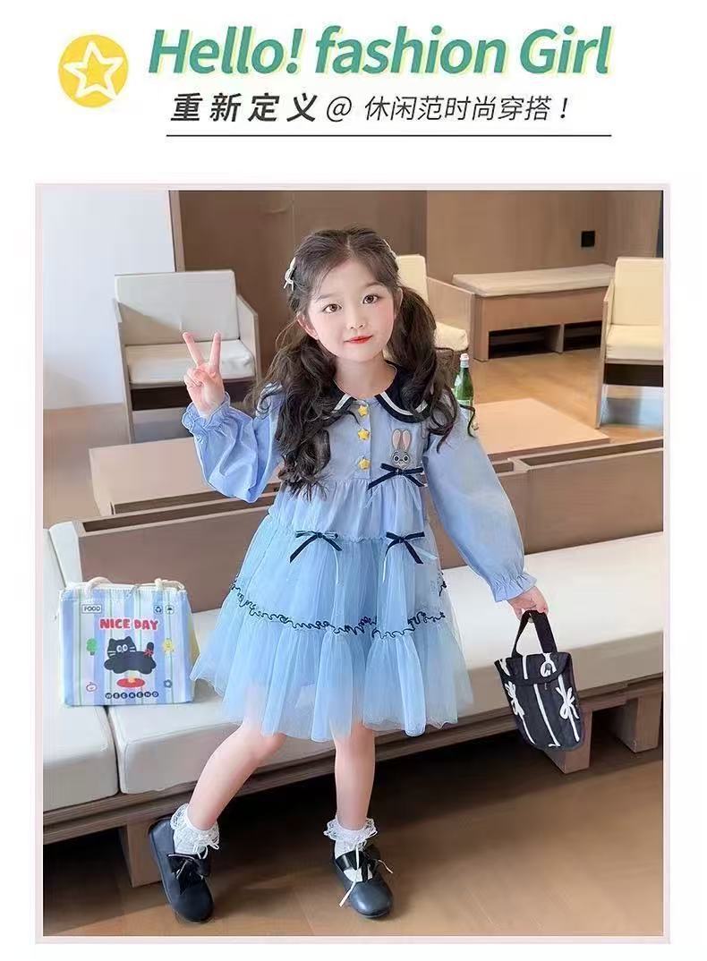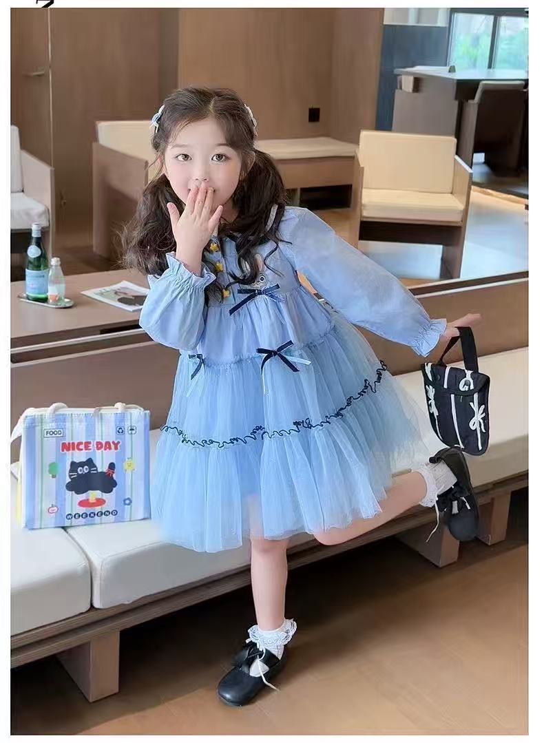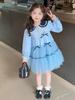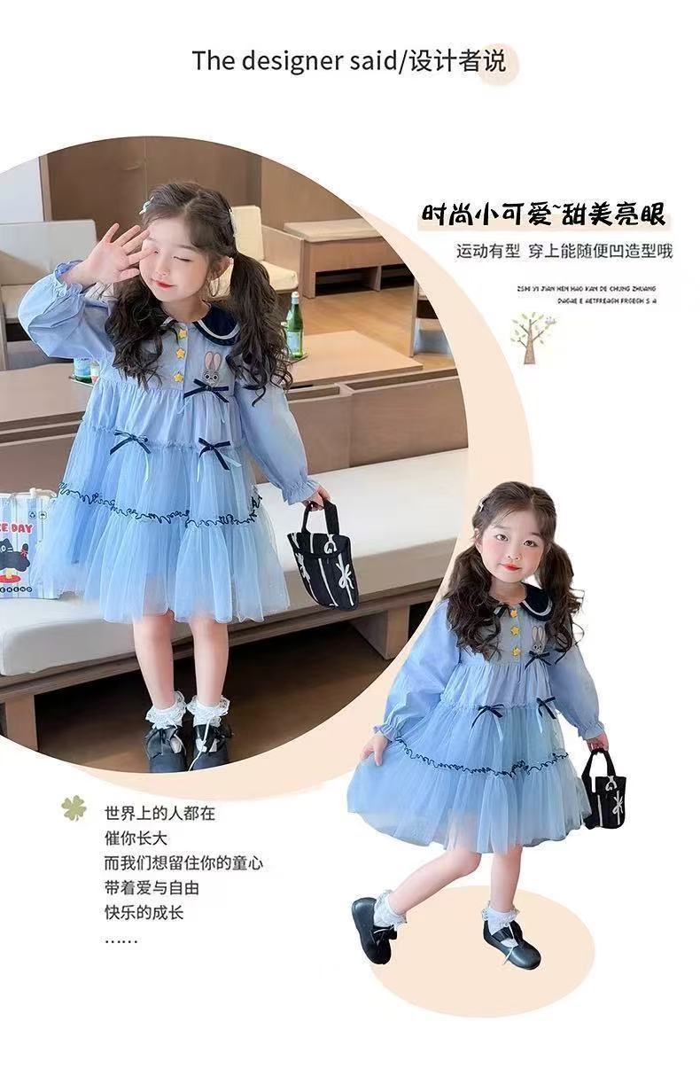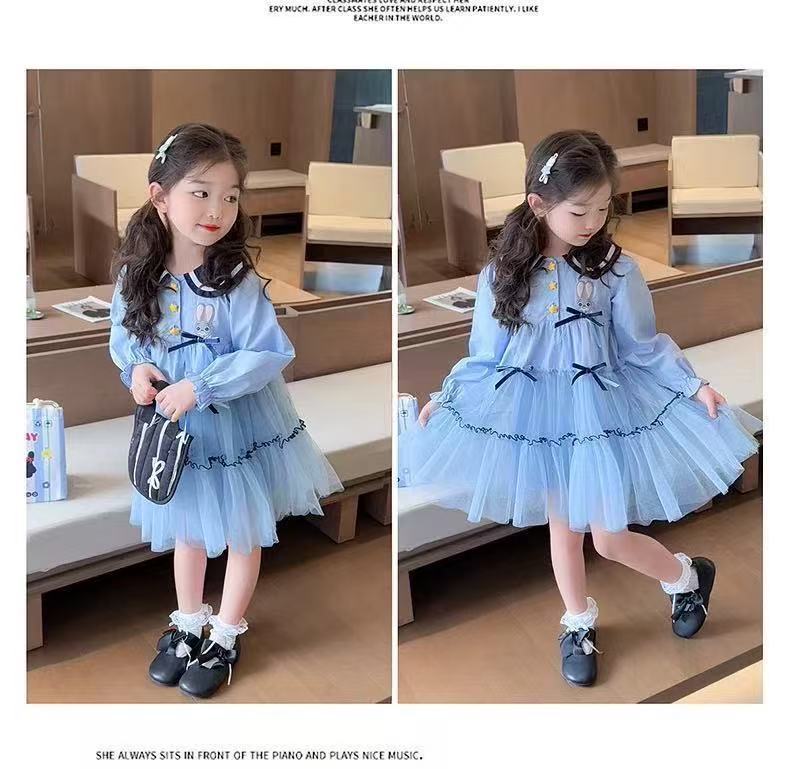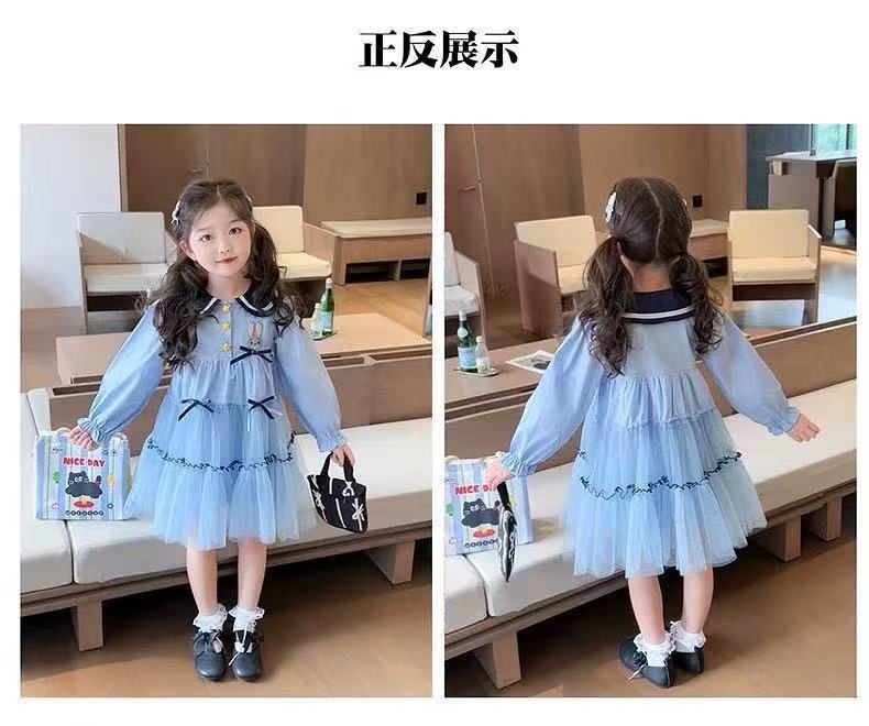 Vestido de Otoño para Niñas 2025 Nuevo Vestido de Tul de Estilo Preppy Infantil de Moda Ropa de Otoño para Niñas Vestido Camisero de Manga Larga