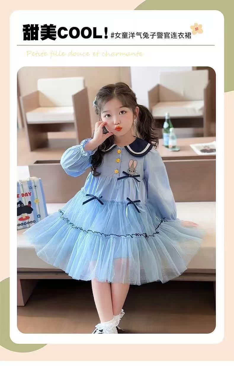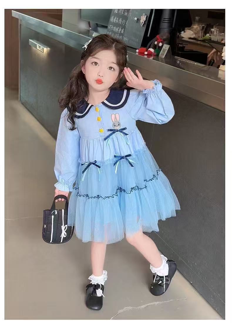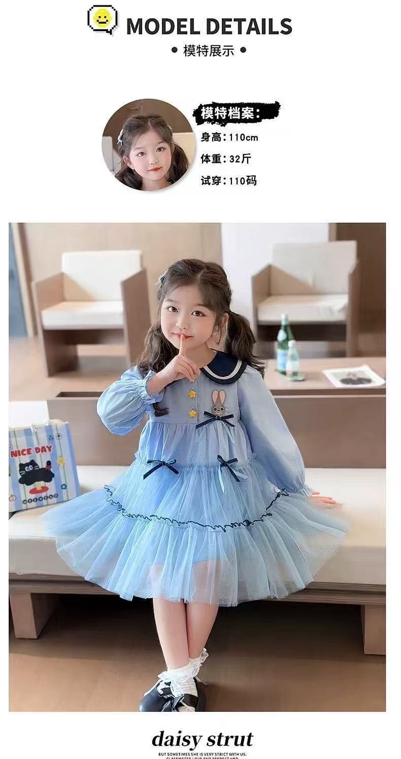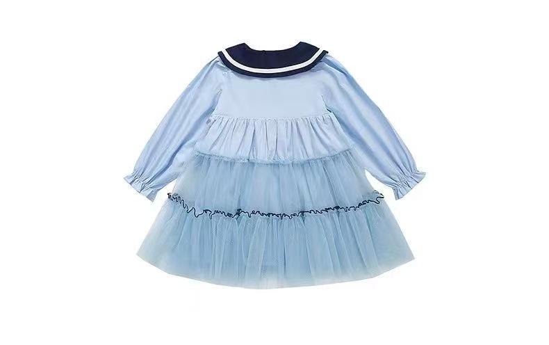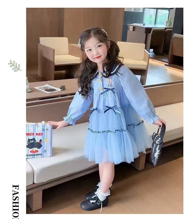 Vestido de Otoño para Niñas 2025 Nuevo Vestido de Tul de Estilo Preppy Infantil de Moda Ropa de Otoño para Niñas Vestido Camisero de Manga Larga