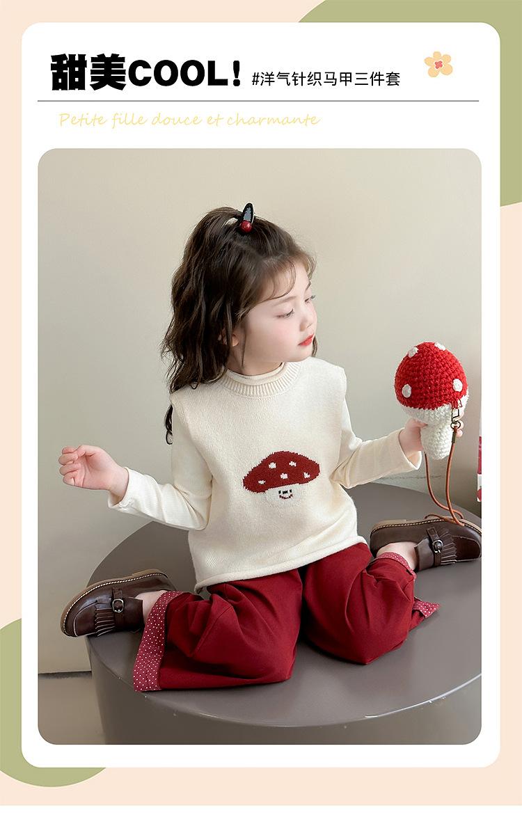 Conjunto para Niñas Otoño 2025 Nuevo Ropa de Otoño Infantil Elegante y a la Moda Chaleco de Punto para Bebé Niño Conjunto de Tres Piezas