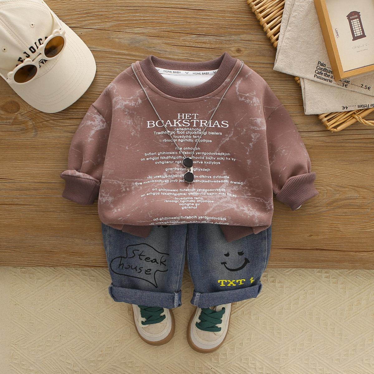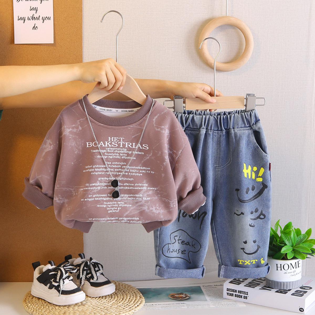 Ropa para Niños Conjunto de Otoño para Niños Nuevo Trendy Bebé Infantil Primavera y Otoño Sudadera Casual Conjunto de Dos Piezas Estilo Coreano Niños