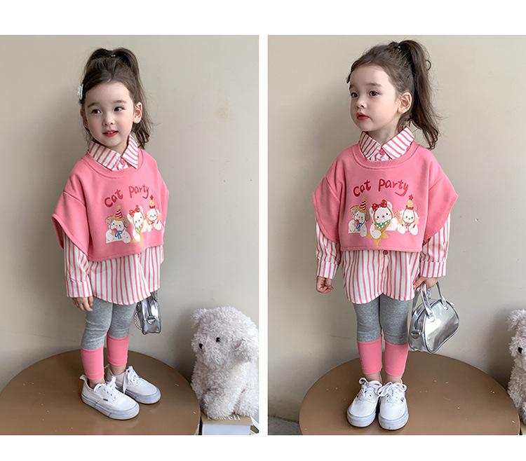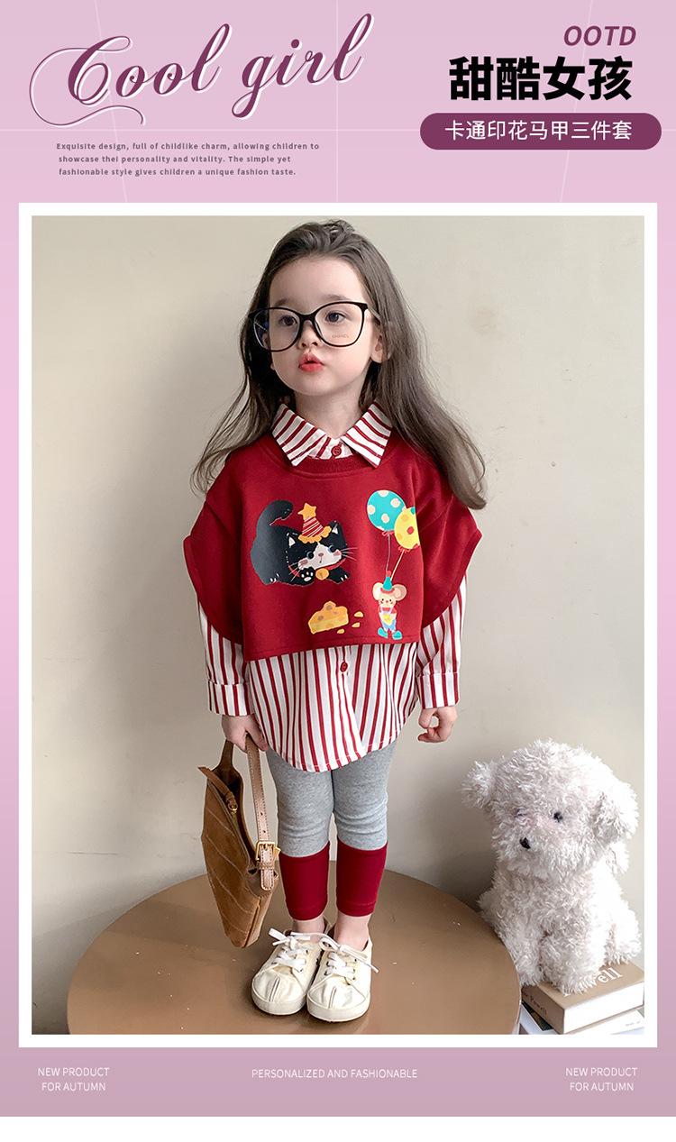 Conjunto de Tres Piezas de Camisa y Chaleco de Otoño para Niñas 2025 Nueva Ropa de Otoño Infantil Elegante y a la Moda Bebé Niña Suave Super Cómodo
