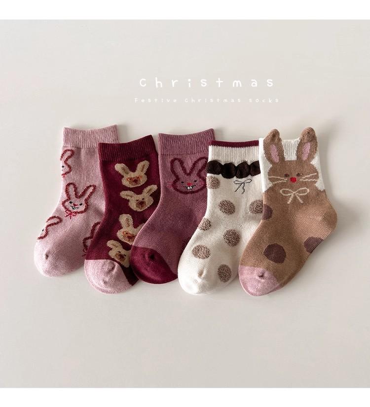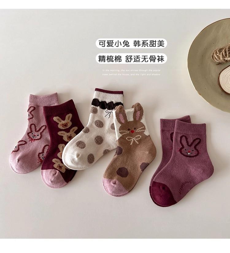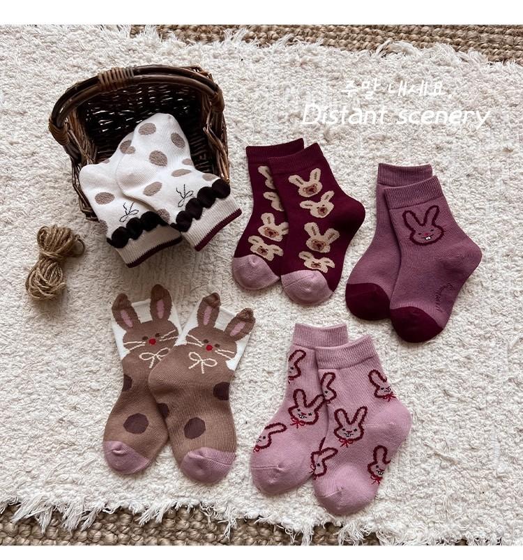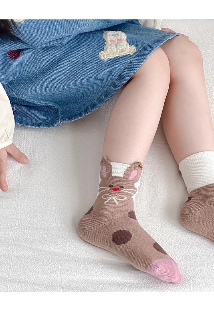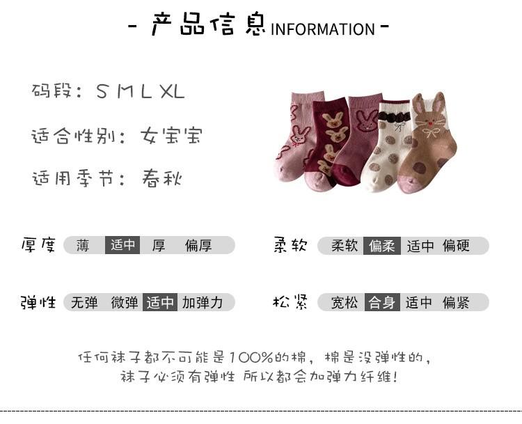 Calcetines para Niñas Primavera y Otoño Calcetines hasta la Mitad de la Pantorrilla para Niños Estilo Coreano Dibujos Animados Lindo Conejo Niña Bebé Calcetines de Algodón Sin Costuras Venta al por Mayor