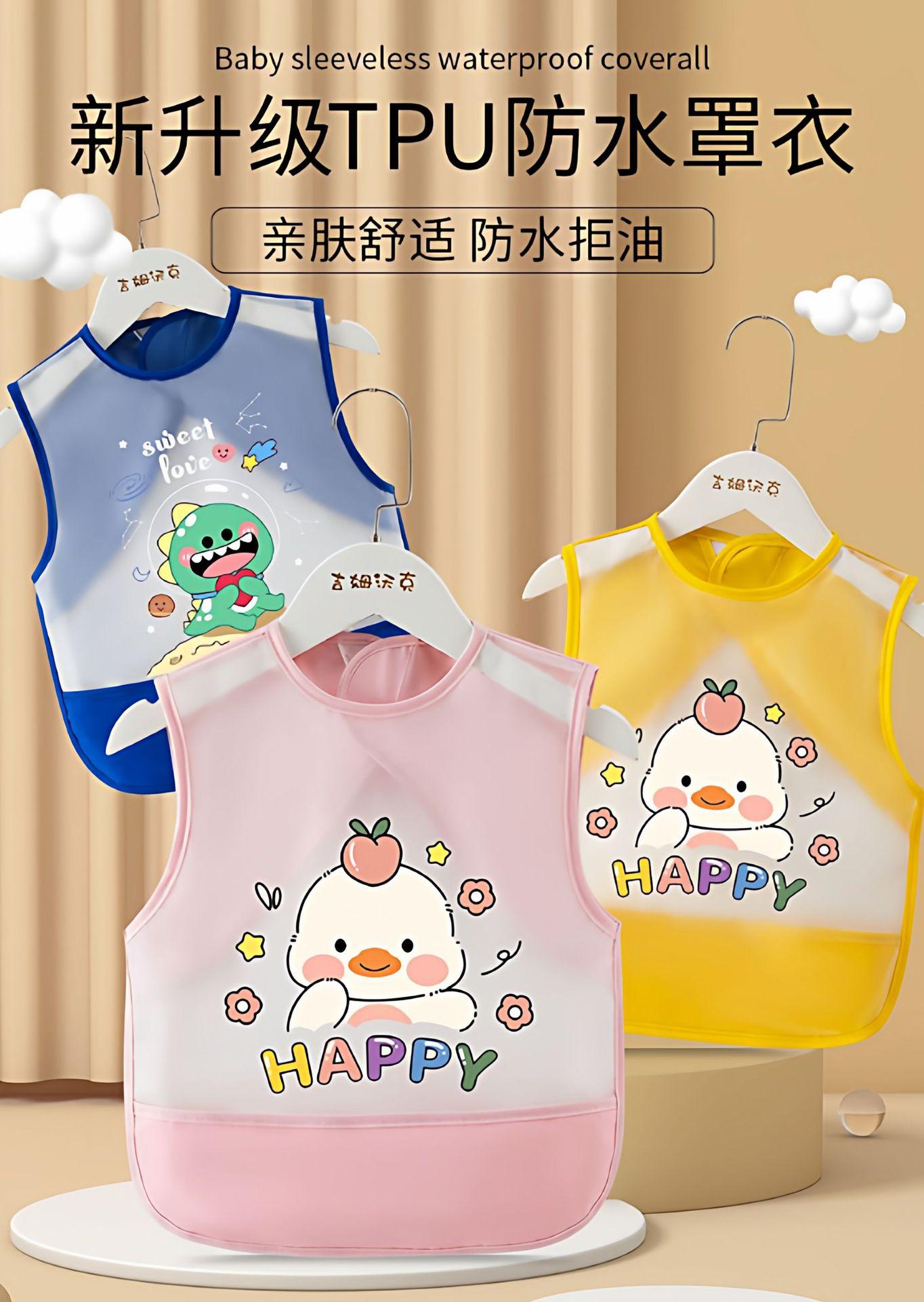 Babero para Comer Bebé Niños Impermeable Verano Bata Anti-Suciedad Niños y Niñas Babero sin Mangas Babero para Alimentos Complementarios para Bebé