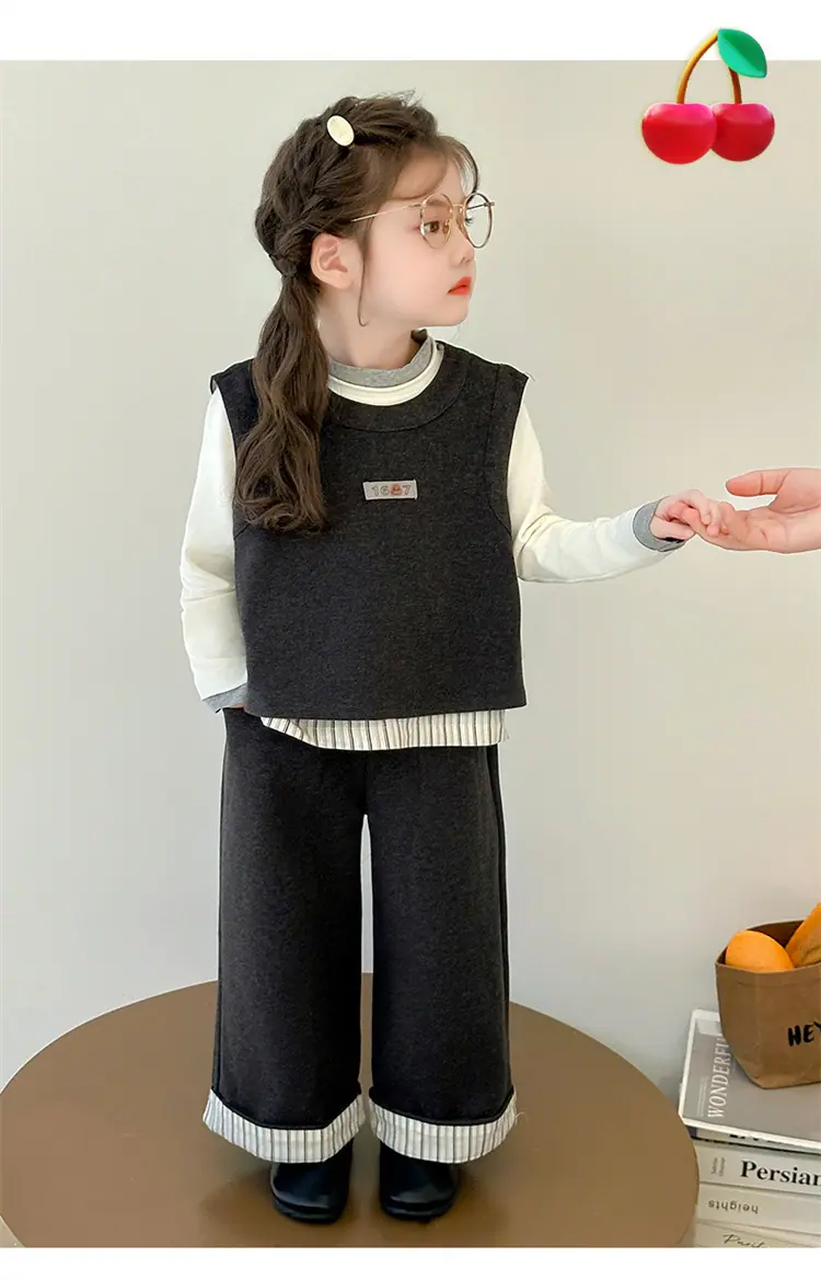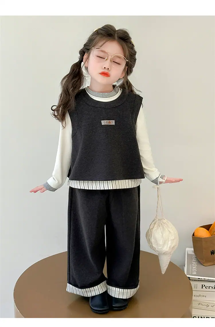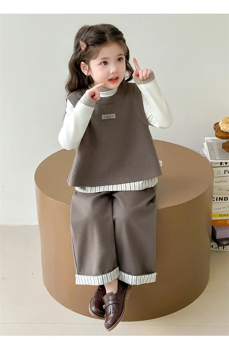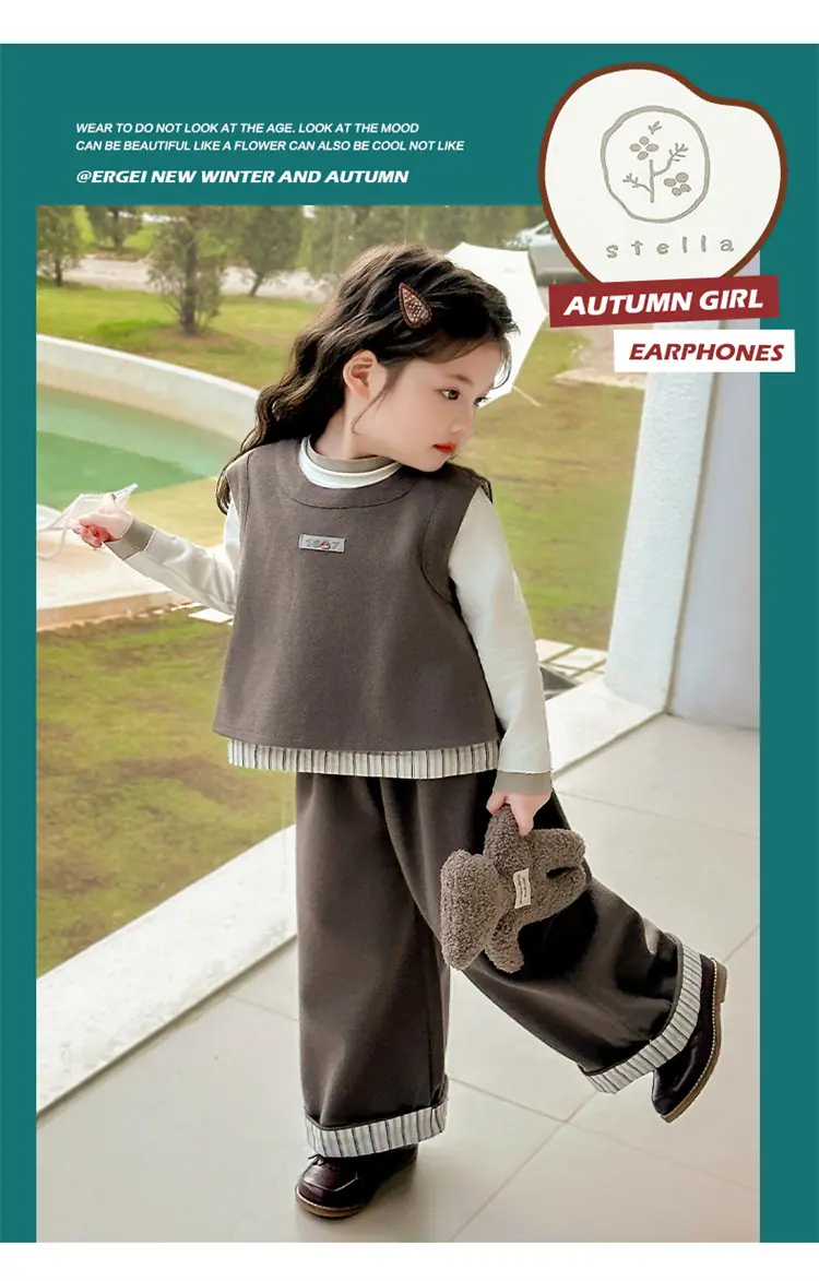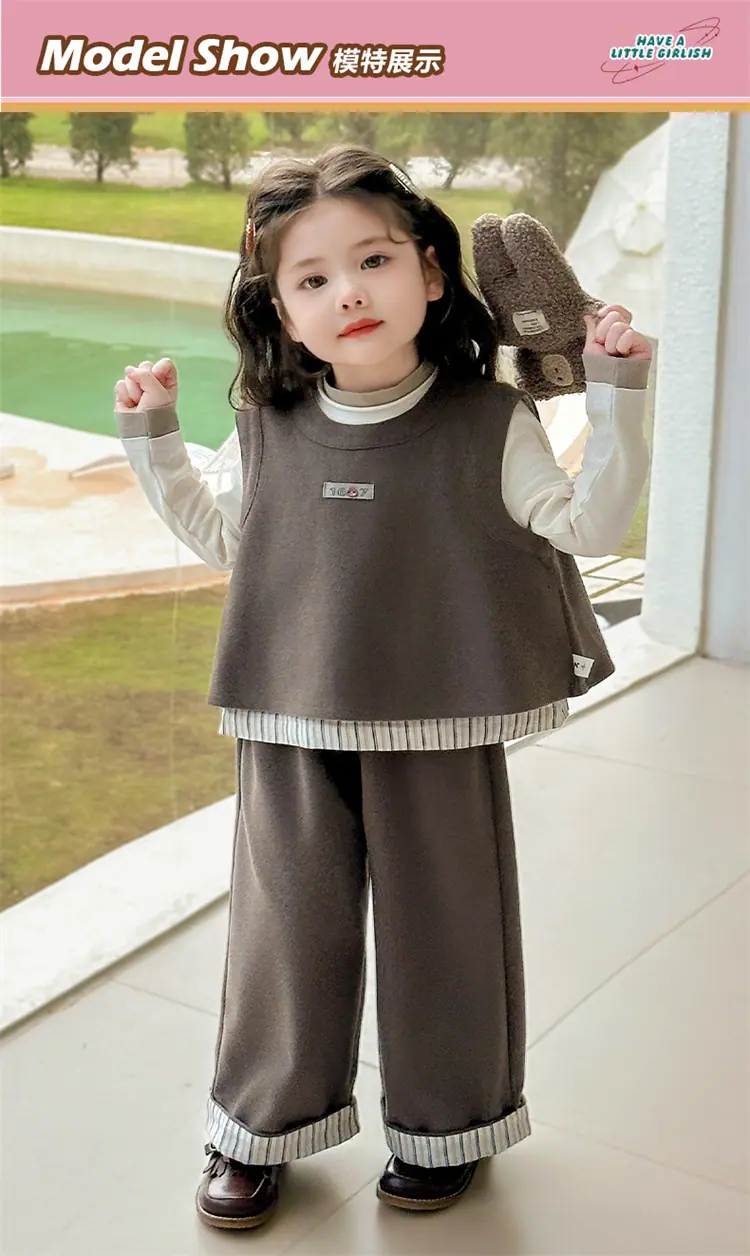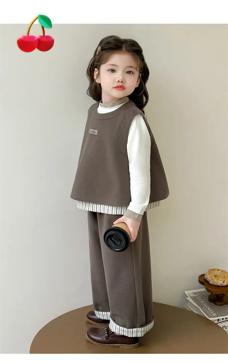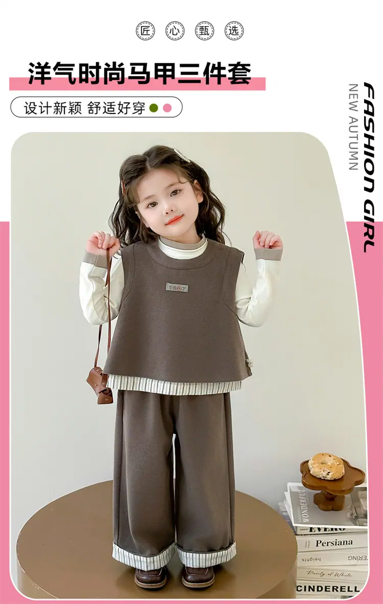 Conjunto para Niñas Primavera y Otoño 2025 Nuevo Moderno Bebé Niña Estilo Coreano Chaleco Conjunto de Tres Piezas para Niños Ropa de Otoño para Niños Marea