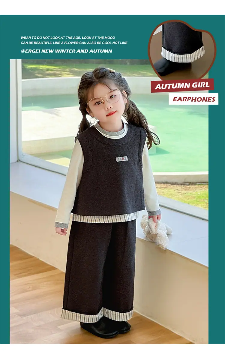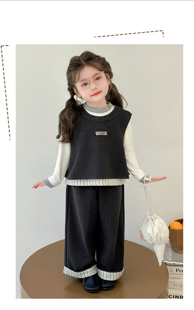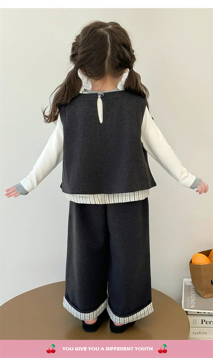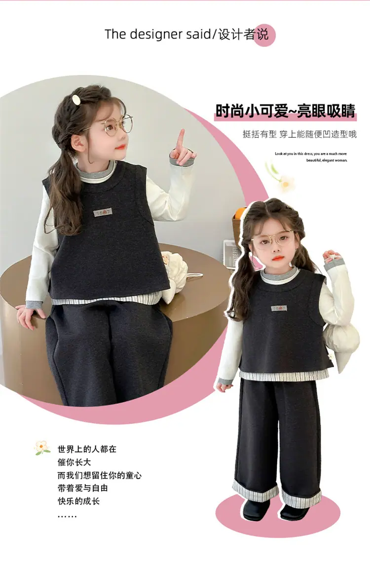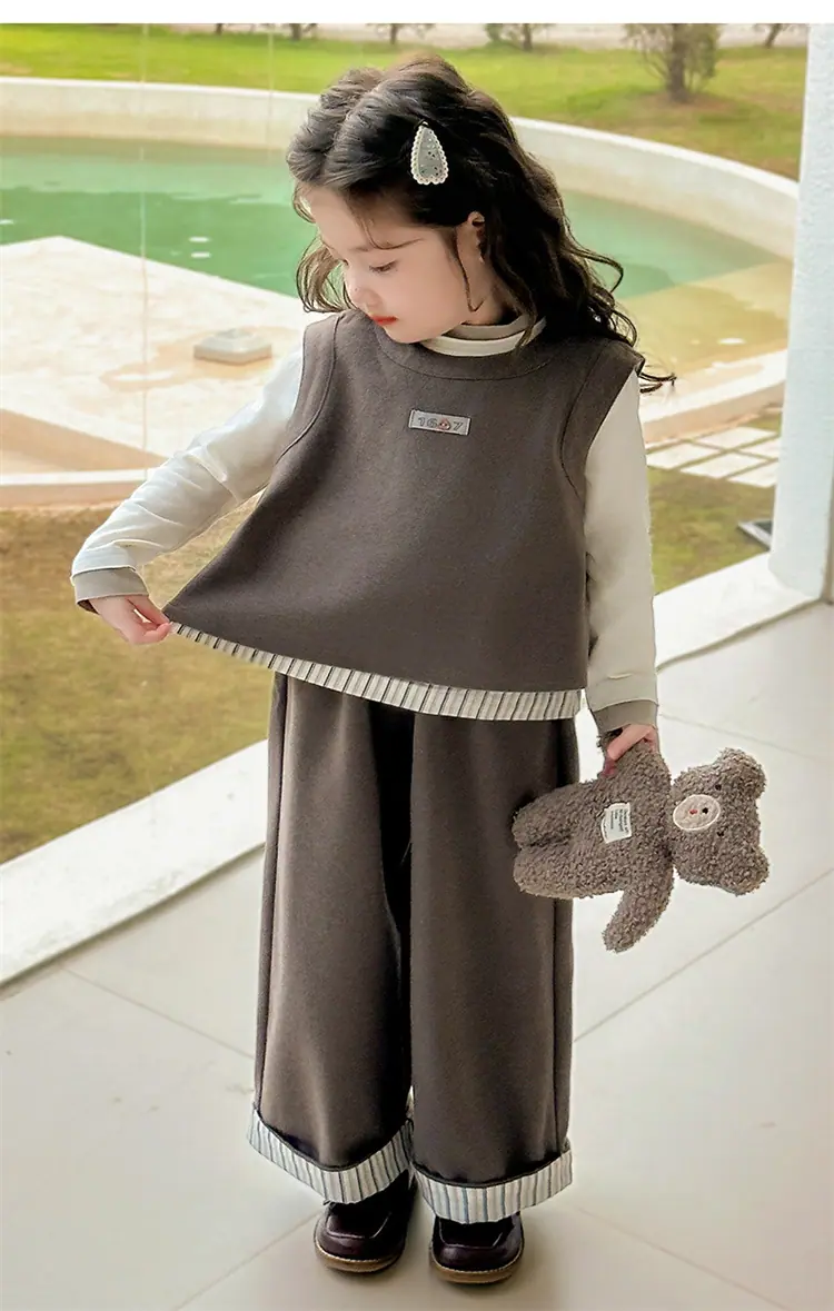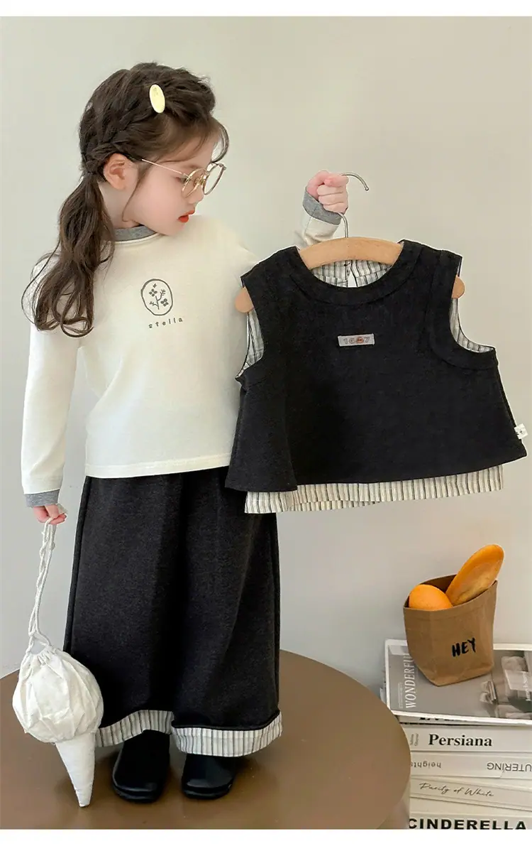 Conjunto para Niñas Primavera y Otoño 2025 Nuevo Moderno Bebé Niña Estilo Coreano Chaleco Conjunto de Tres Piezas para Niños Ropa de Otoño para Niños Marea