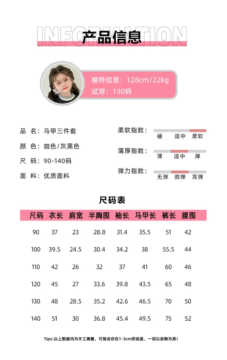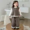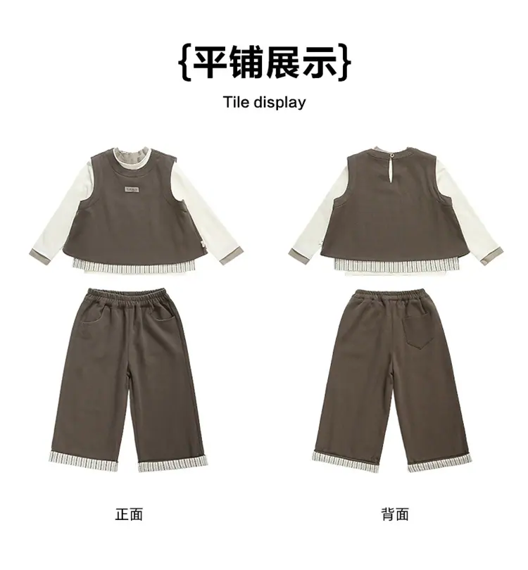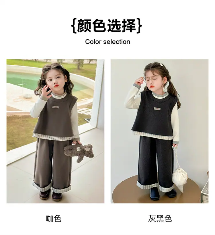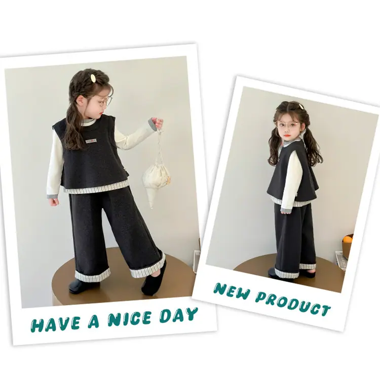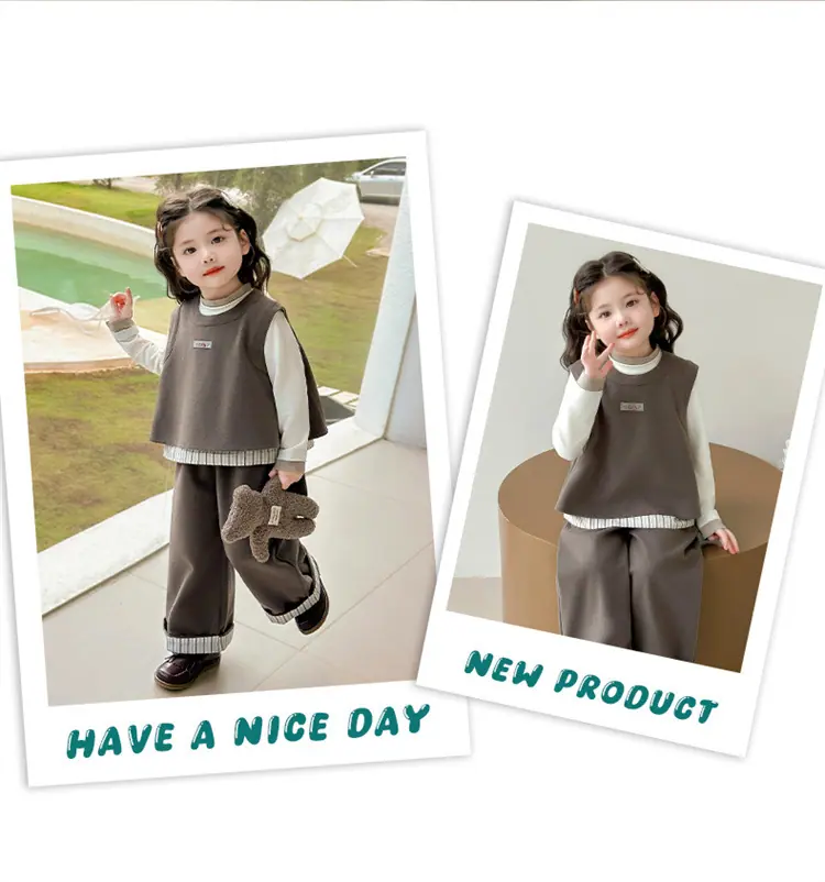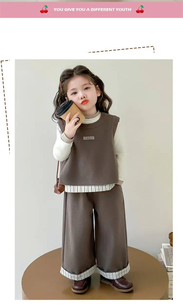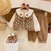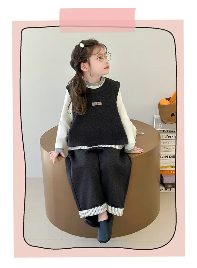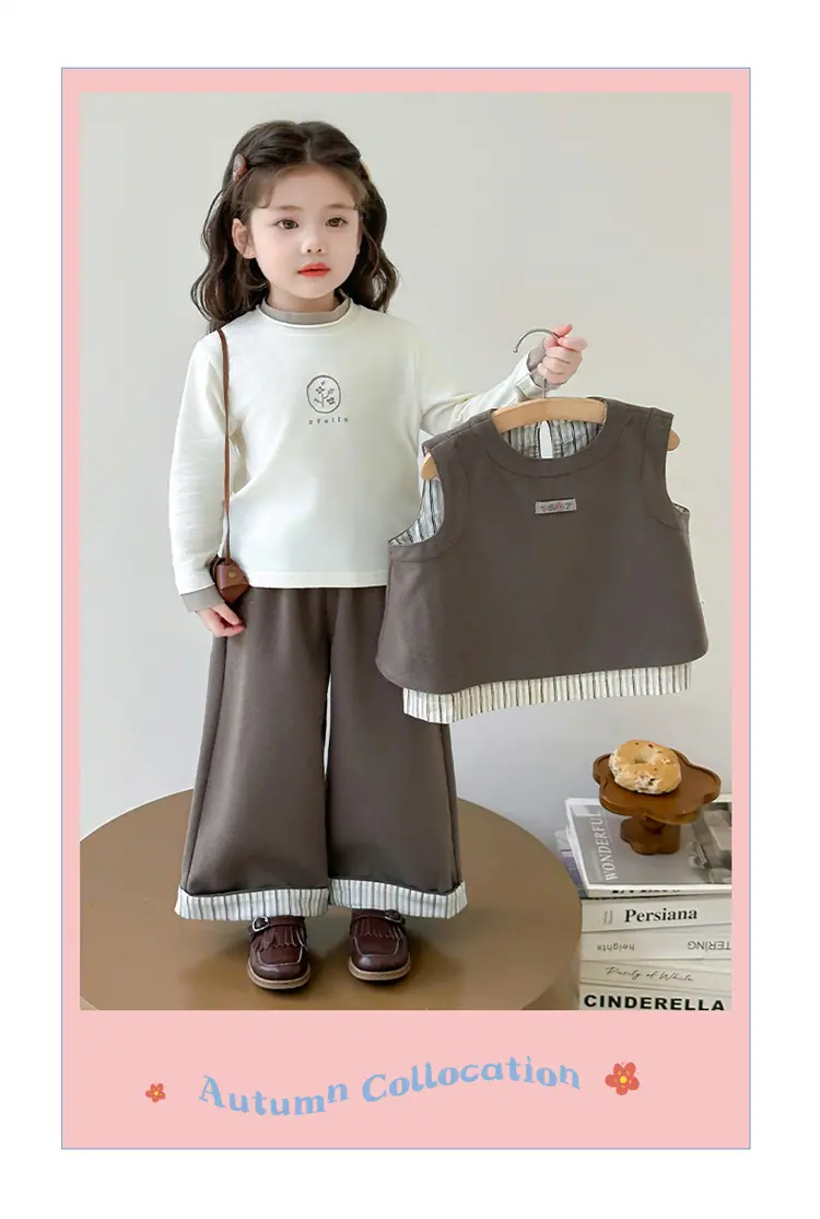 Conjunto para Niñas Primavera y Otoño 2025 Nuevo Moderno Bebé Niña Estilo Coreano Chaleco Conjunto de Tres Piezas para Niños Ropa de Otoño para Niños Marea