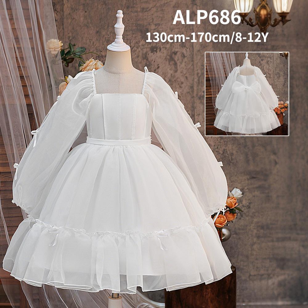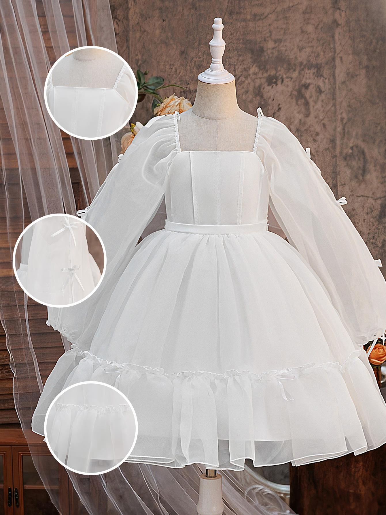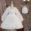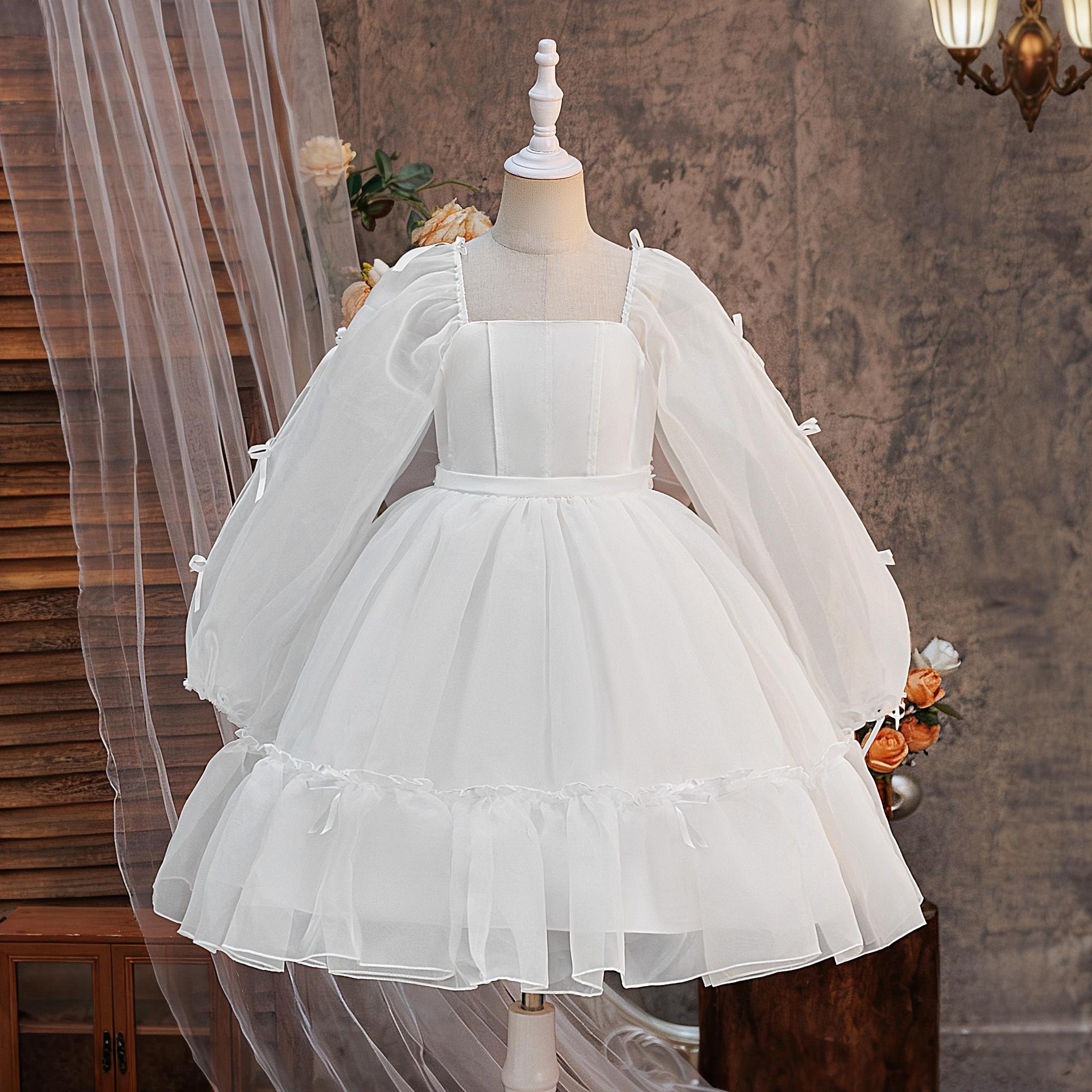 Nuevo vestido de novia pomposo para niños europeos y americanos, vestido de princesa de cumpleaños con lazo tridimensional para niña pequeña, disfraz de actuación para niña de las flores