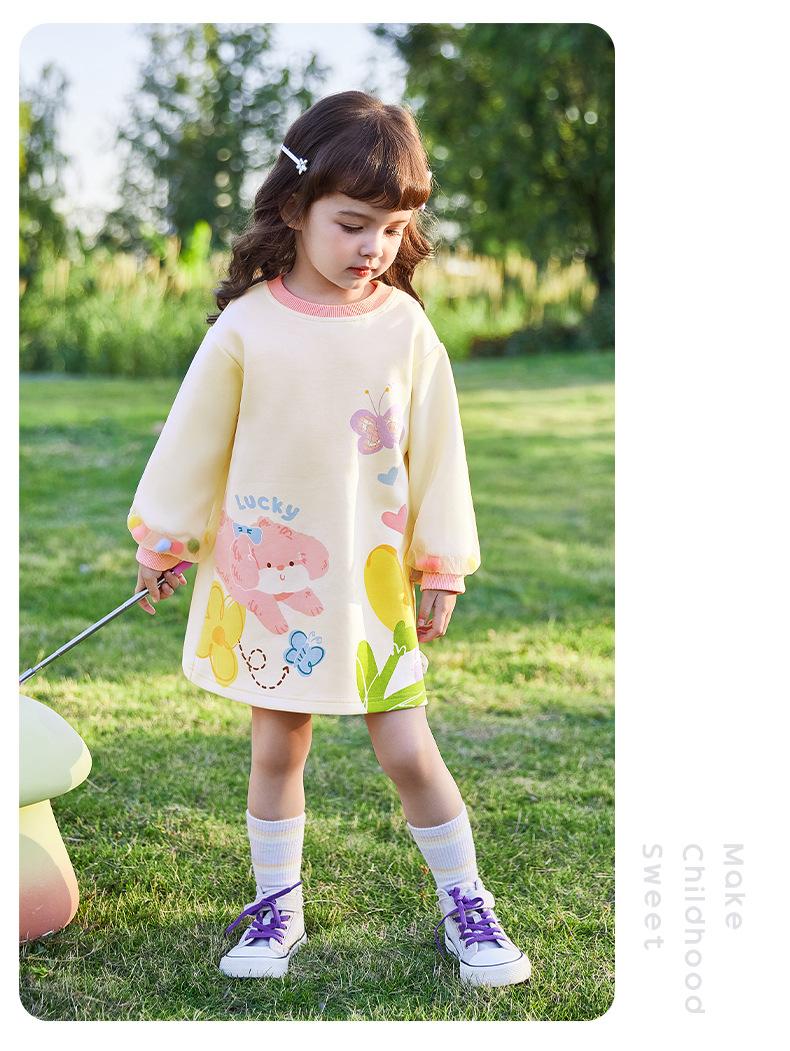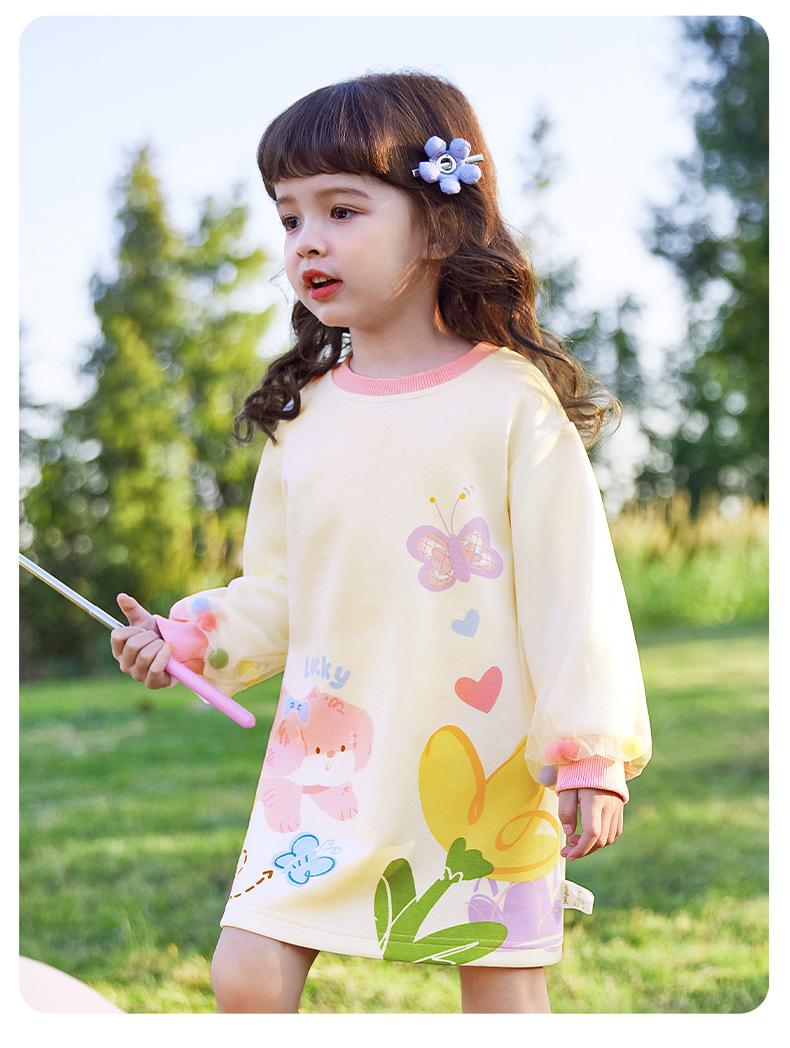Vestido de Niña Otoño Ropa para Niños Pequeños Dulce Vestido Sudadera Vestido de Manga Abullonada para Niños Ropa de Otoño Primavera para Bebé Vestido