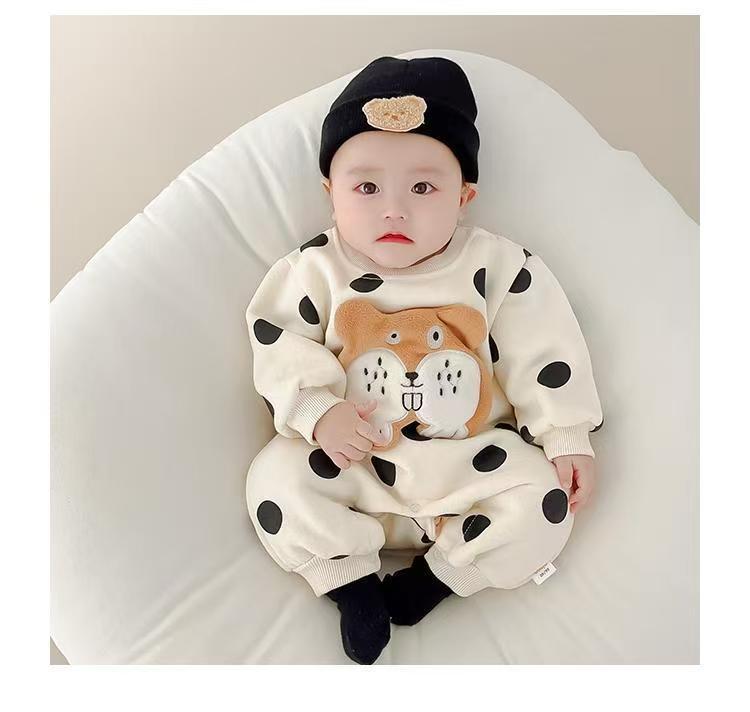 Mameluco de Bebé Otoño Invierno Ropa Ha Suave Manga Larga Jersey Conjunto Bebé Lindo Moderno Ropa Exterior Traje para Gatear Bebé