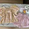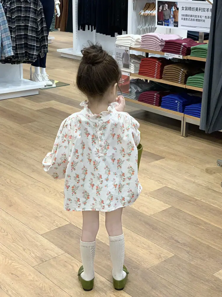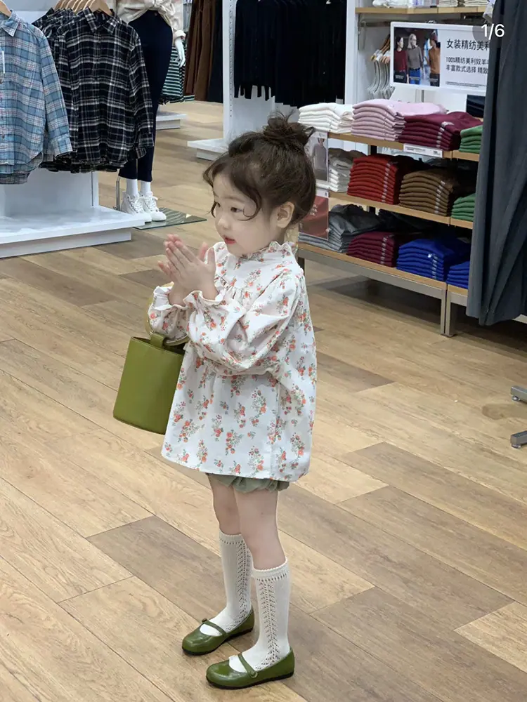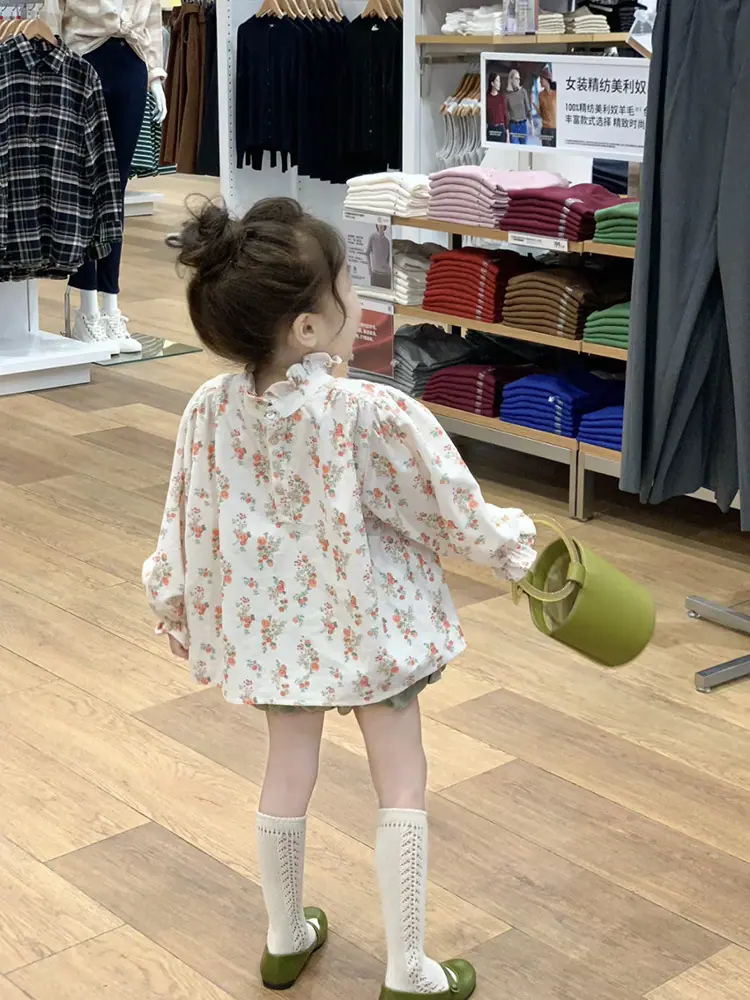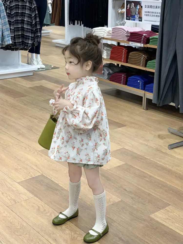 Gran Venta No Reembolsable y No Intercambiable [Orden Racionalidad] Camisa Floral de Cuello Alto para Niñas + Shorts Bud de Pana