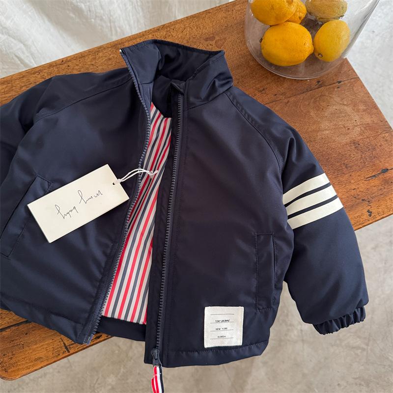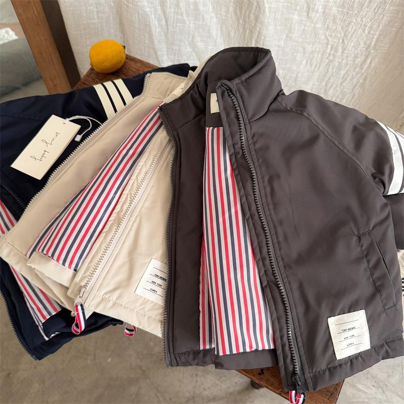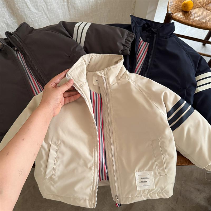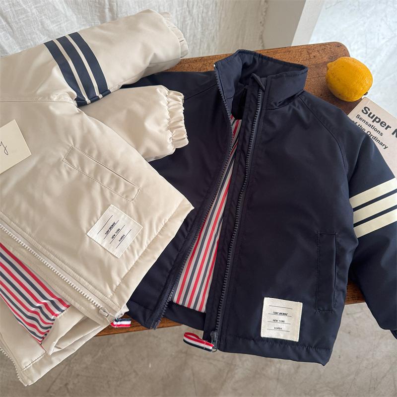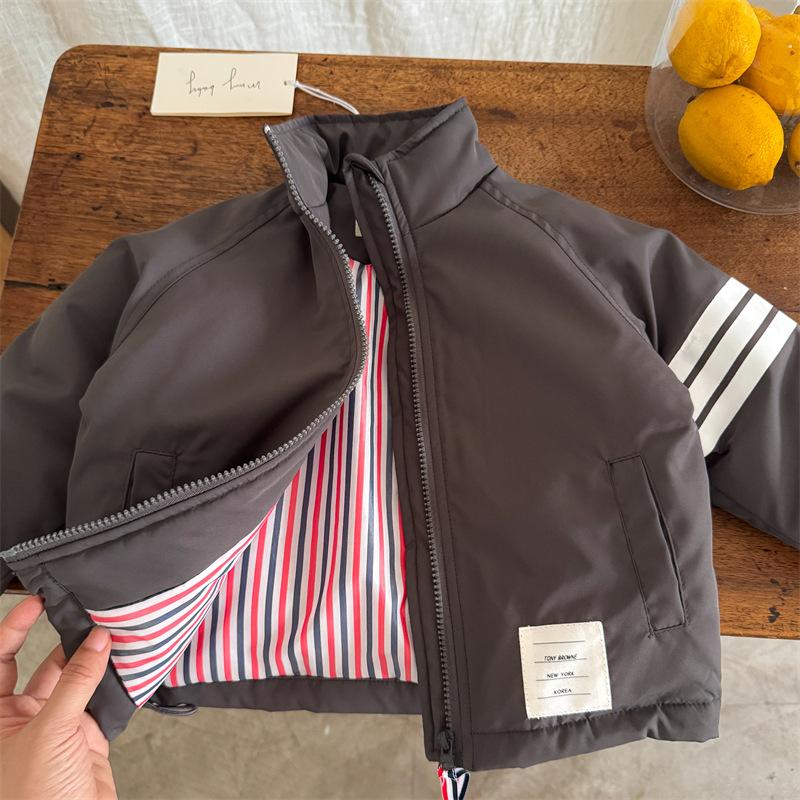 Compra Chaqueta acolchada de algodón para niños 2025 Ojo rasgado Invierno Nuevo producto Niños y niñas Estilo coreano Chaqueta acolchada de algodón Abrigo Bebé Casual Rayas Chaqueta al por mayor en Joom.pro