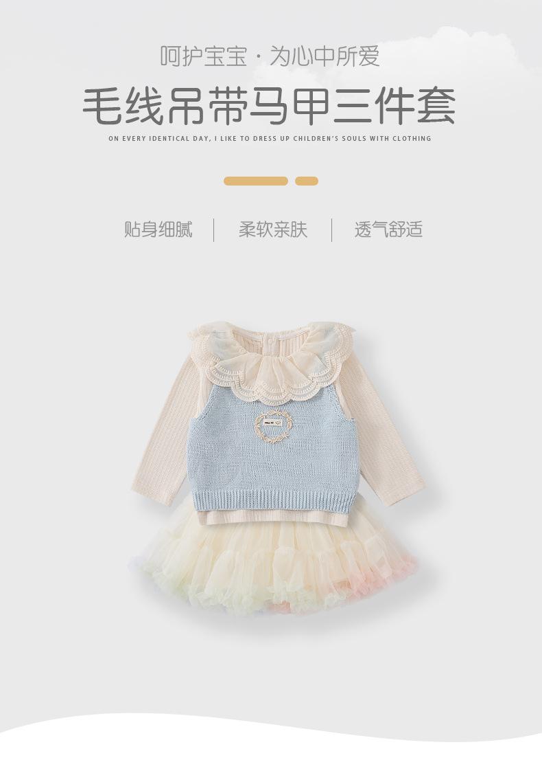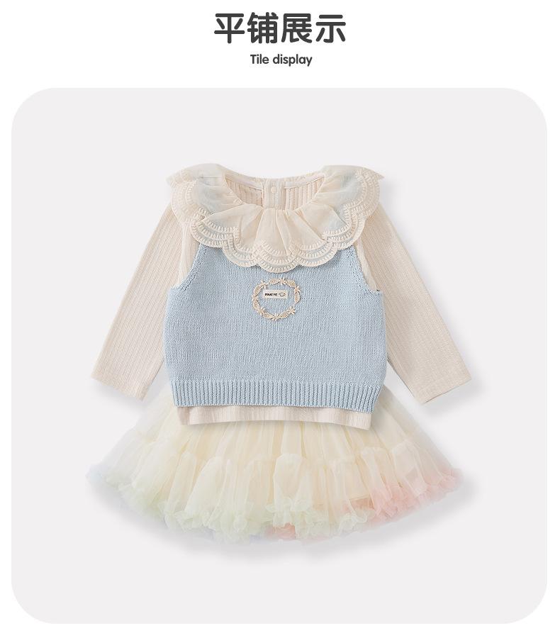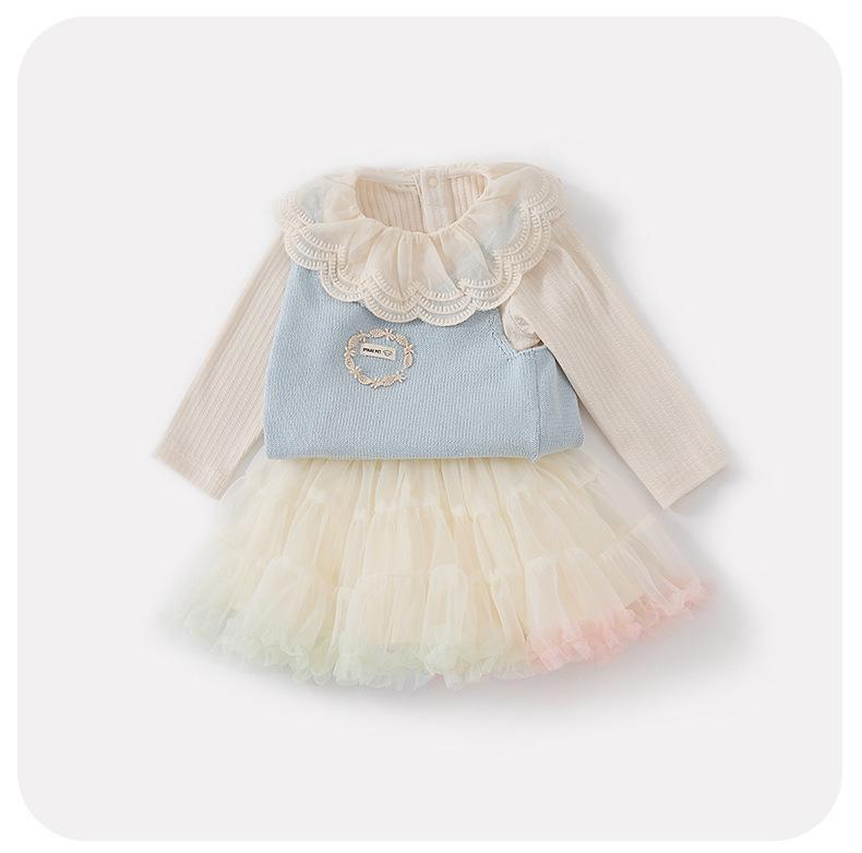 Conjunto Dulce para Bebé y Niño Pequeño Estilo Otoño 2025 Suéter Chaleco Colorido Media Falda Camiseta Interior Conjunto de Tres Piezas