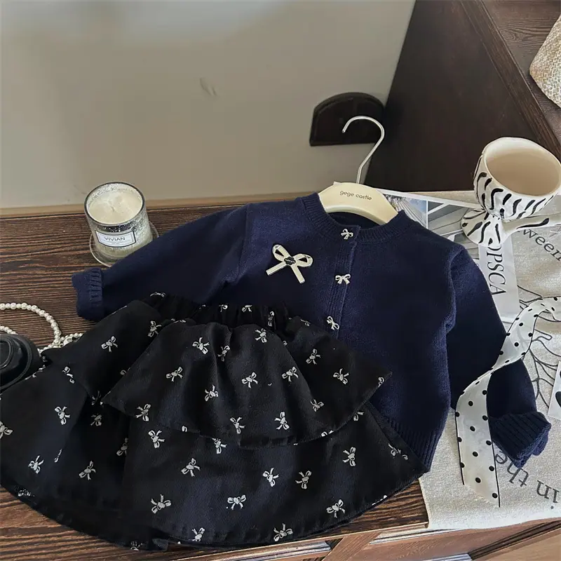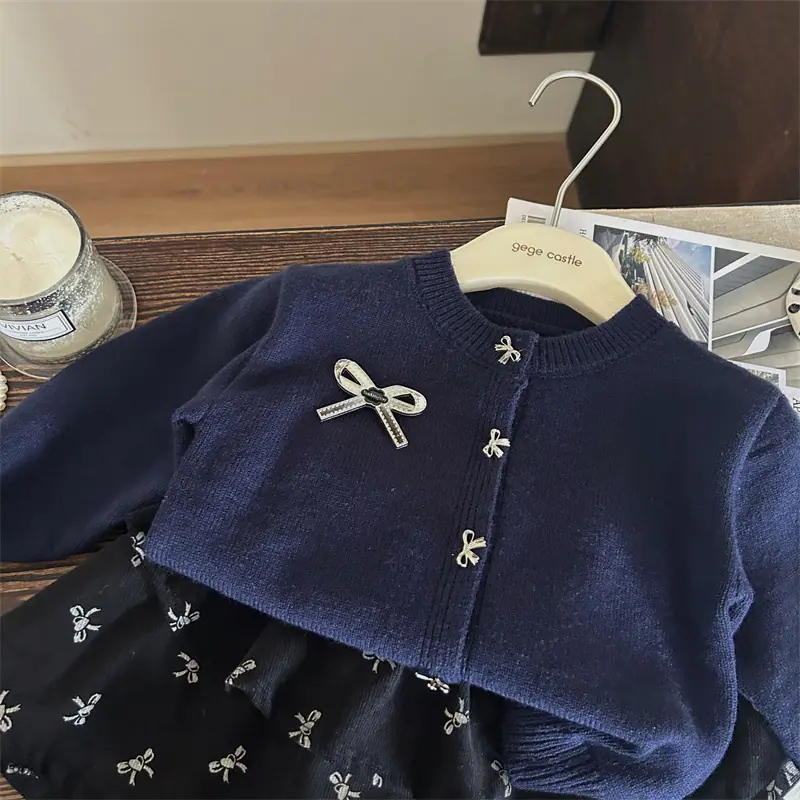 Gran Venta No Reembolsable y No Intercambiable [Pedido por Racionalidad] Suéter con Lazo de Otoño para Niñas Cárdigan de Punto + Culottes de Pana