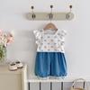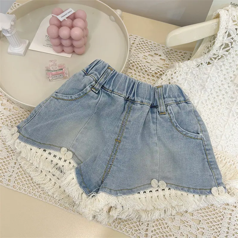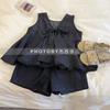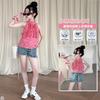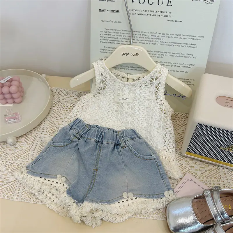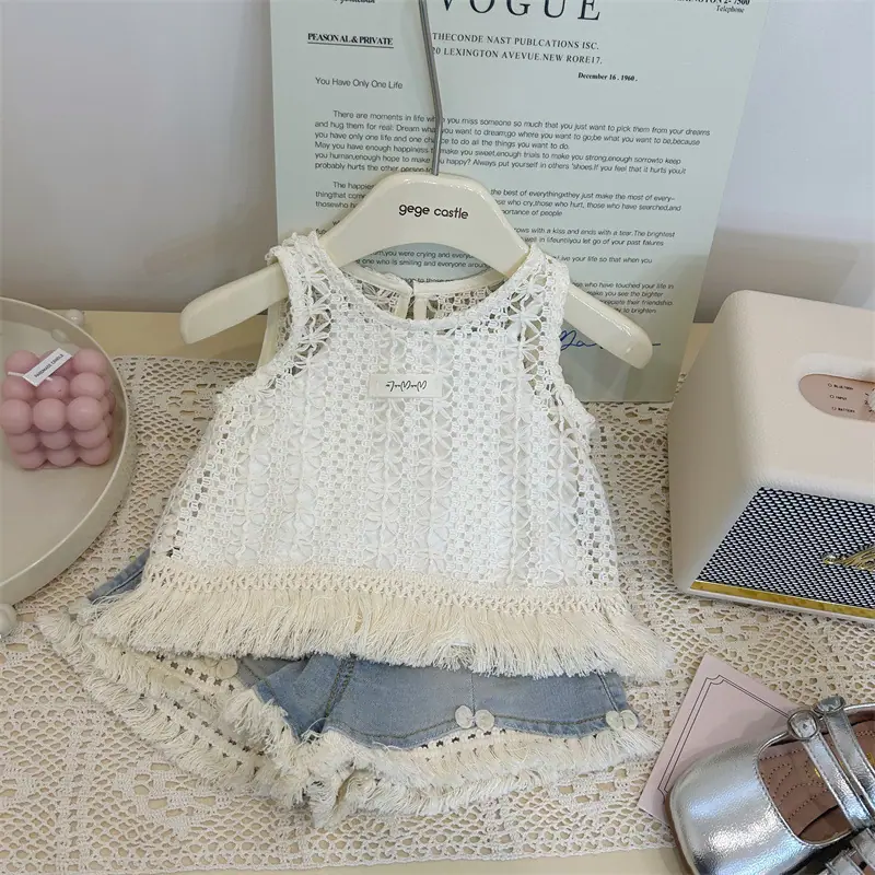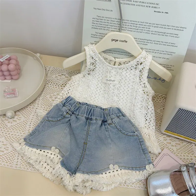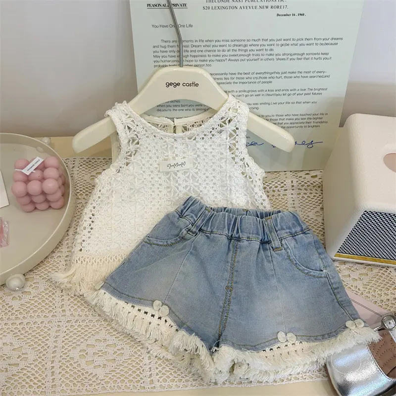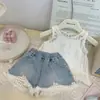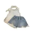 Gran Venta No Reembolsable y No Intercambiable [Pedido por Racionalidad] Verano Niñas Blusa Chaleco Recortado + Top Halter + Shorts de Mezclilla