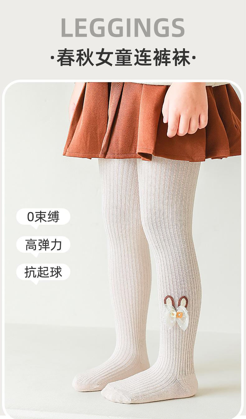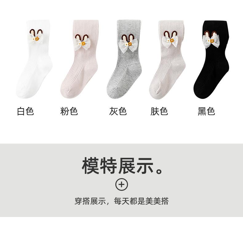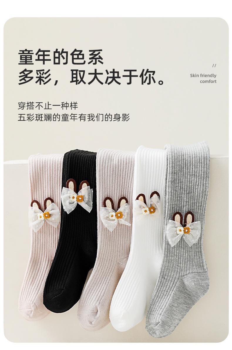 Amazon Transfronterizo Mallas de Primavera para Niñas Lindas Orejas de Conejo Algodón Fino Lazo Bebé Infantil Leggings
