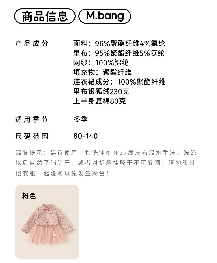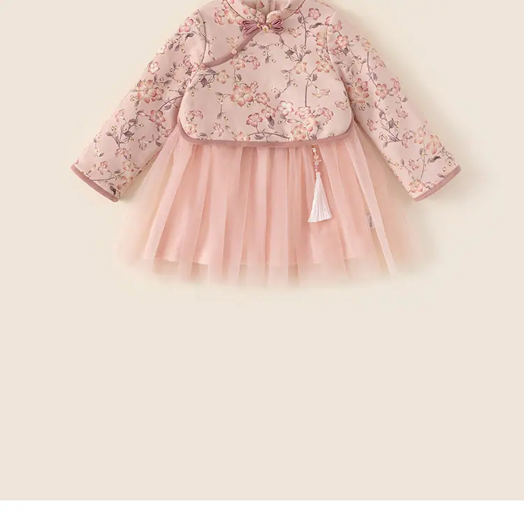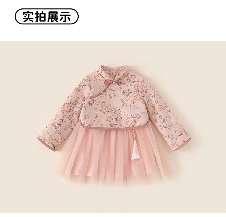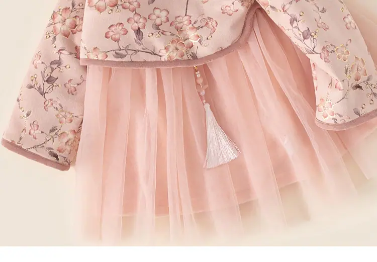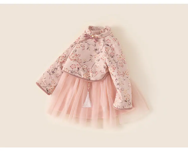Ropa para Niños Bangxuan Vestido para Niñas Dulce y a la Moda Vestido de Malla para Bebé Invierno Nuevo Producto Vestido para Niños Estilo Chino