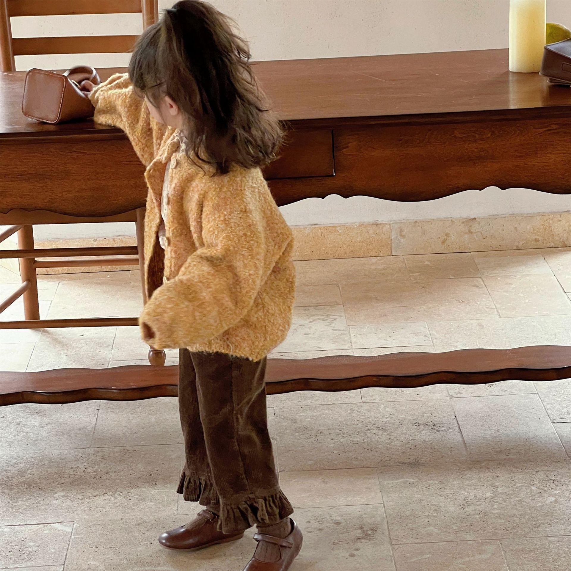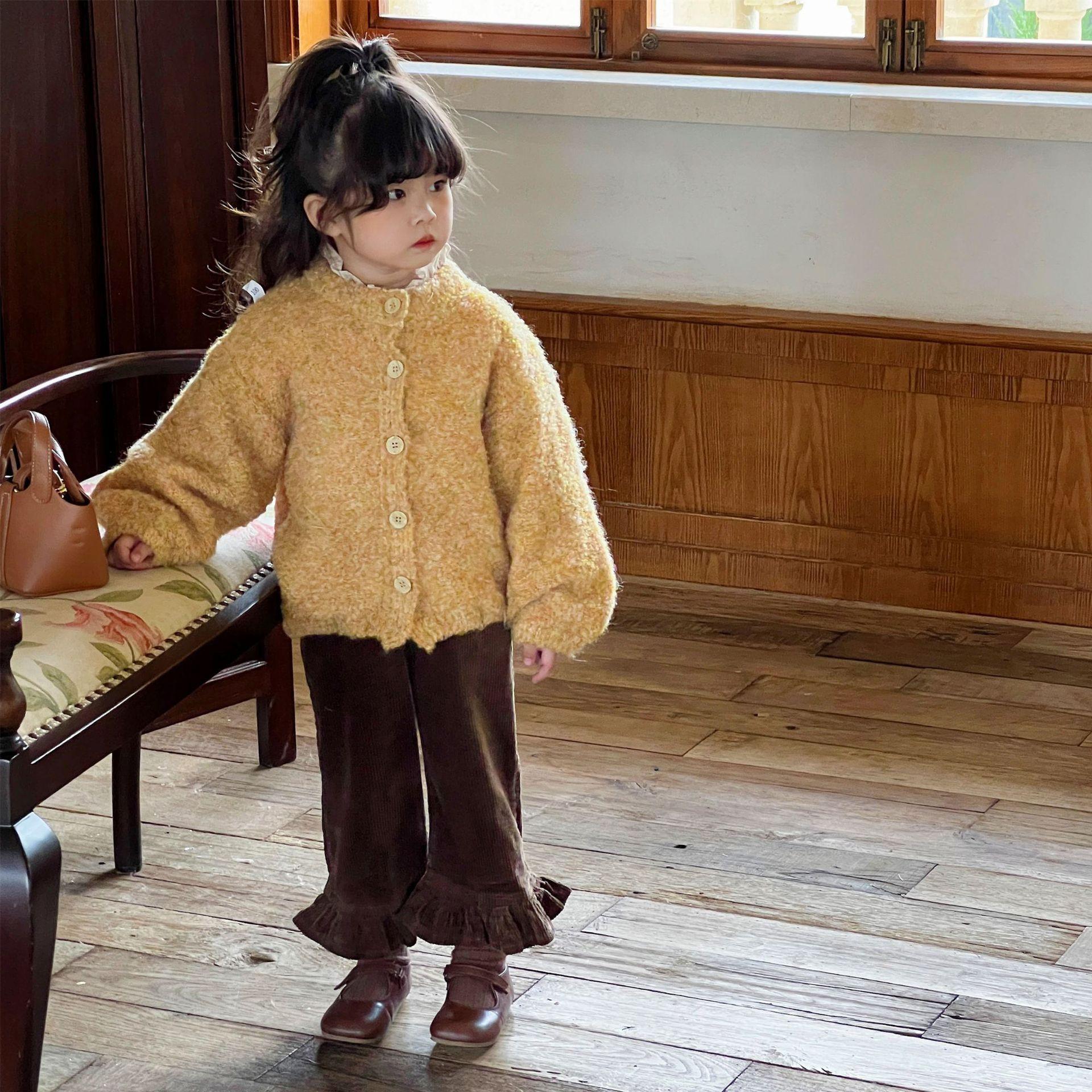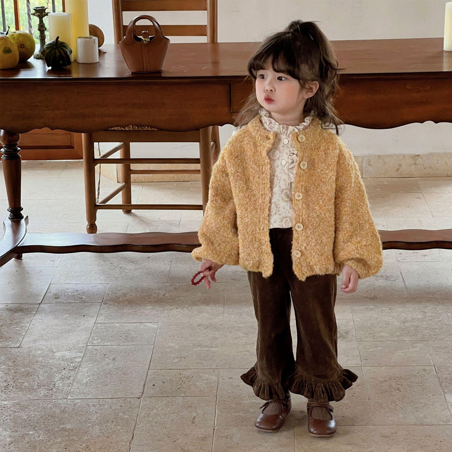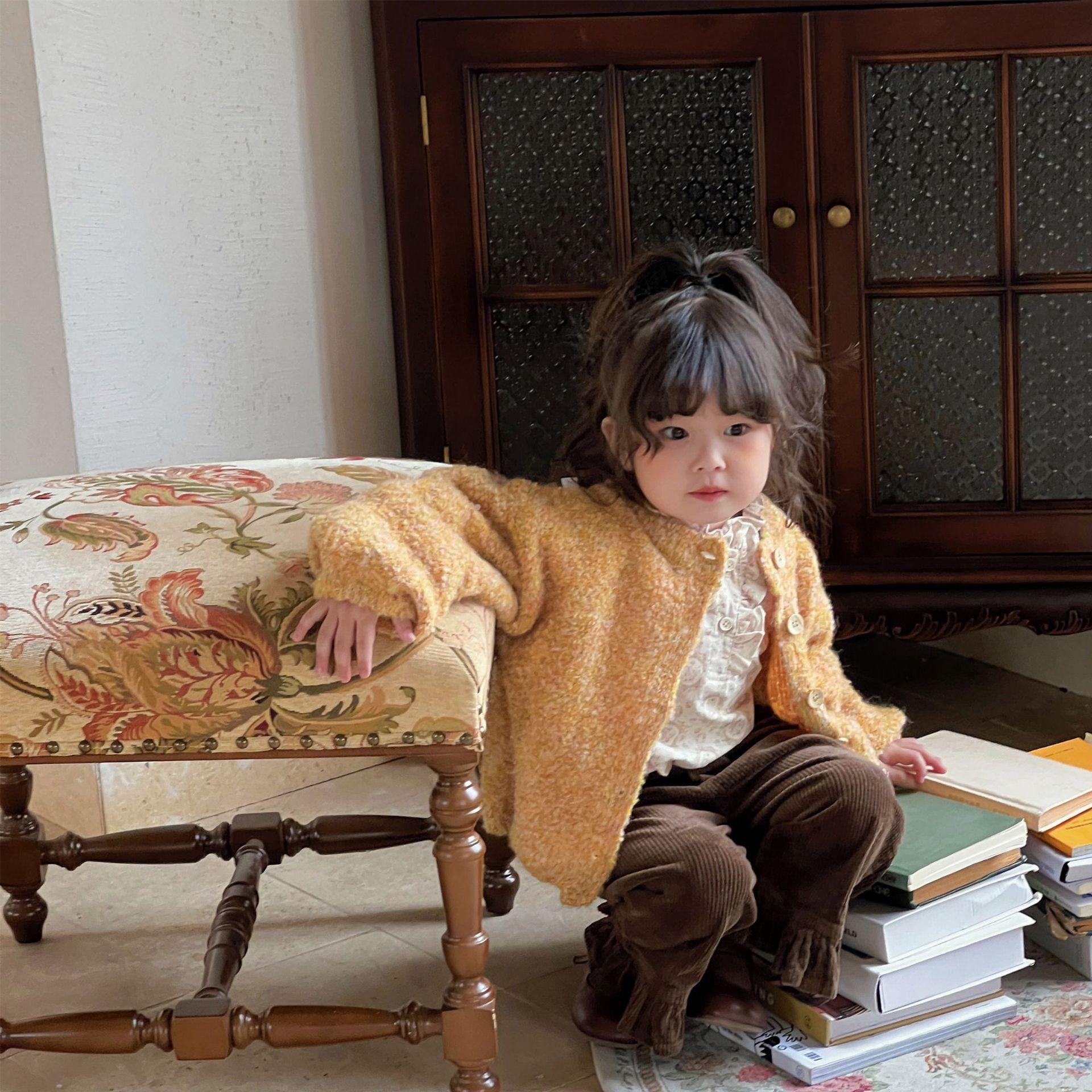 Ropa para Niños Estilo Coreano Traje de Otoño para Niñas 2024 Nuevo Estilo Cárdigan para Niños Suéter Camisa Pantalón Conjunto Trendy de Tres Piezas