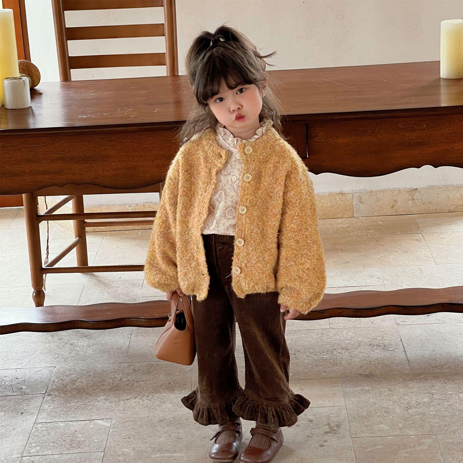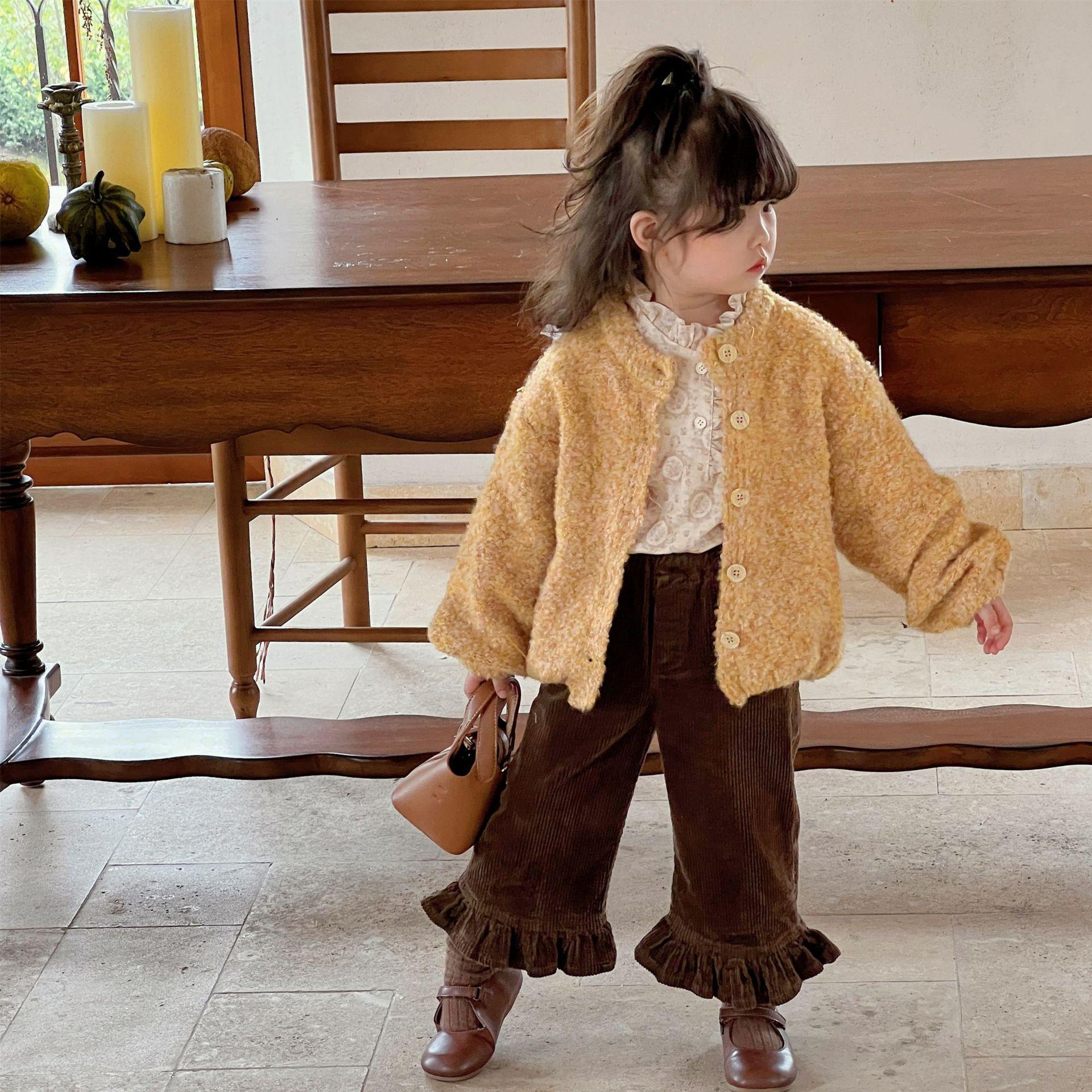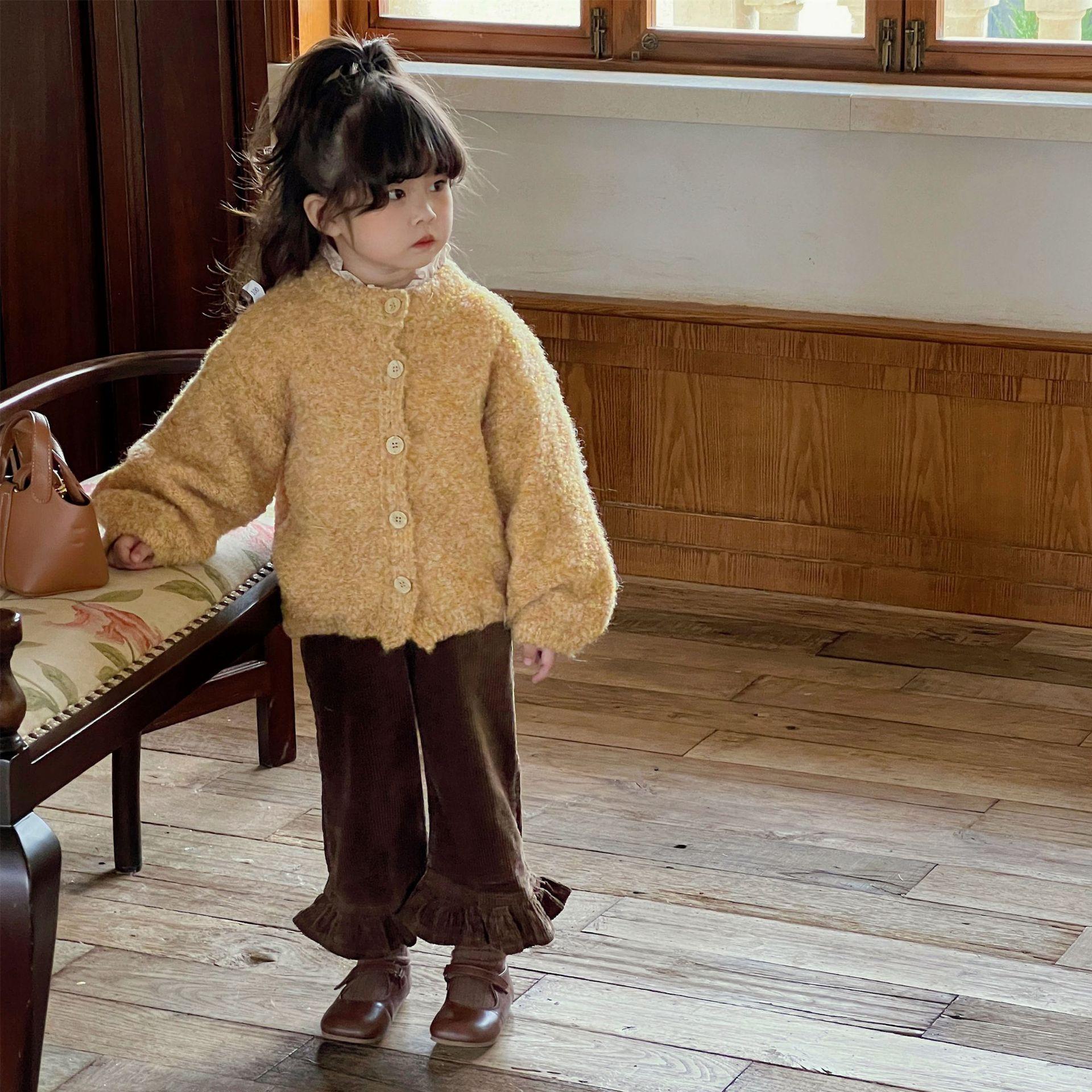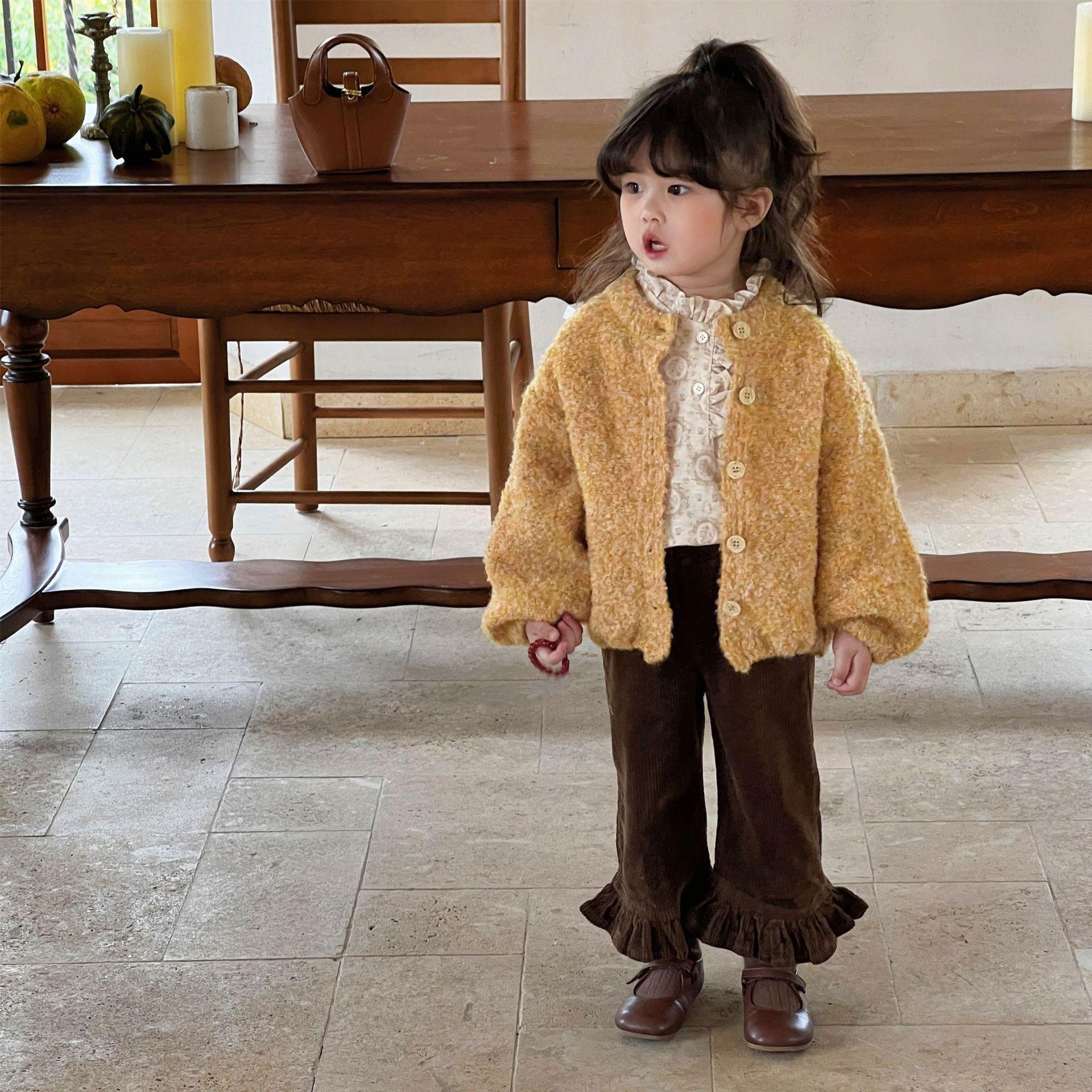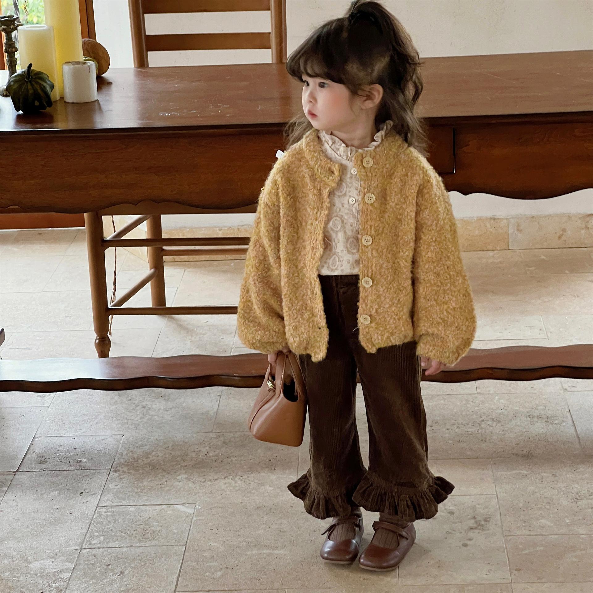 Ropa para Niños Estilo Coreano Traje de Otoño para Niñas 2024 Nuevo Estilo Cárdigan para Niños Suéter Camisa Pantalón Conjunto Trendy de Tres Piezas