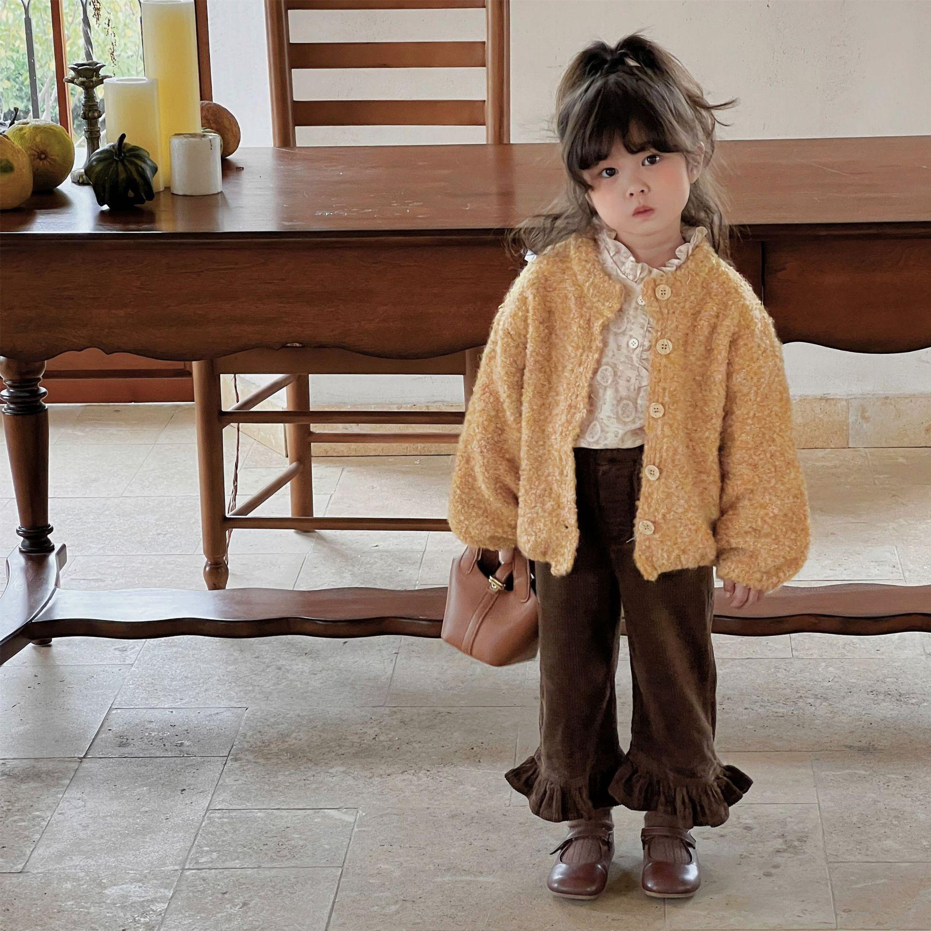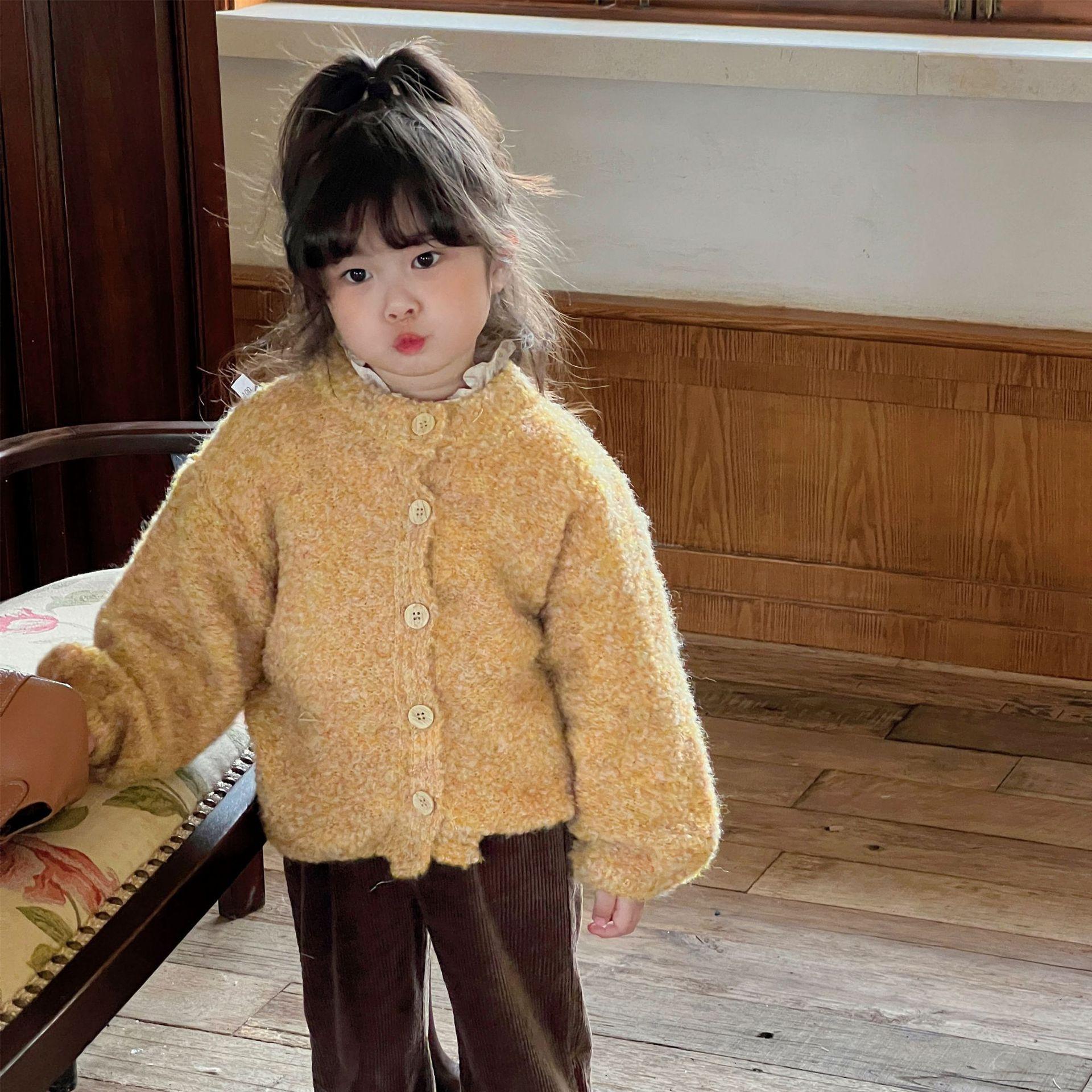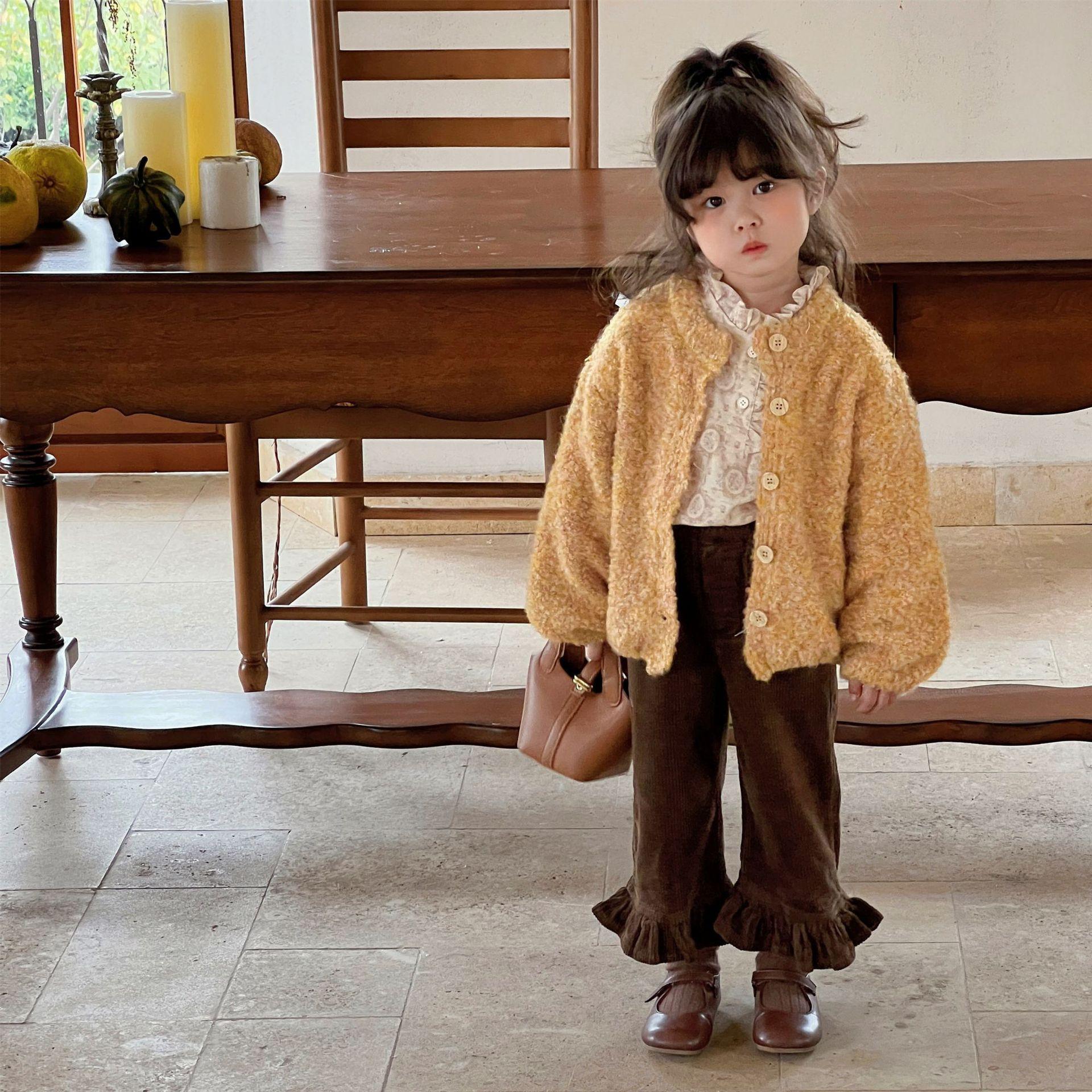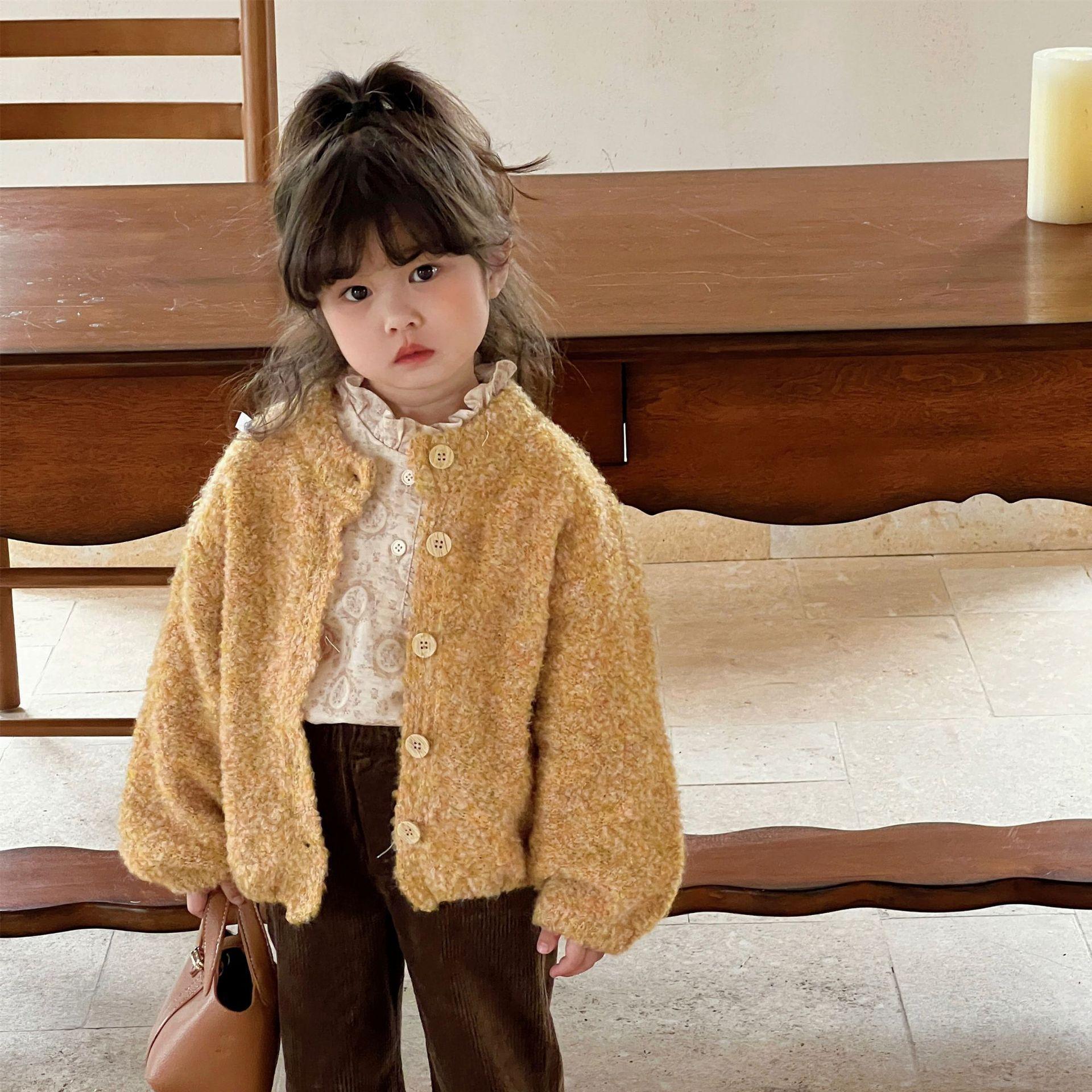 Ropa para Niños Estilo Coreano Traje de Otoño para Niñas 2024 Nuevo Estilo Cárdigan para Niños Suéter Camisa Pantalón Conjunto Trendy de Tres Piezas
