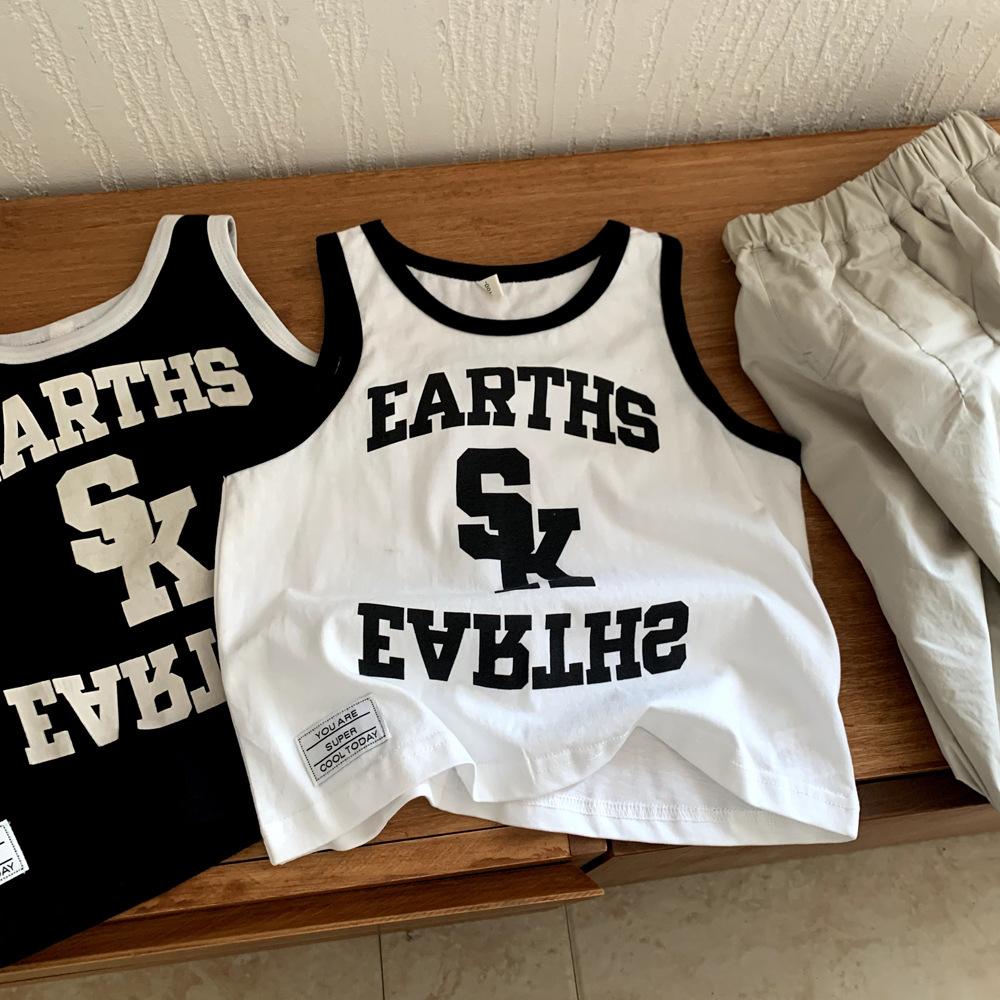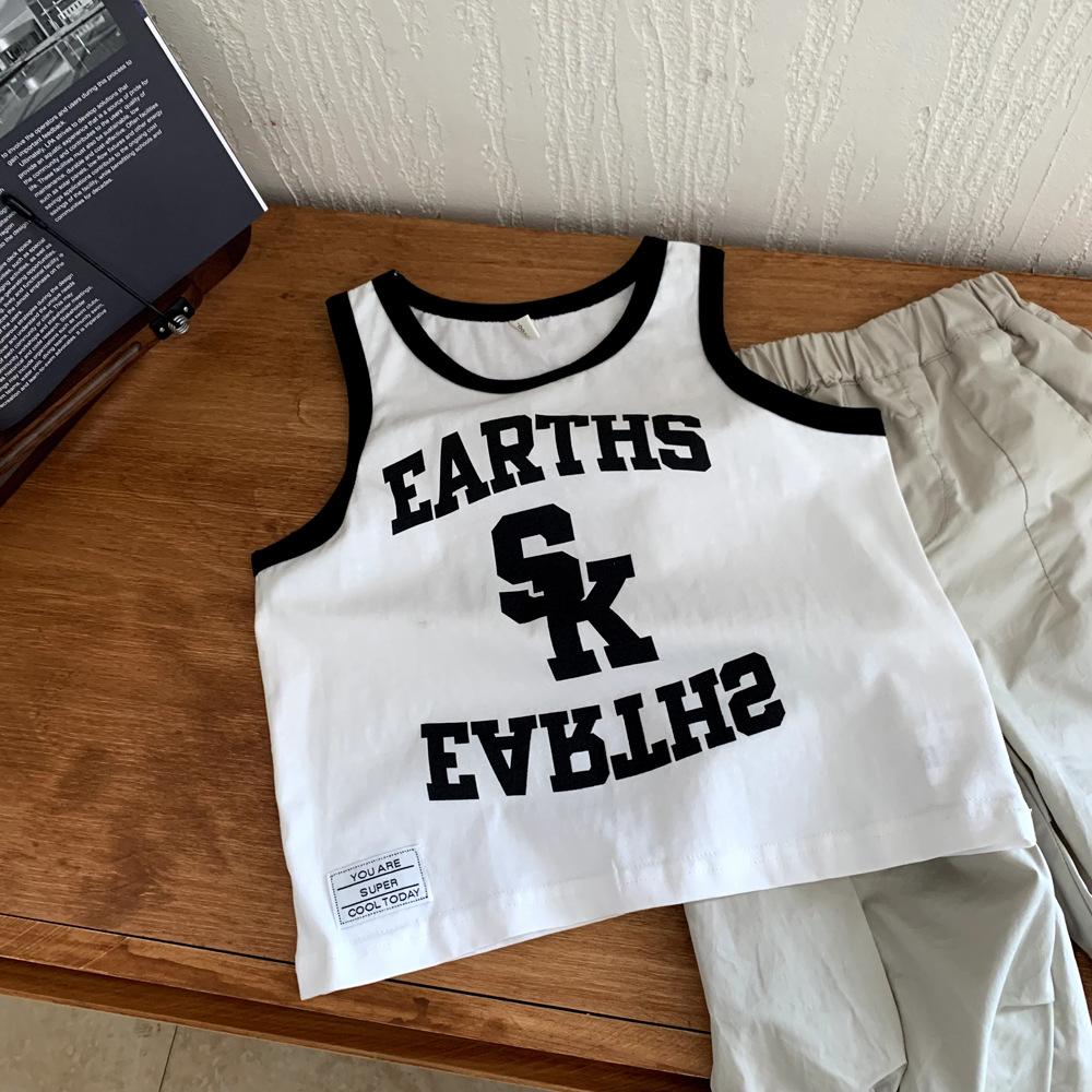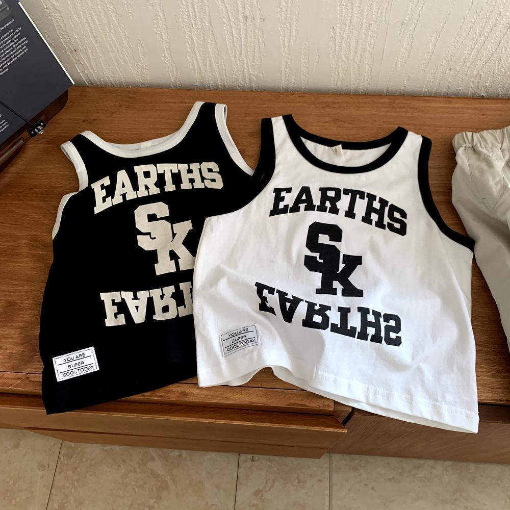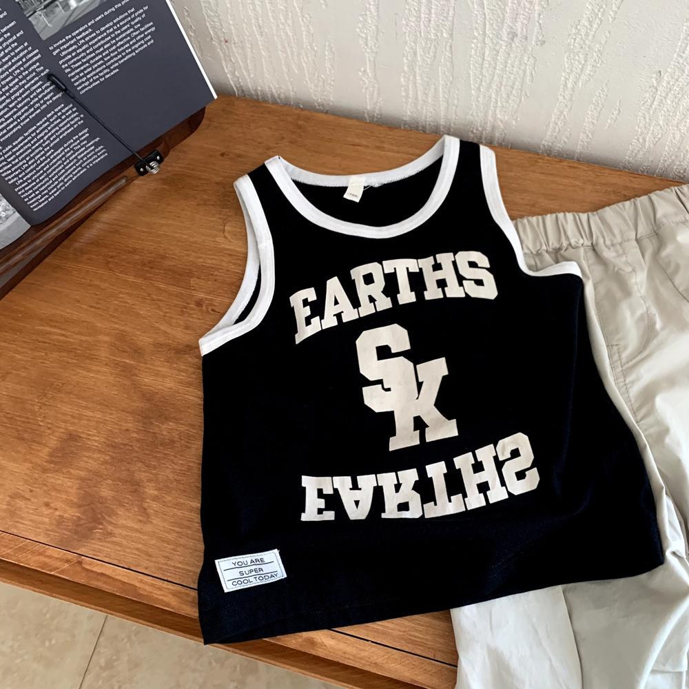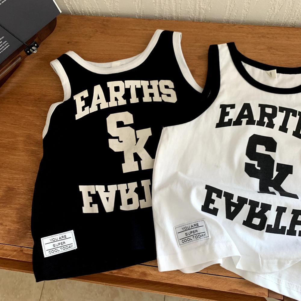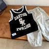 Camiseta Infantil para Niño sin Mangas Verano 2025 Verano Nueva Niña Letra Suelta Estilo Occidental Chaqueta de Hombro T