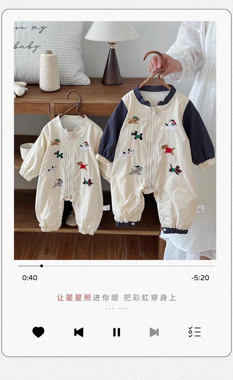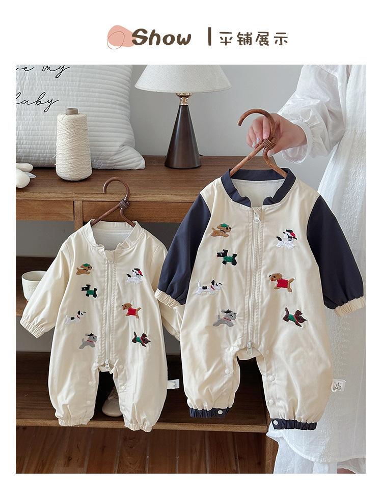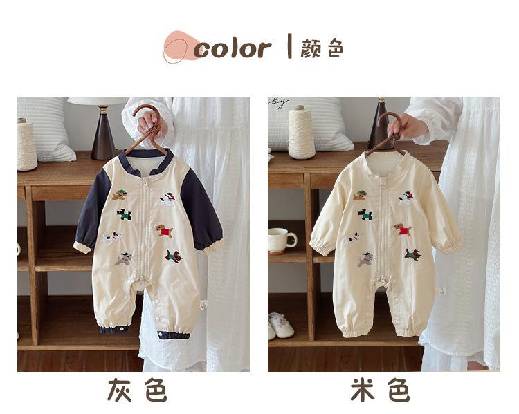 Cartoon Puppy Romper Grey, Cartoon Puppy Romper Beige