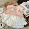 Gran Venta No Reembolsable y No Intercambiable [Pedido por Racionalidad] Chaleco Tejido con Lazo para Niñas + Más Fácil para Combinar Faldas