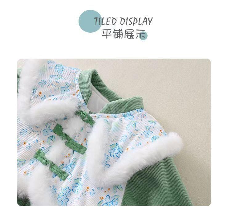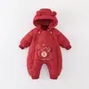 Ropa China de Invierno para Bebé Espesada Ropa de Invierno para Bebé Niña Cien Días Un Año Traje Enterizo Luna Llena Año Nuevo Salida Traje para Gatear