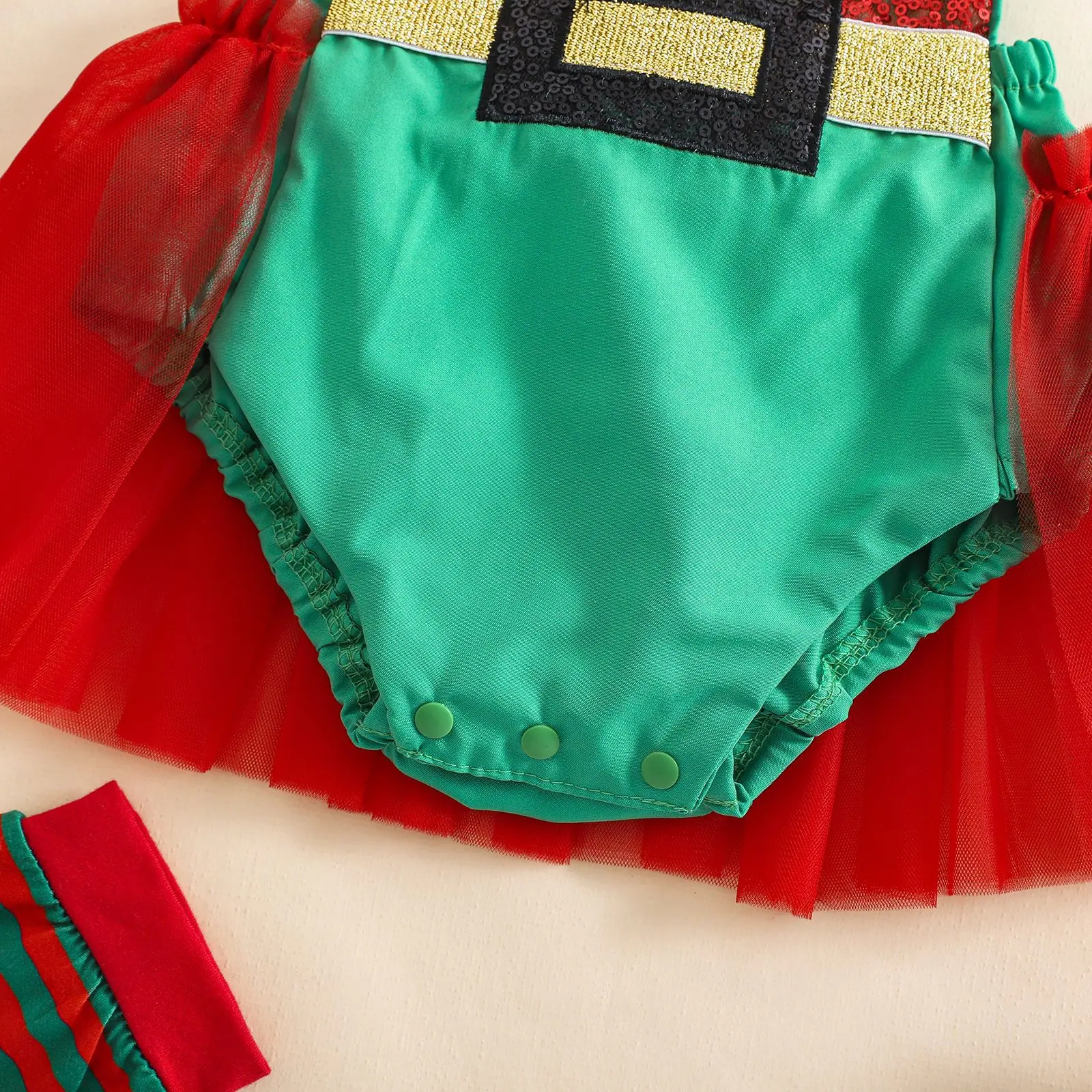 Ropa Infantil 2025 Navidad Nuevo Verde Navidad Mameluco Infantil Traje para Gatear Atmósfera Fiesta Disfraz de Cosplay
