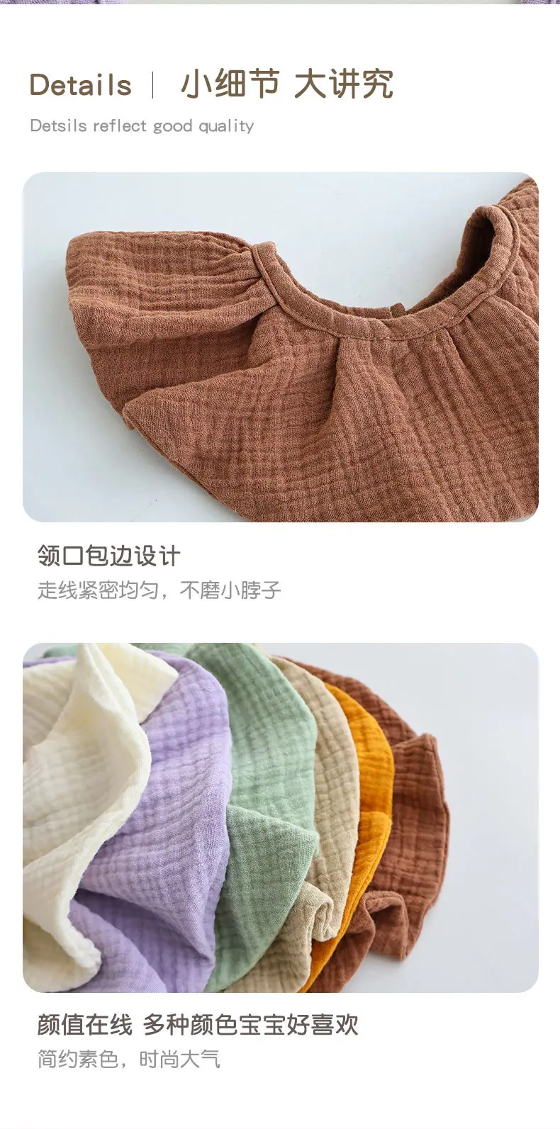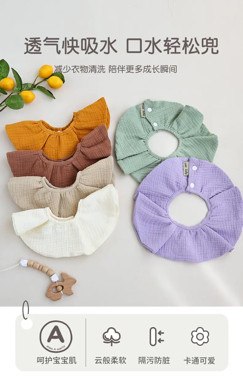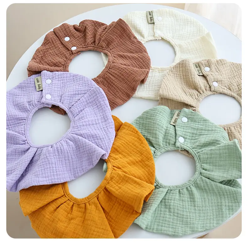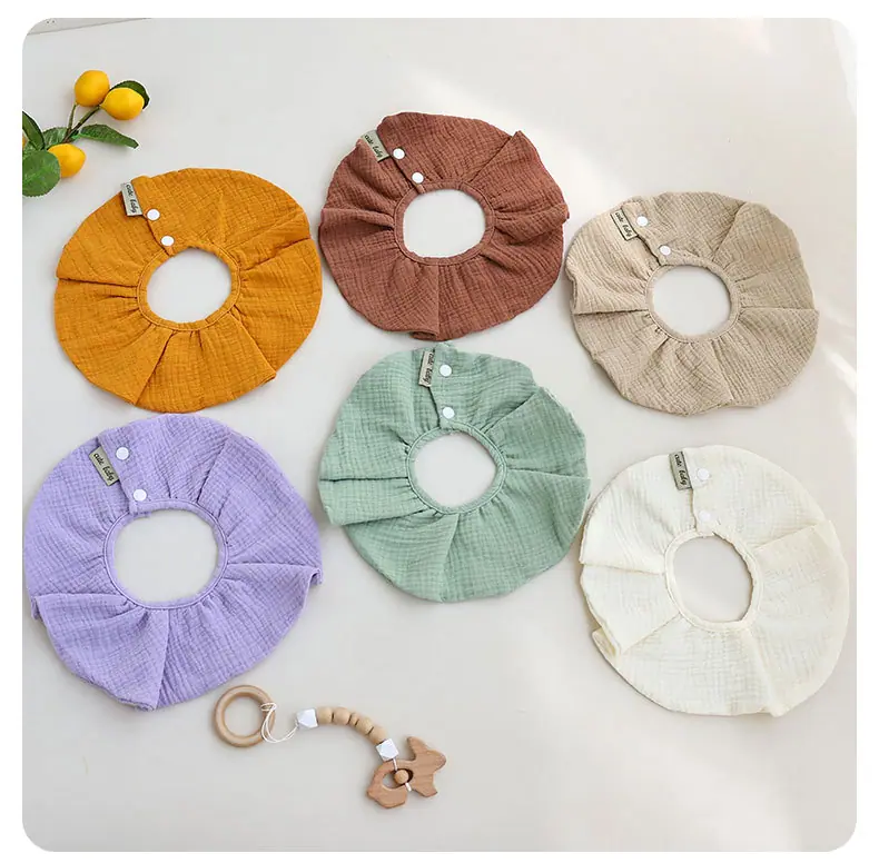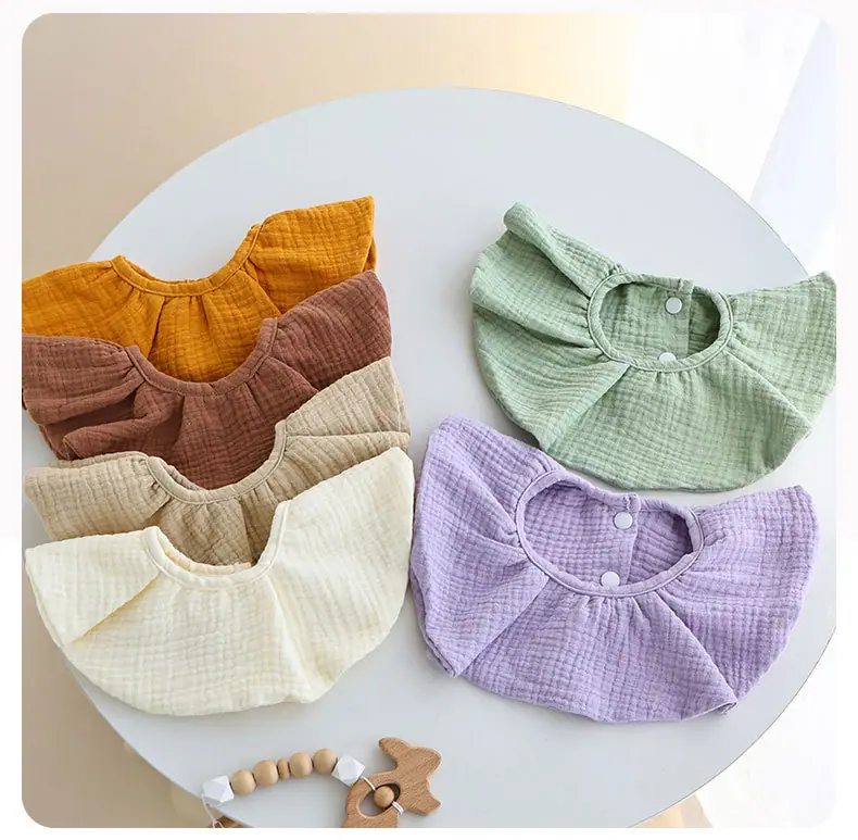 Babero de bebé personalizado transfronterizo de algodón puro, doble cara disponible, color liso, babero para comer para recién nacido, toalla absorbente para la saliva del bebé