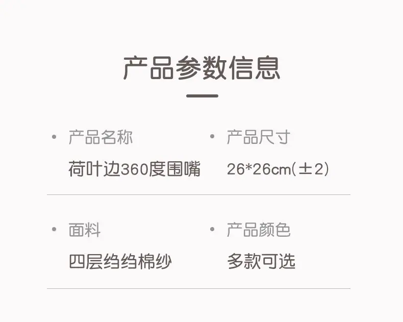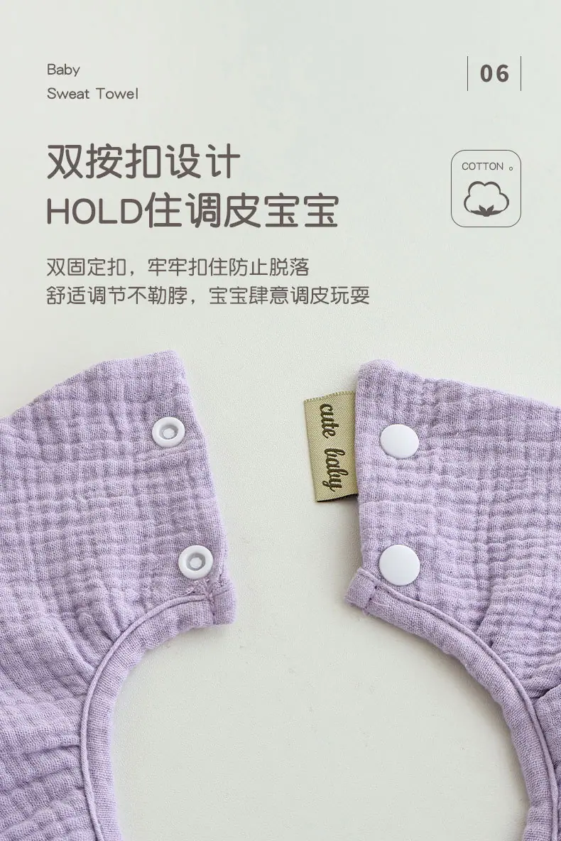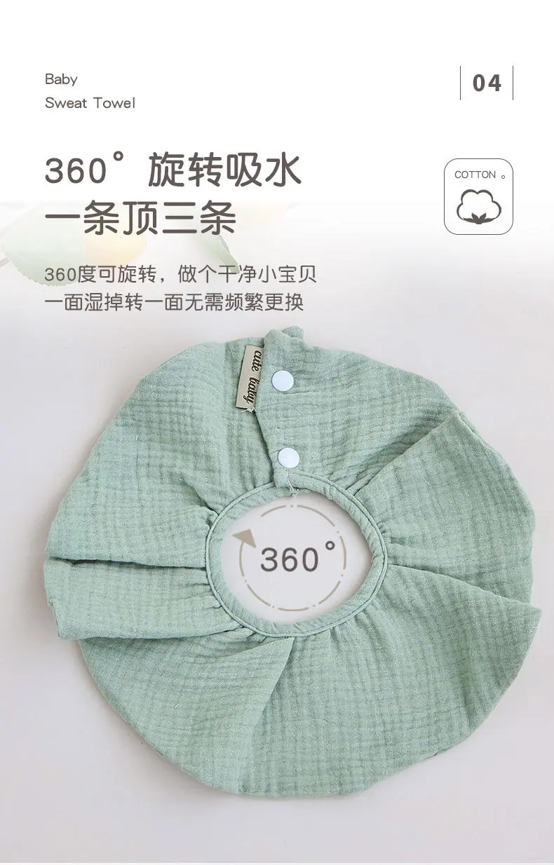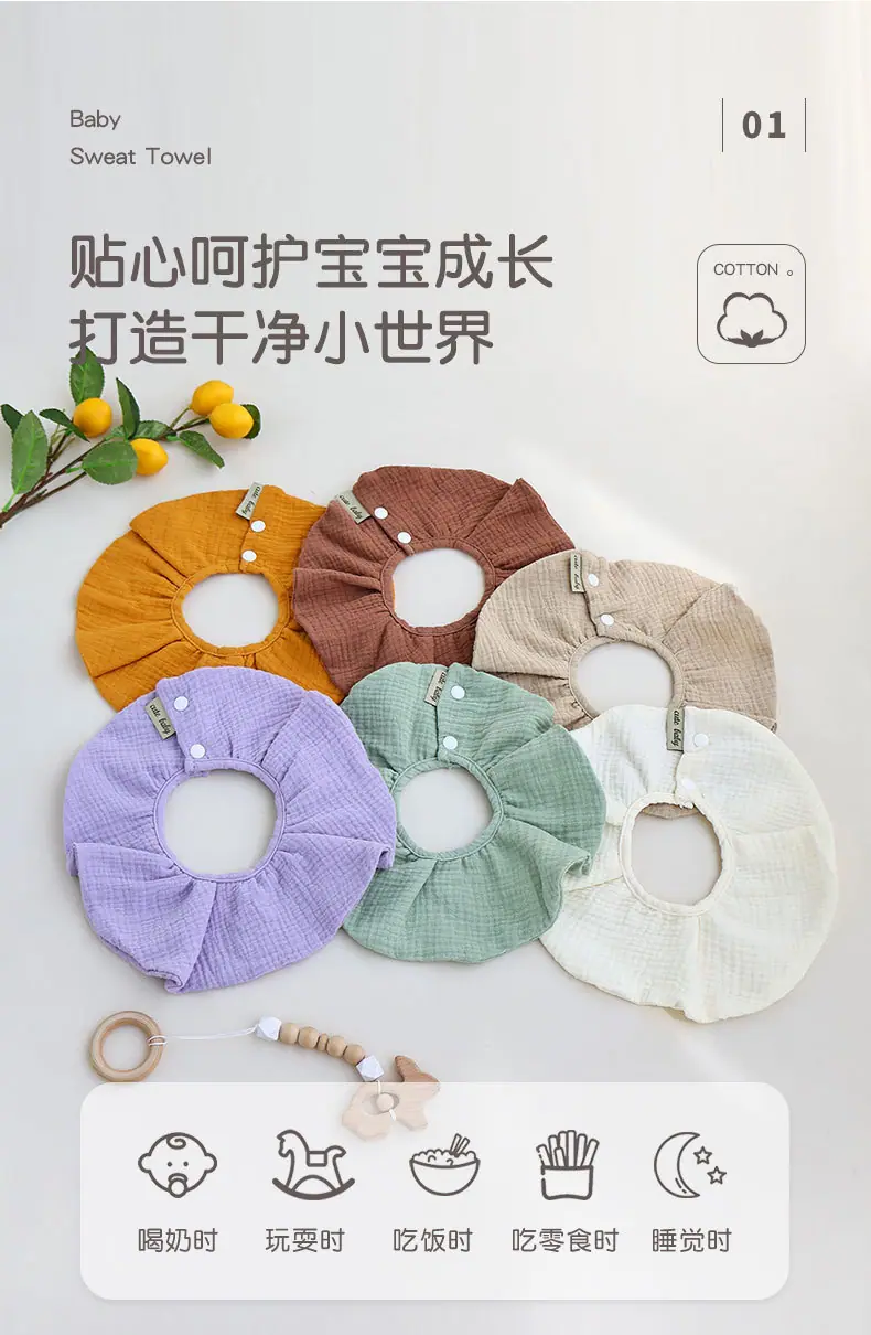 Babero de bebé personalizado transfronterizo de algodón puro, doble cara disponible, color liso, babero para comer para recién nacido, toalla absorbente para la saliva del bebé