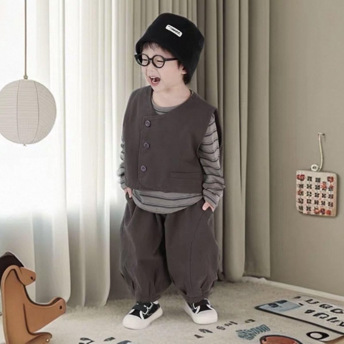 Conjunto de Primavera y Otoño para Niño 2025 Nuevo Casual Chaleco para Bebé Guapo Conjunto de Tres Piezas Ropa de Otoño a la Moda Estilo Coreano para Niños