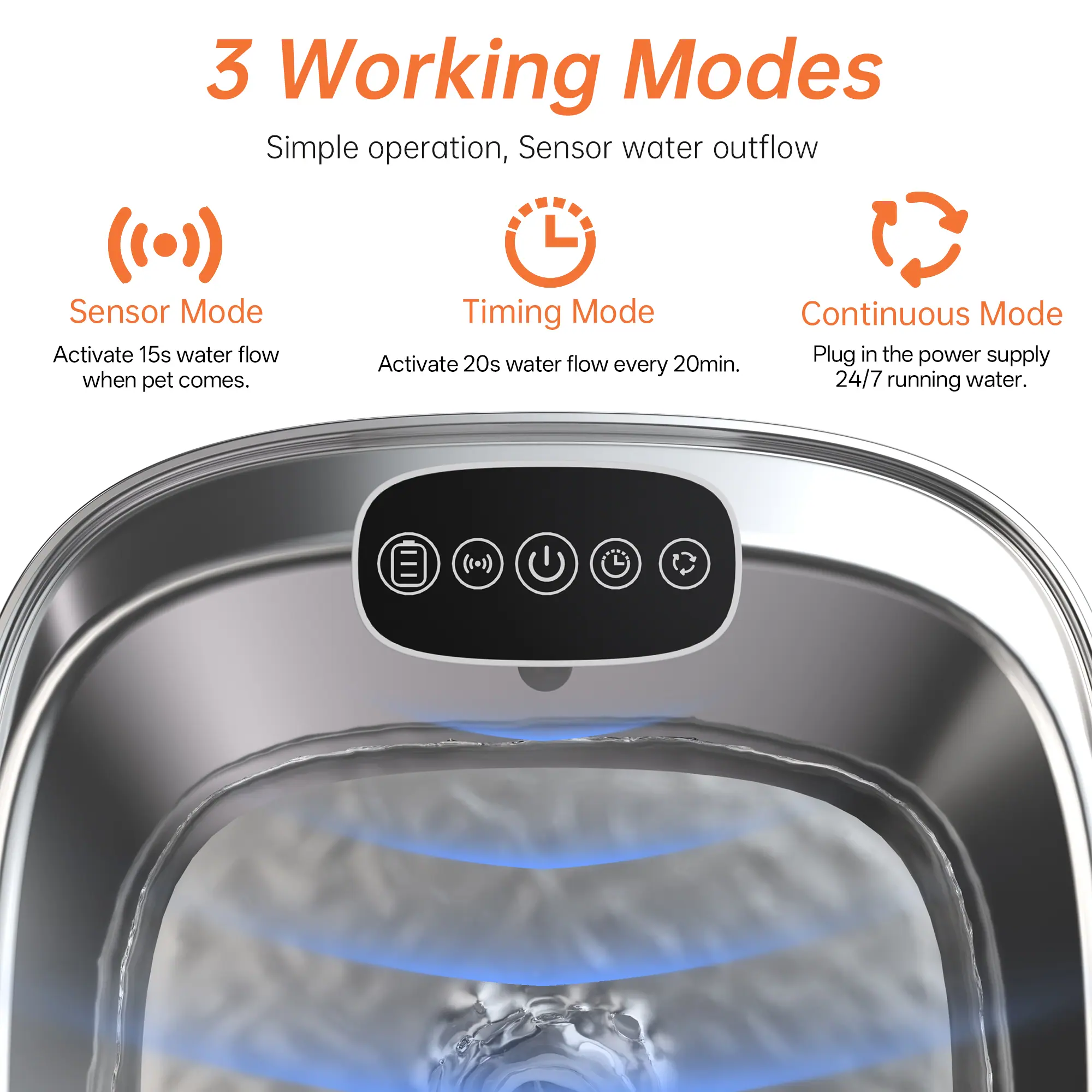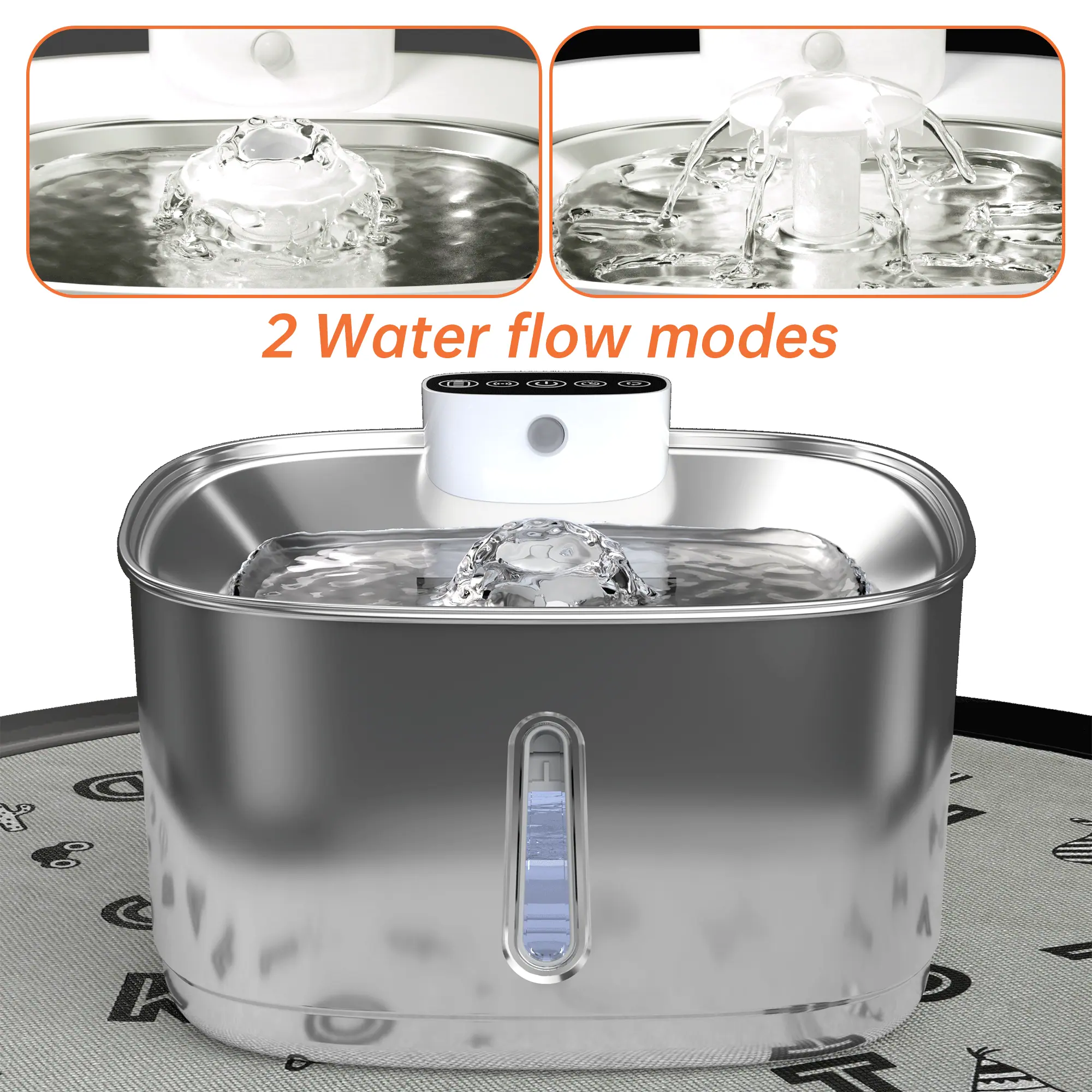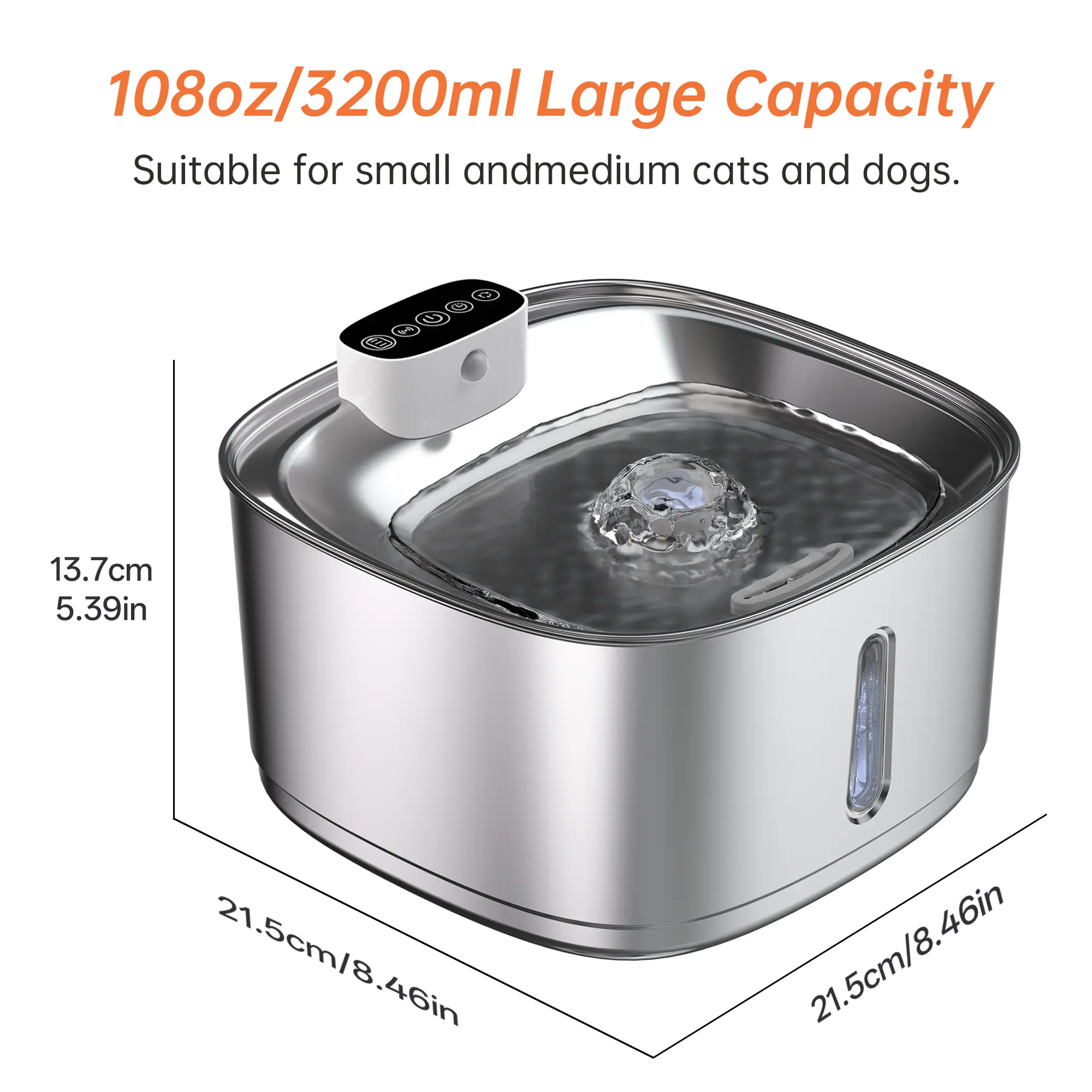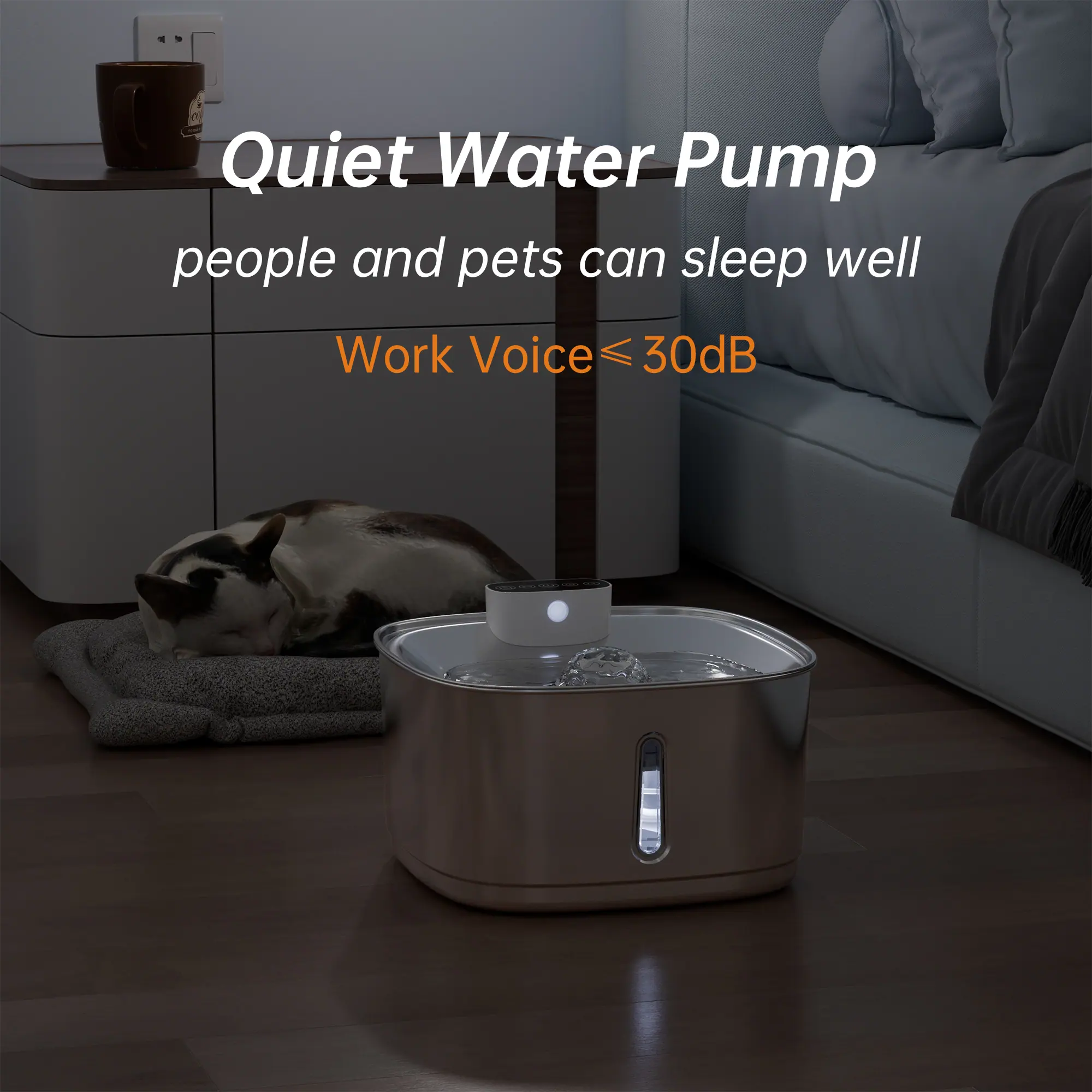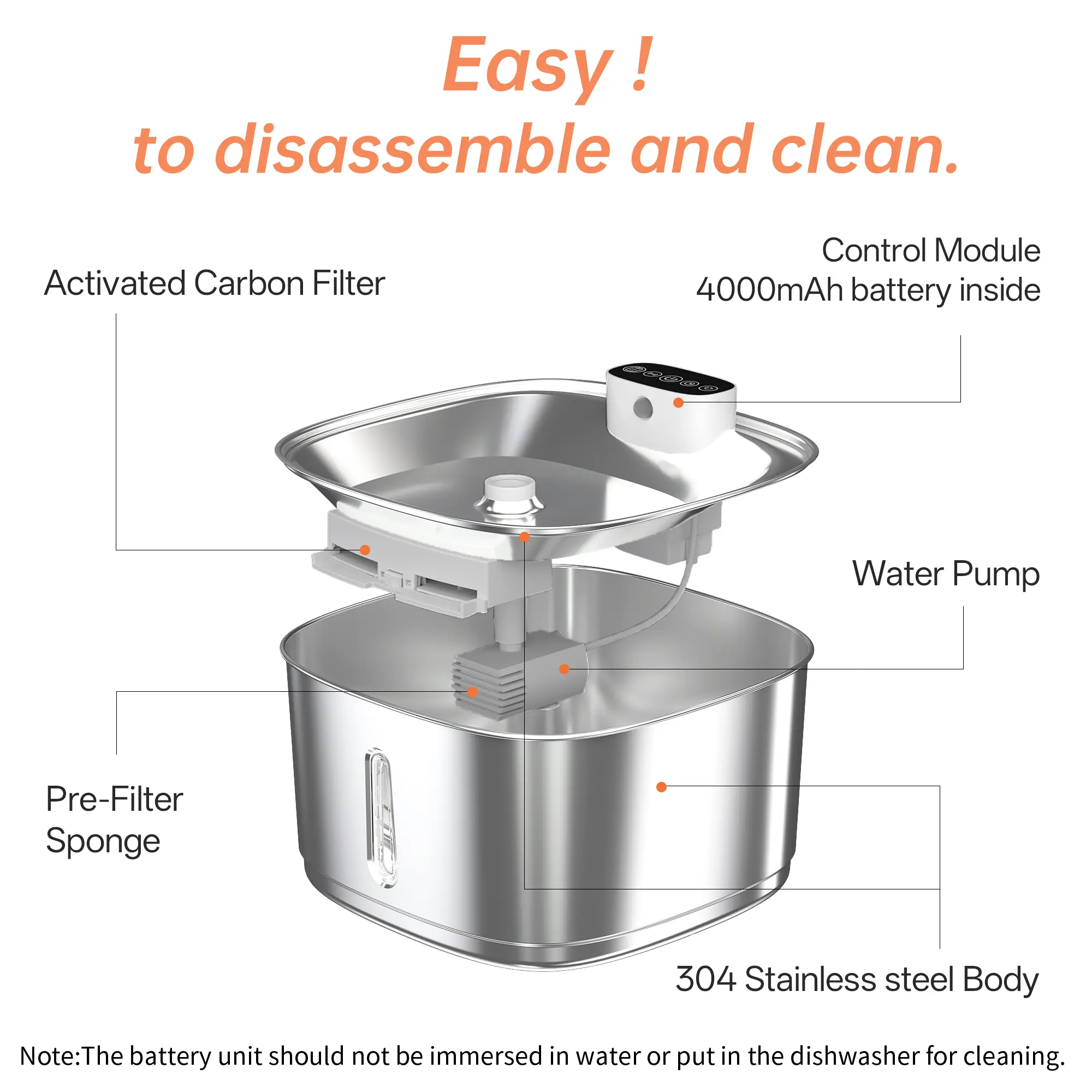 El dispensador de agua para gatos está hecho de acero inoxidable SUS 304, el acero inoxidable es fácil de limpiar, apto para lavavajillas, menos propenso al crecimiento bacteriano, lo que promueve una fuente de agua más limpia.