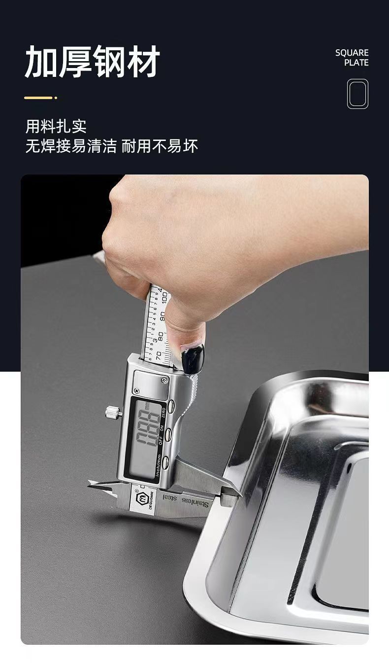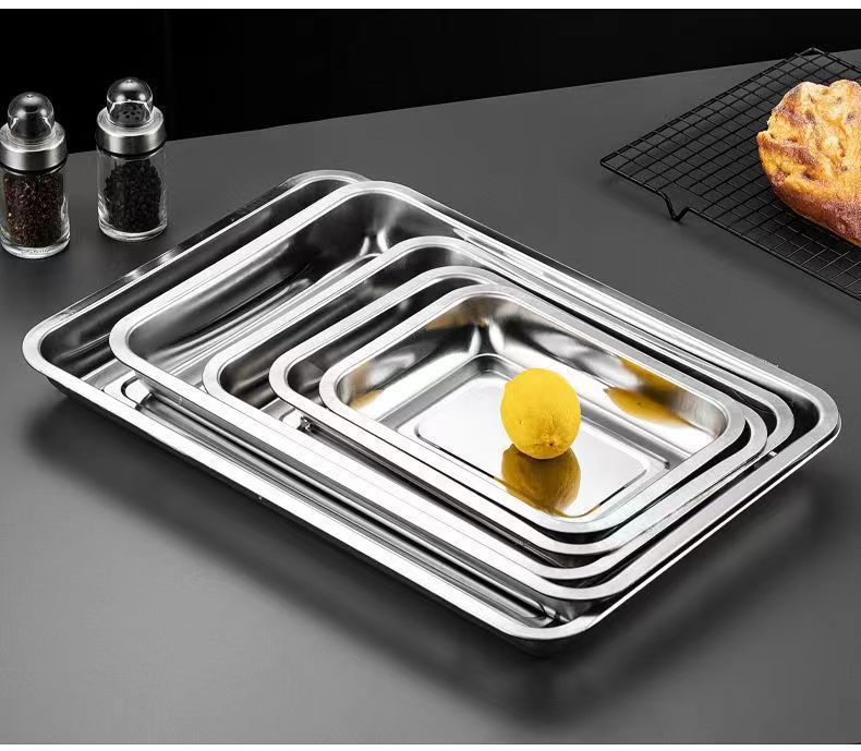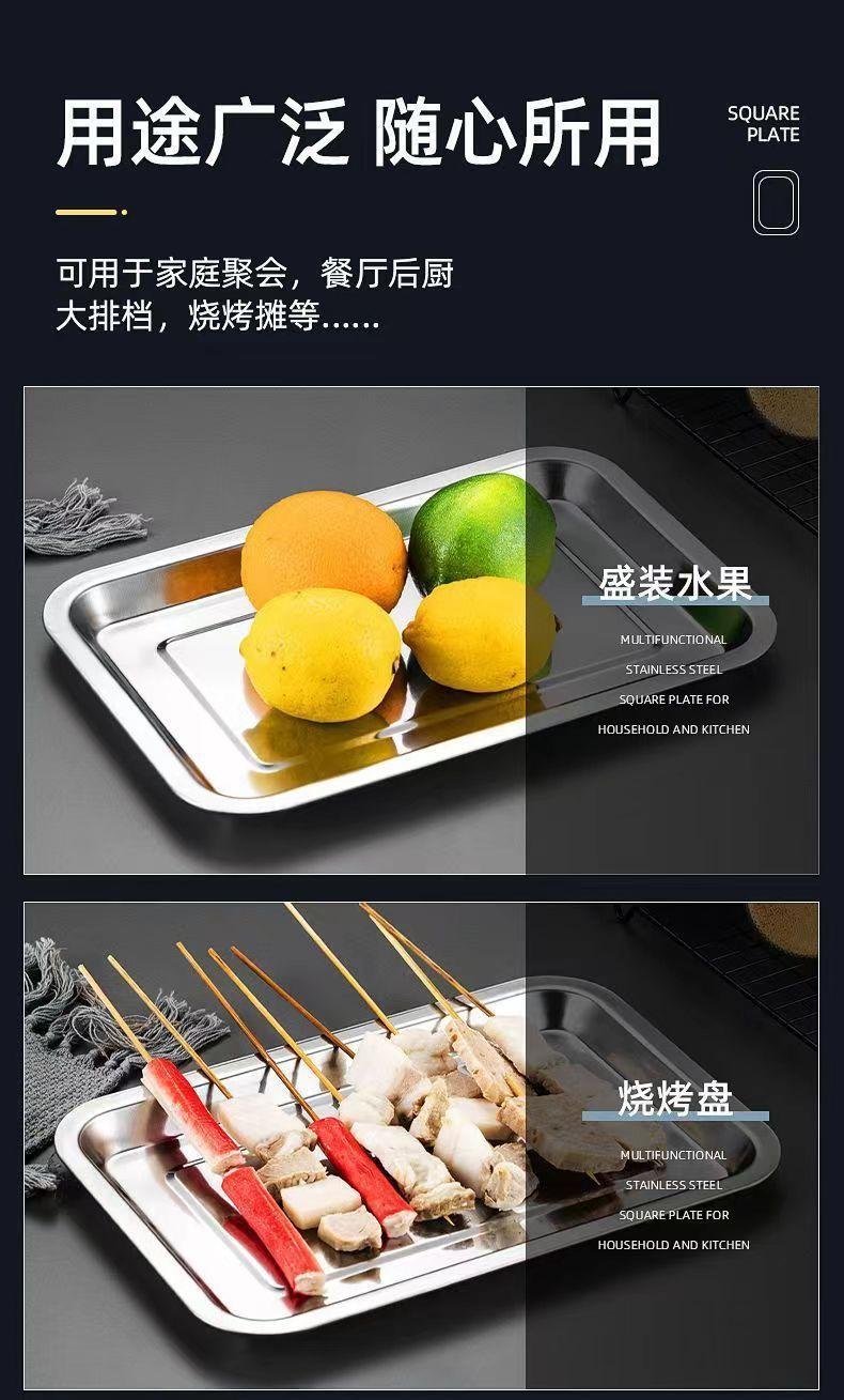 Plato Llano Plato para Barbacoa Plato para Arroz Plato de Hierro Plato Rectangular Plato Collum Plato para Puesto Comercial Plato Cuadrado de Acero Inoxidable Bandeja Plato