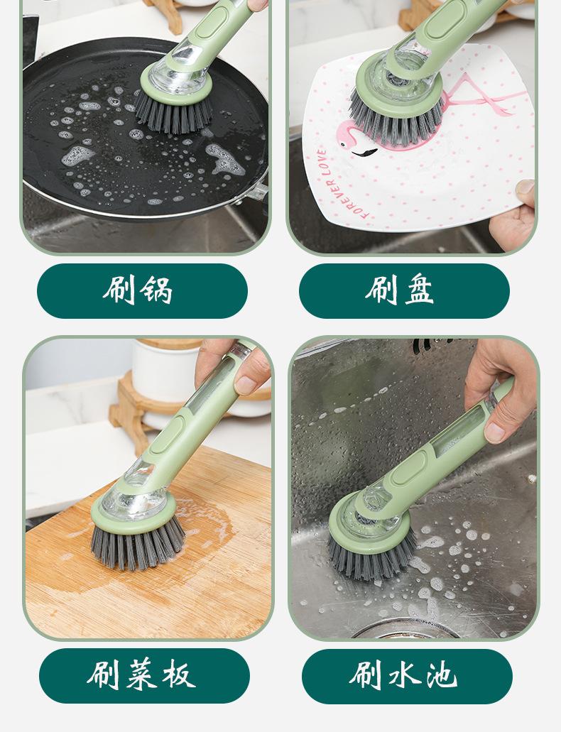 Cepillo para Ollas de Mango Largo para Cocina, Cepillo para Ollas con Adición Automática de Líquido, Cepillo para Lavar Platos, Cepillo para Lavar Ollas Doméstico, Bola de Limpieza de Alambre de Acero