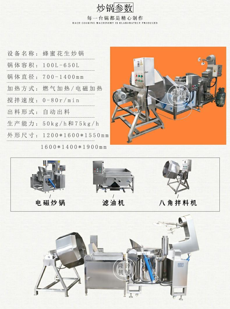 Equipo de Procesamiento de Nueces de Nuez Ámbar Miel Máquina para Almendras con Recubrimiento de Azúcar Máquina Integrada Totalmente Automática para Freír y Recubrir con Azúcar