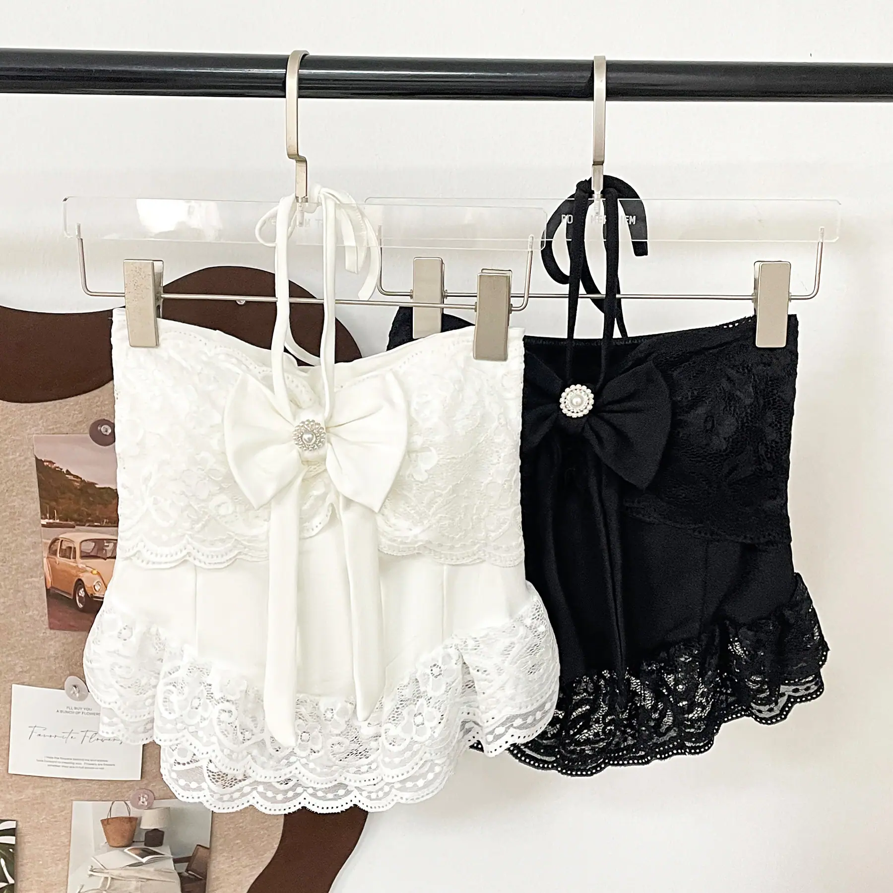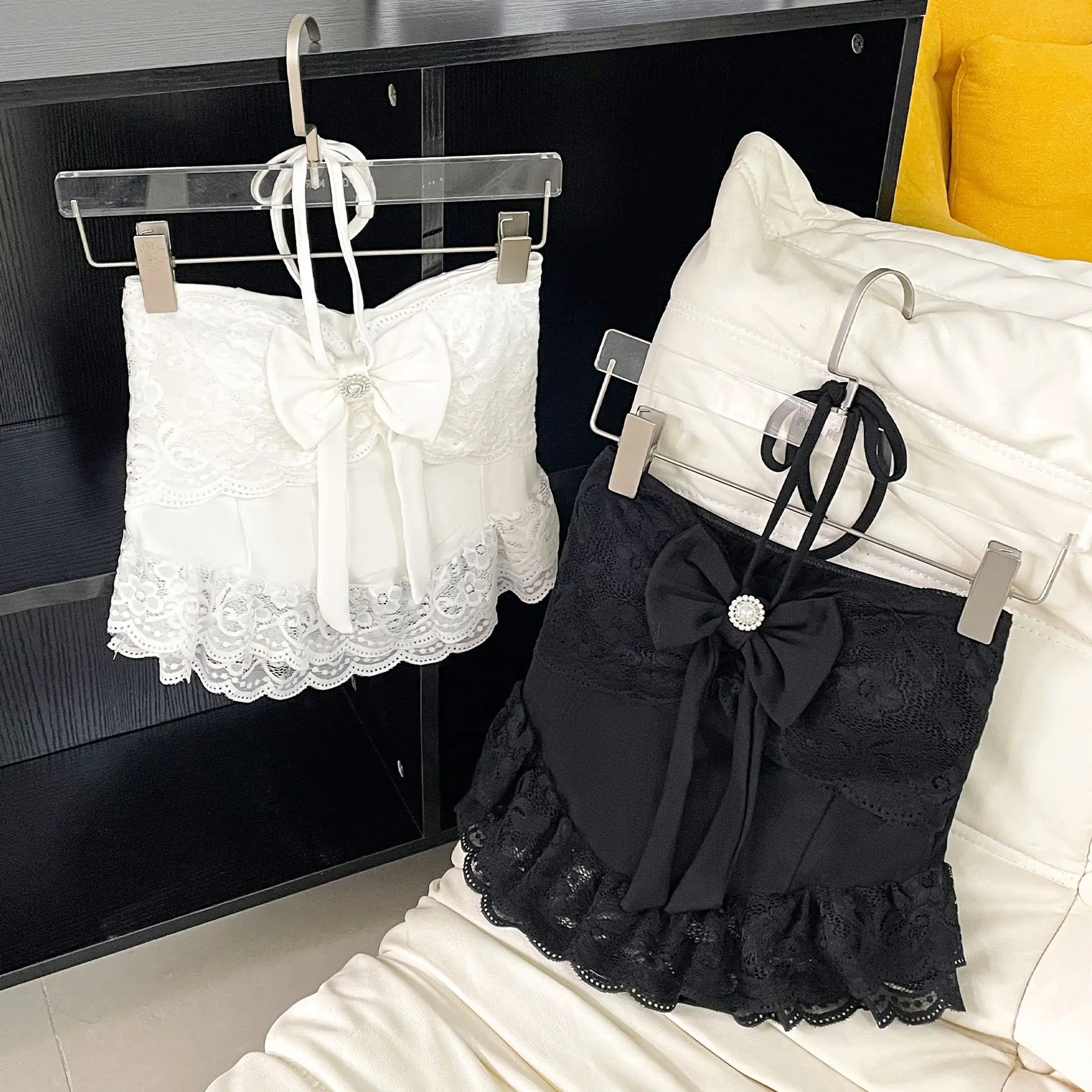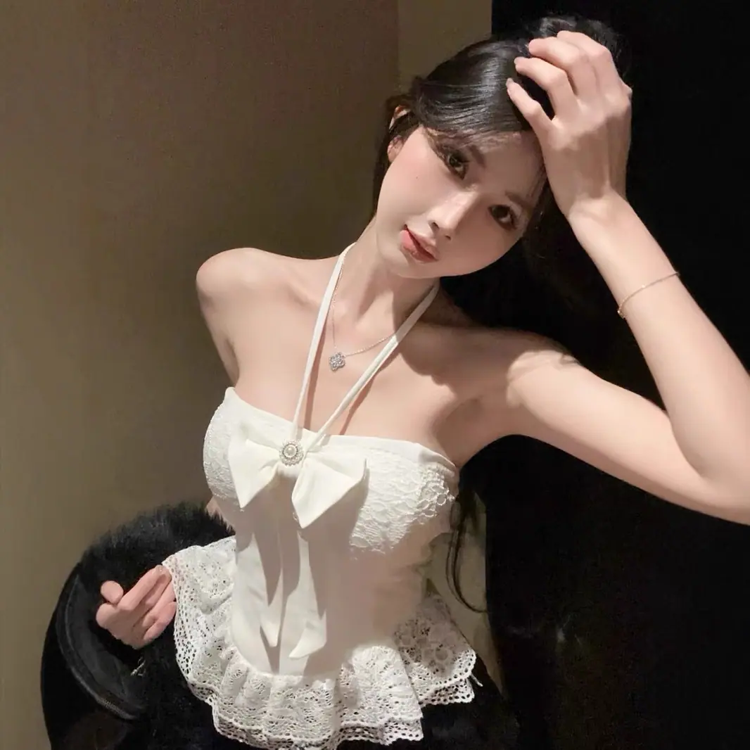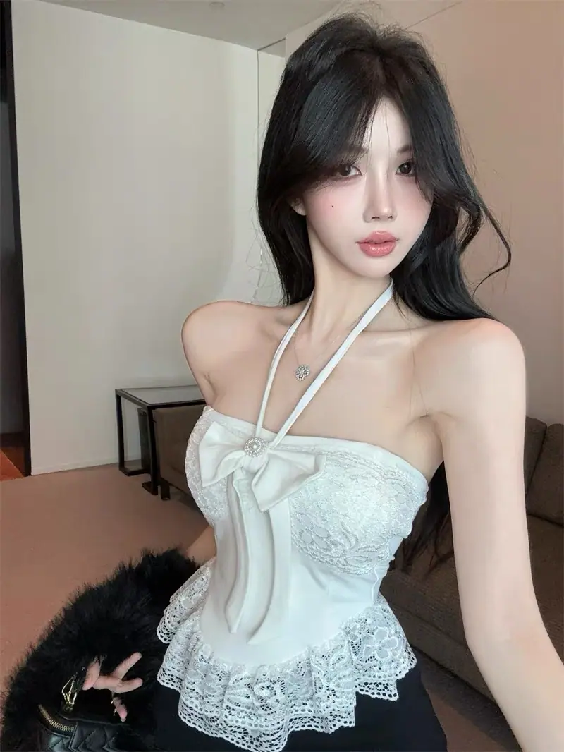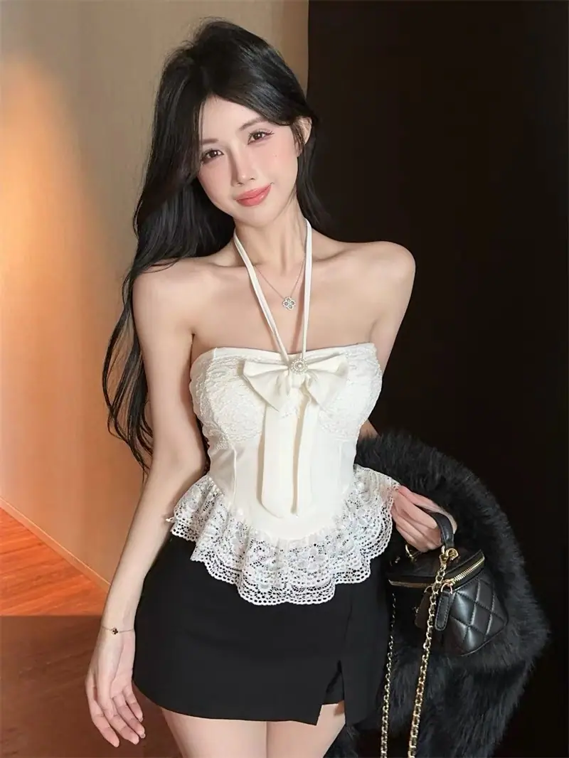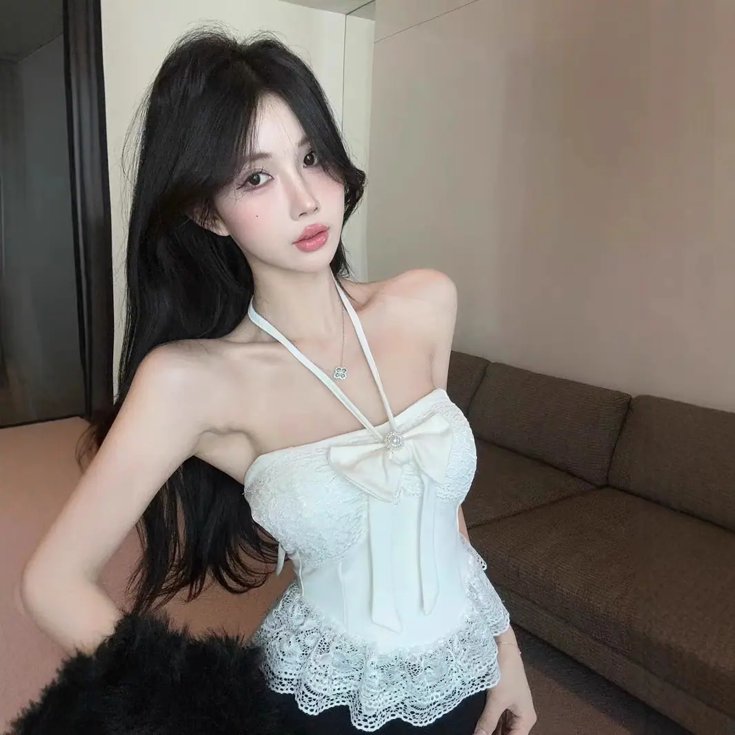 #6612 Estilo Corte Camisola Blanca Strapless con Hombros Descubiertos con Lazo Tirantes con Almohadillas en el Pecho Espalda Sexy Hermosa