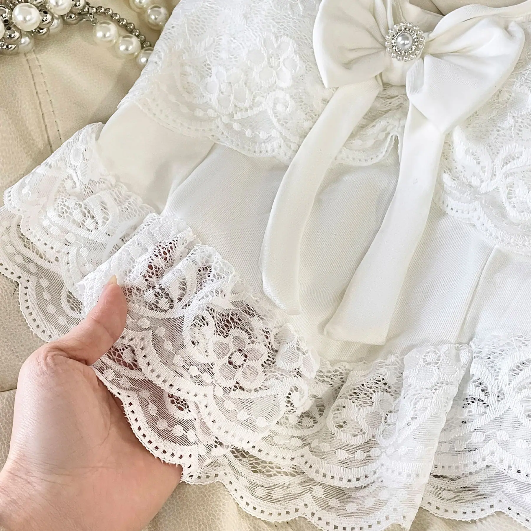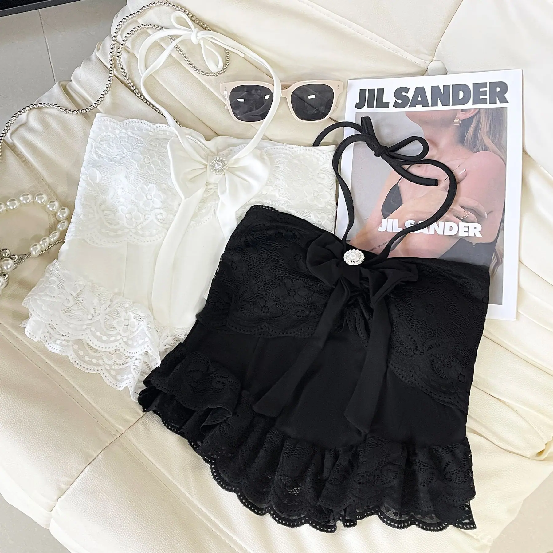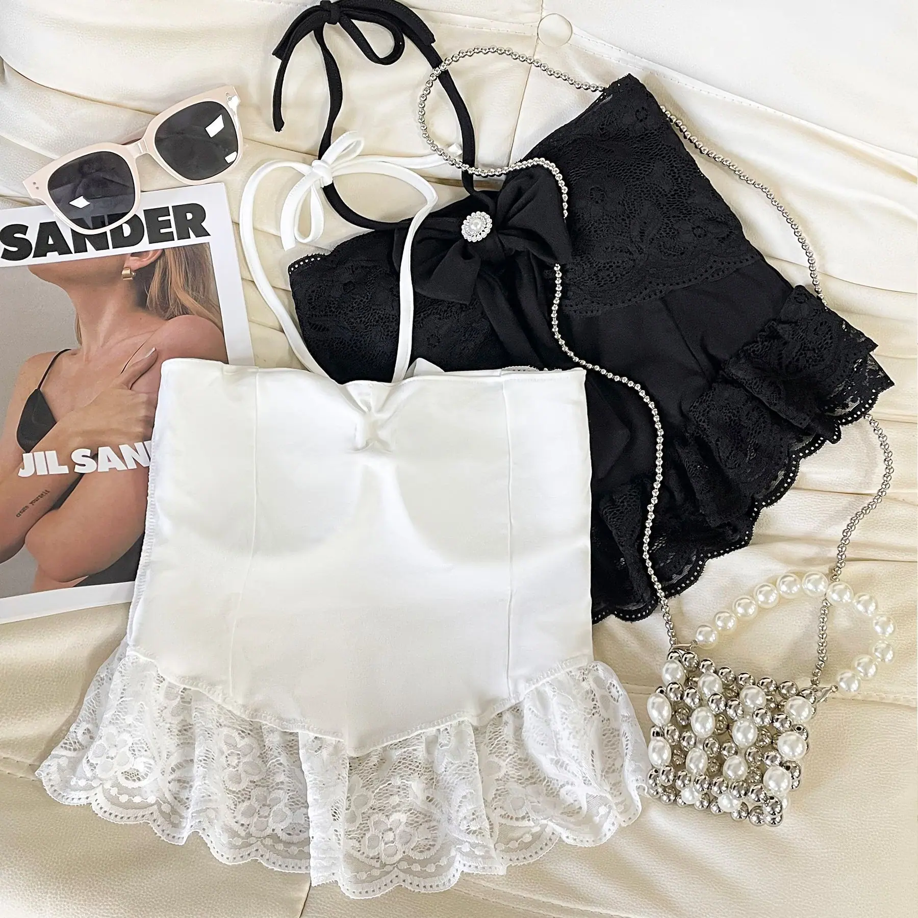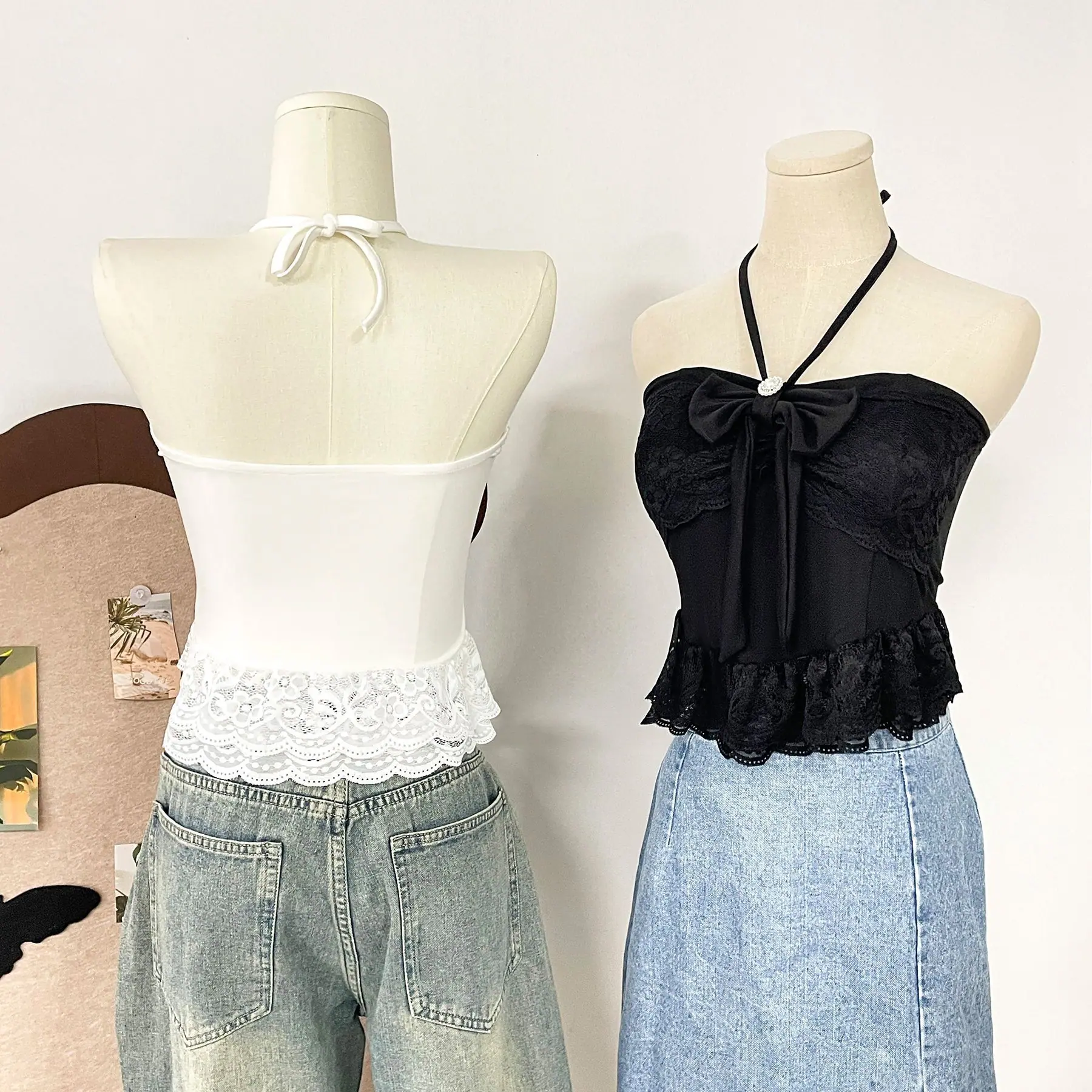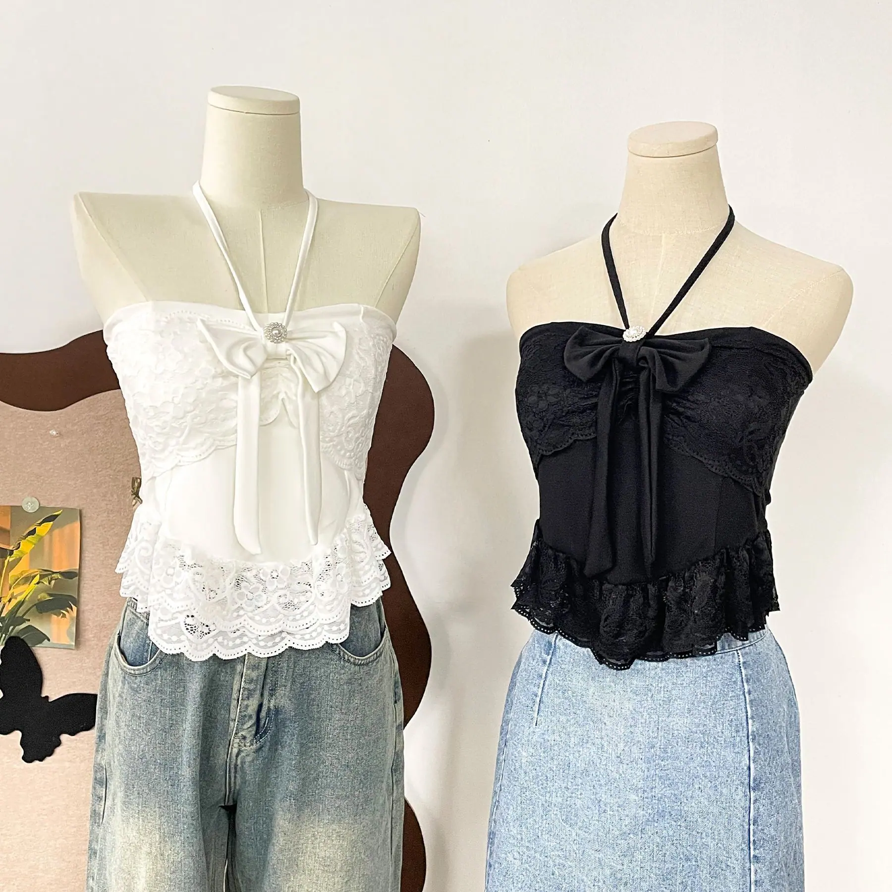 #6612 Estilo Corte Camisola Blanca Strapless con Hombros Descubiertos con Lazo Tirantes con Almohadillas en el Pecho Espalda Sexy Hermosa